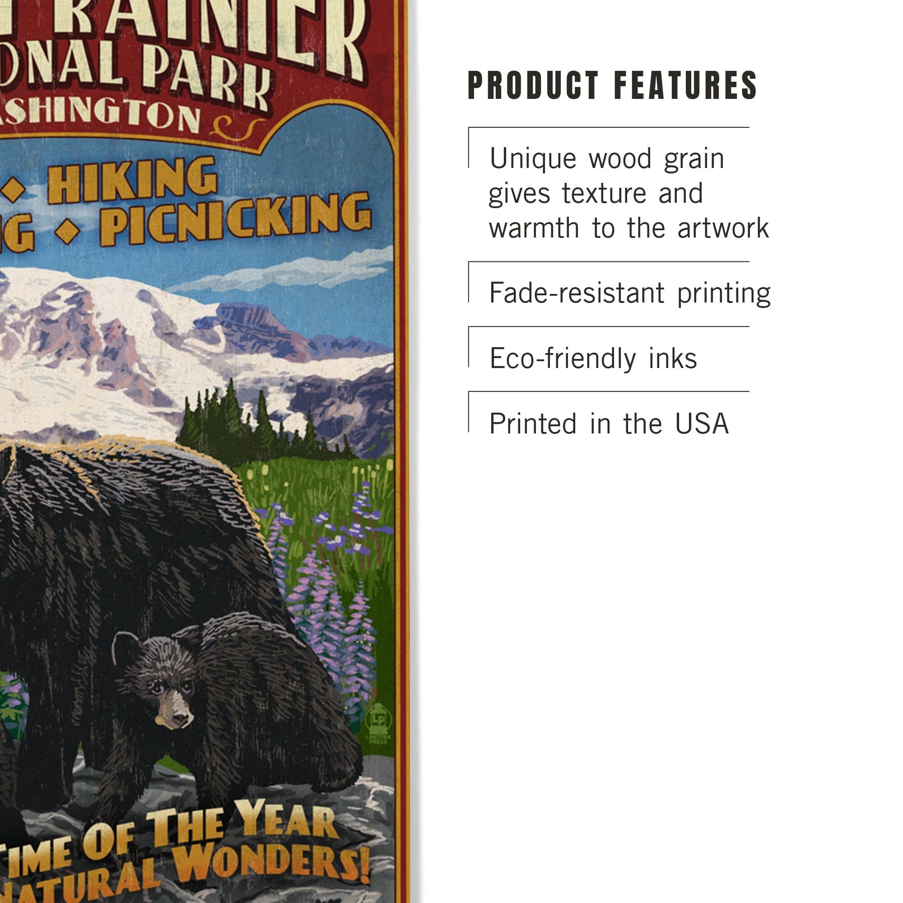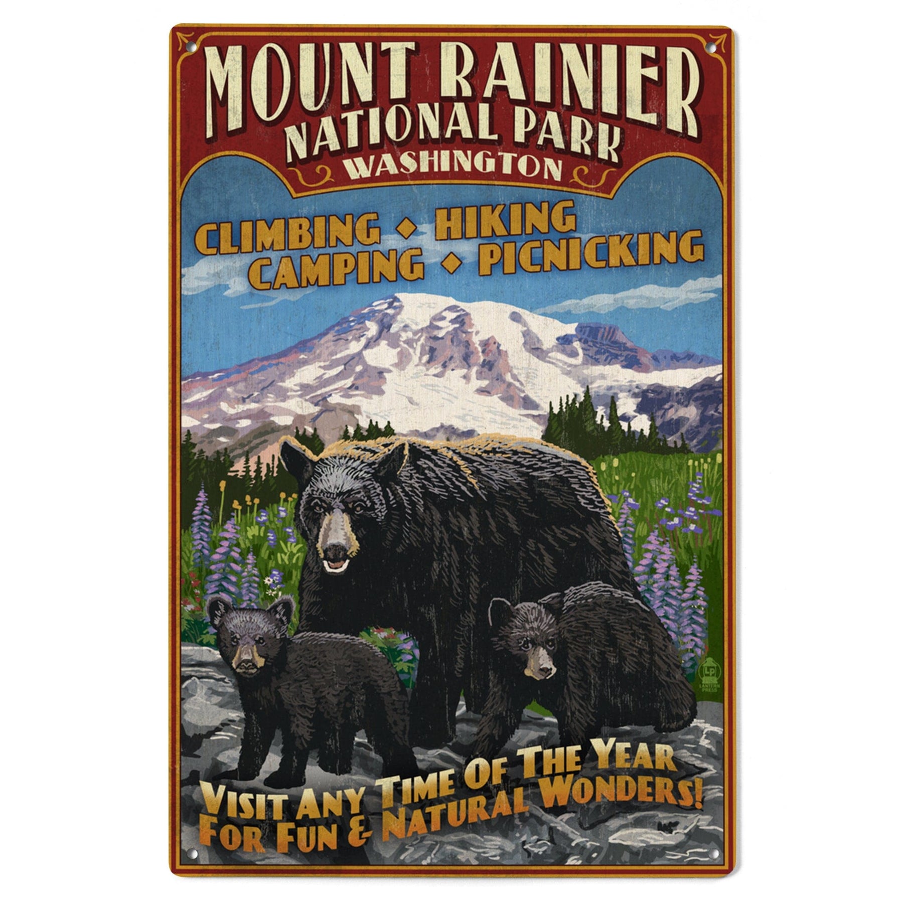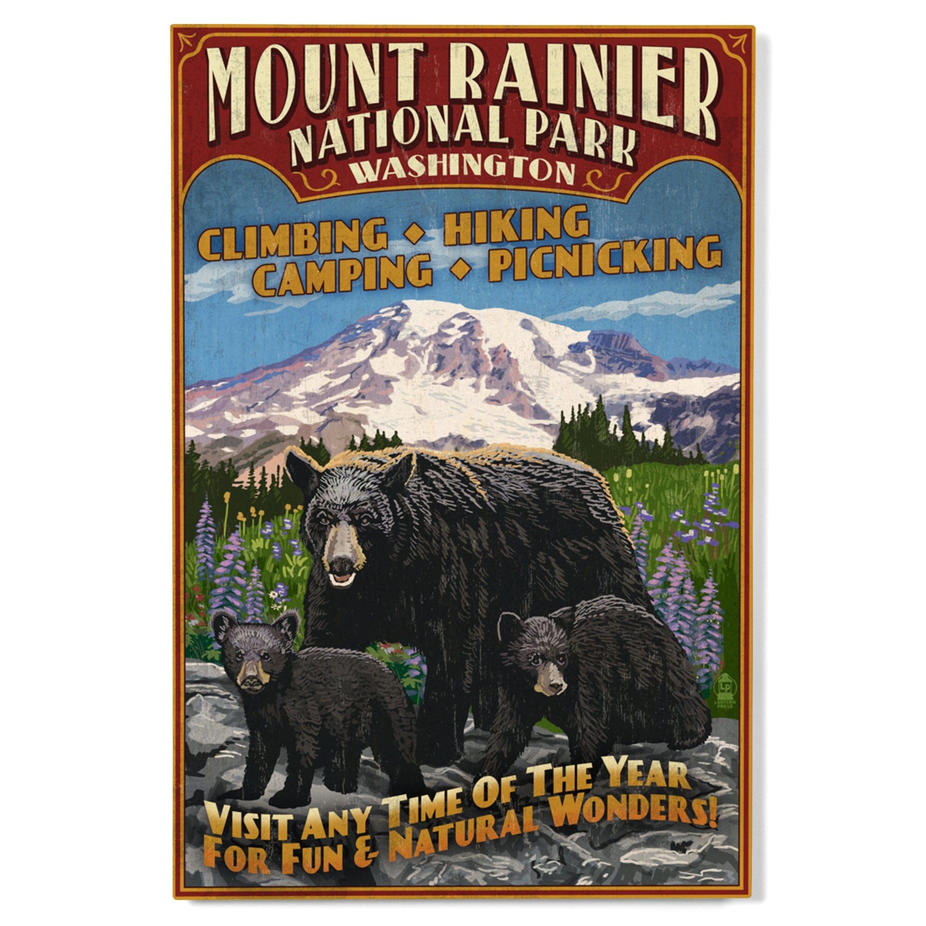 Mount Rainier National Park, Bear Family Vintage Sign, Wood Signs and Postcards Wood Lantern Press