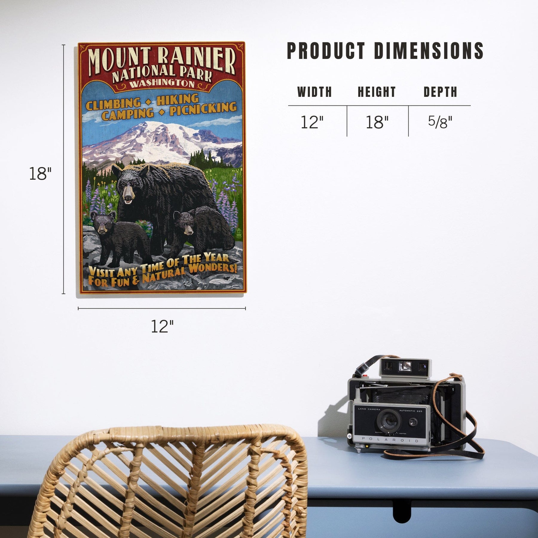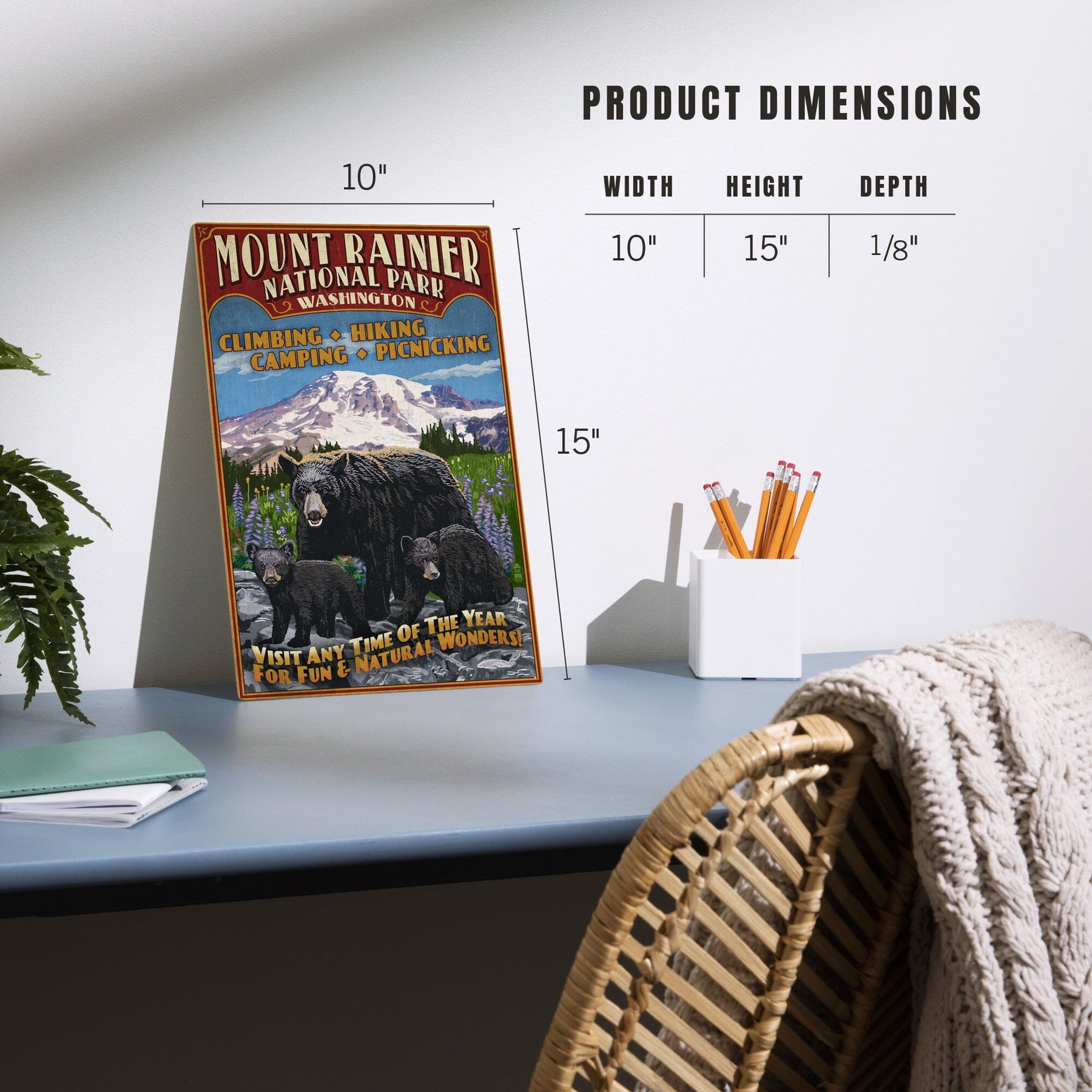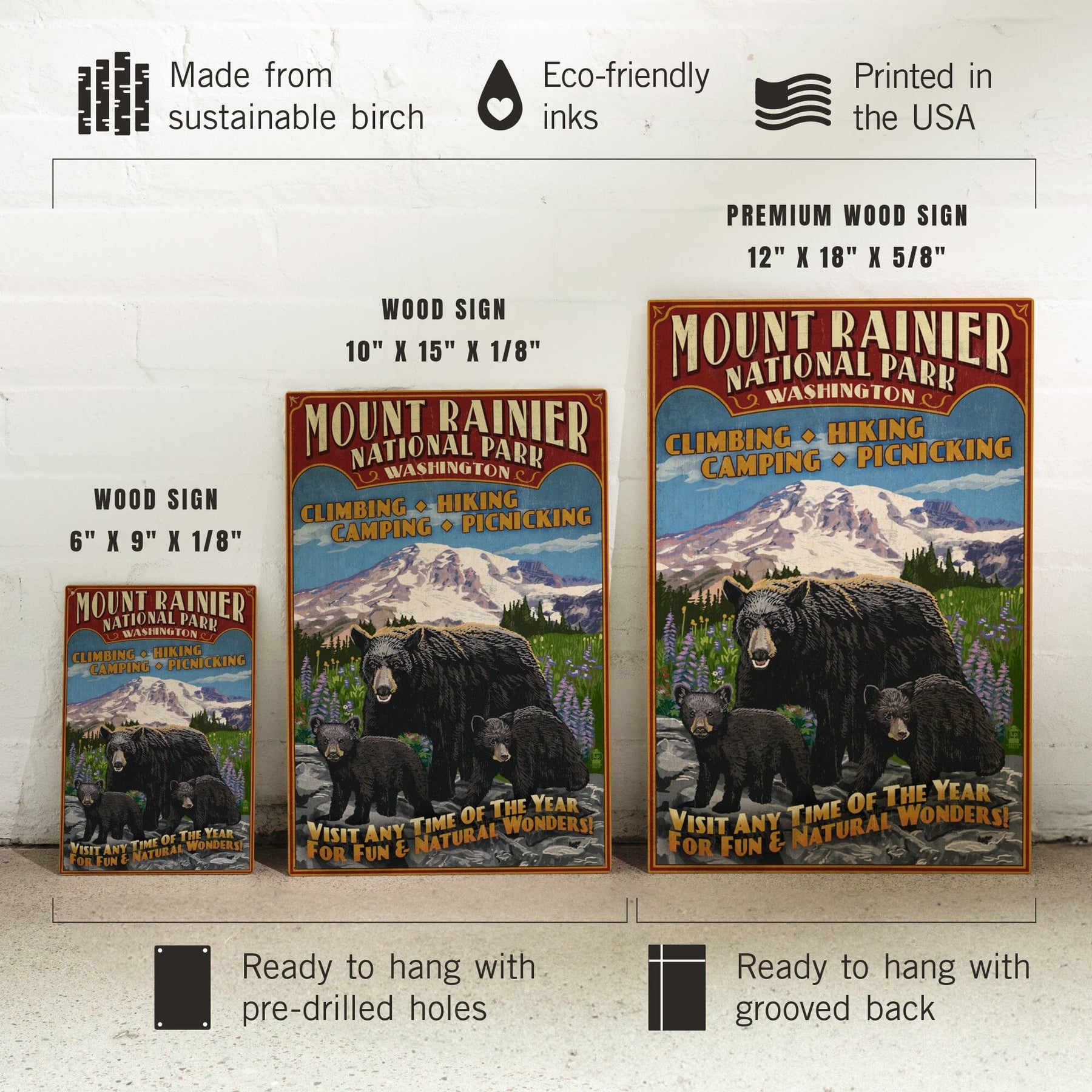 Mount Rainier National Park, Bear Family Vintage Sign, Wood Signs and Postcards Wood Lantern Press