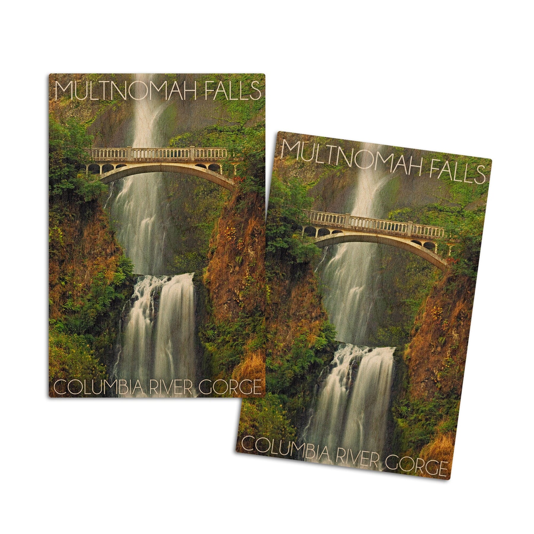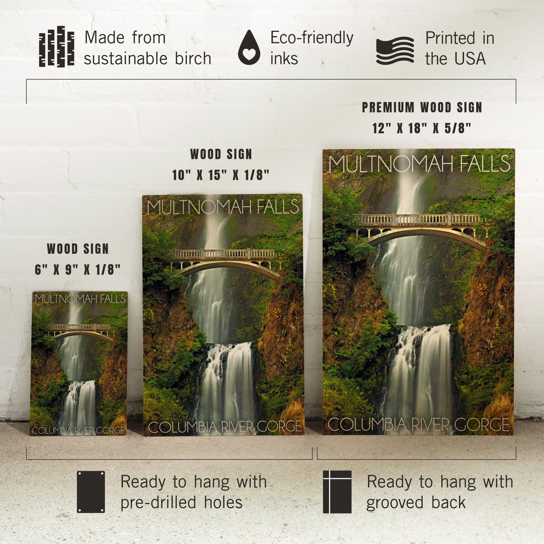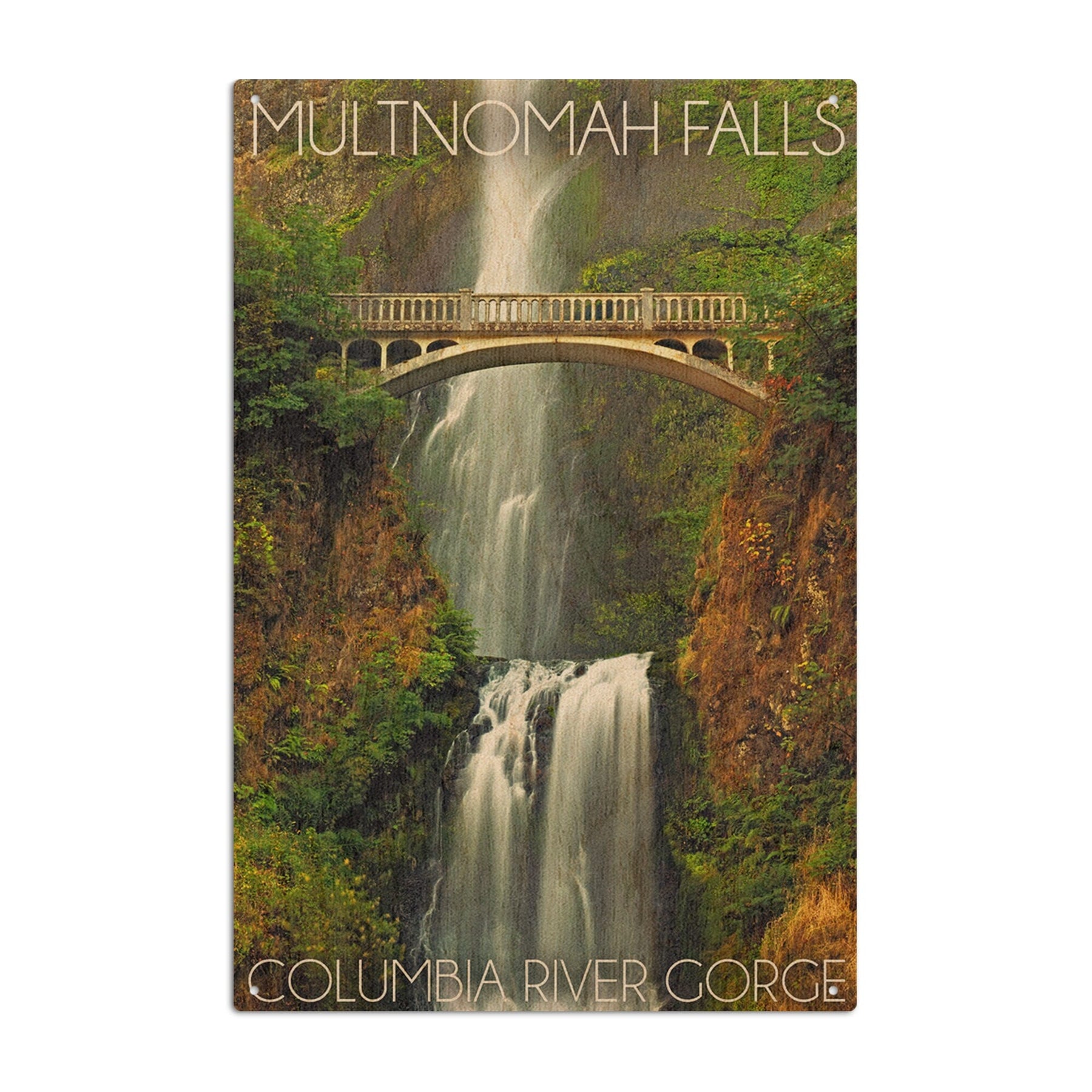 Multnomah Falls, Oregon, Fall Colors, Lantern Press Photography, Wood Signs and Postcards