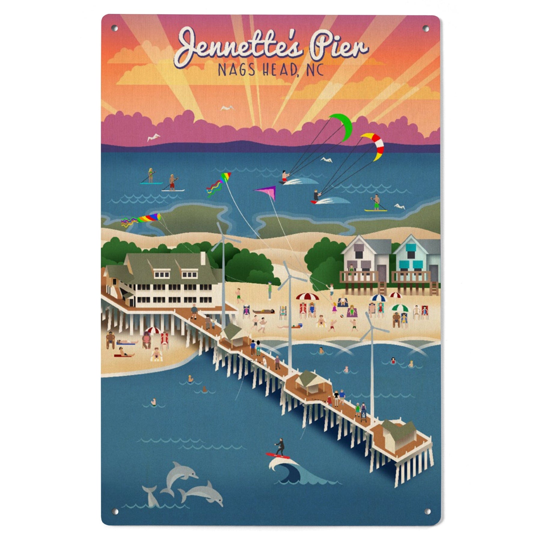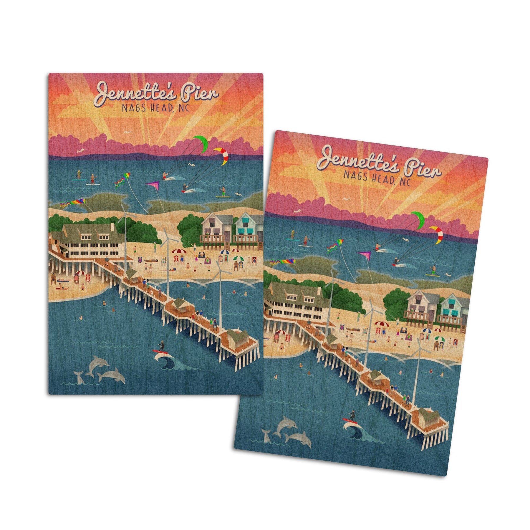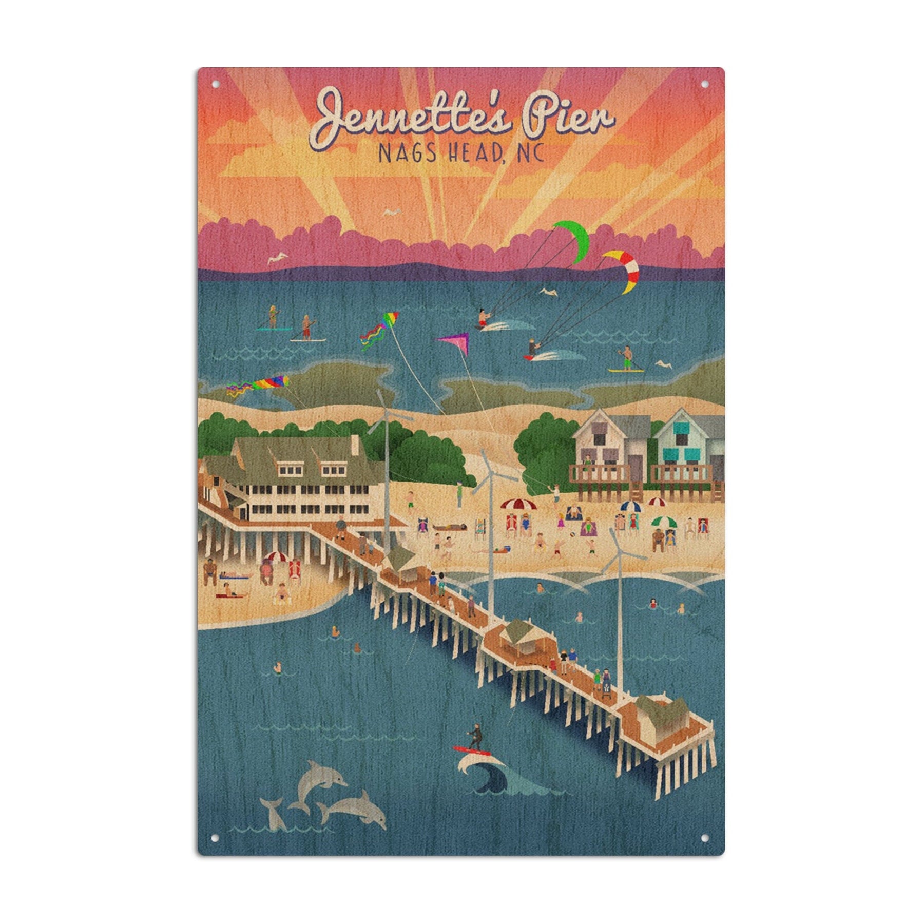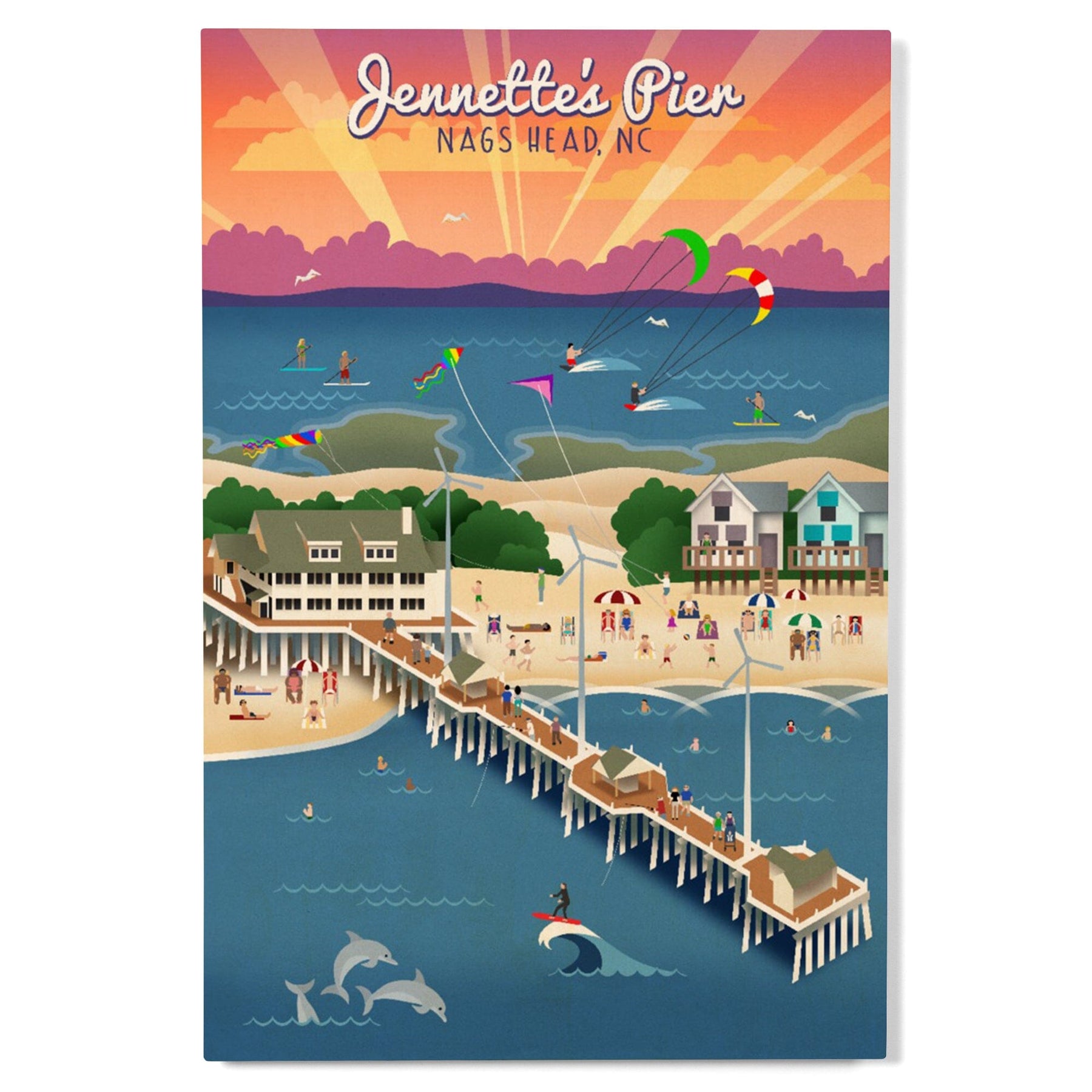 Nags Head, North Carolina, Jennette's Pier, Retro, Lantern Press Artwork, Wood Signs and Postcards Wood Lantern Press