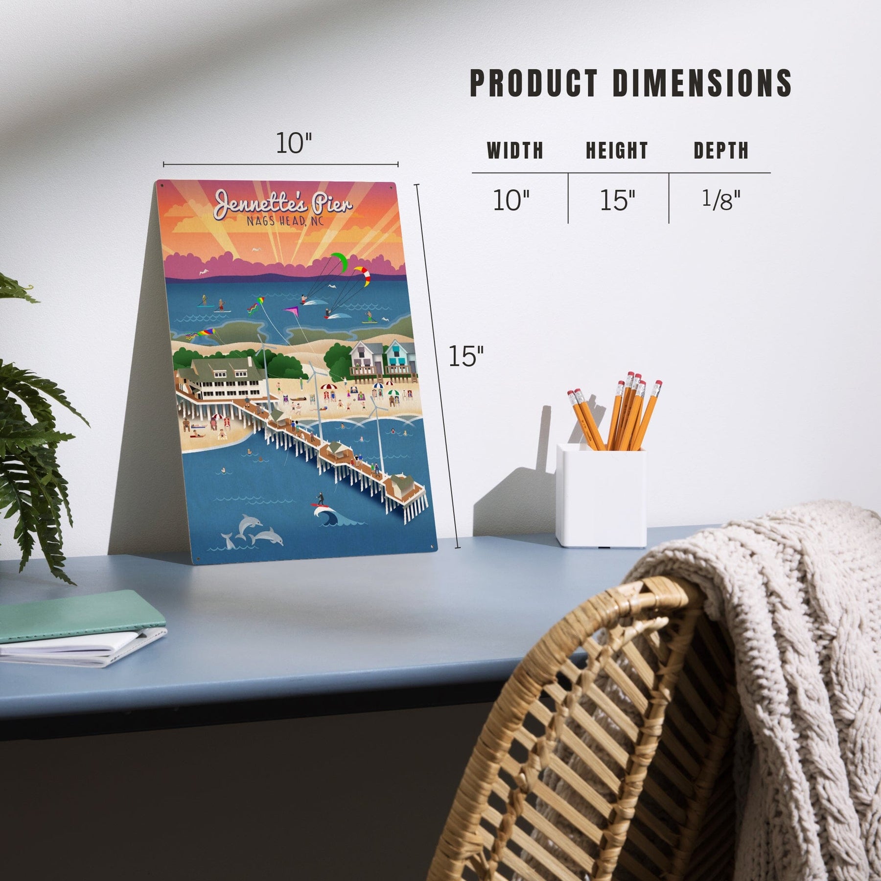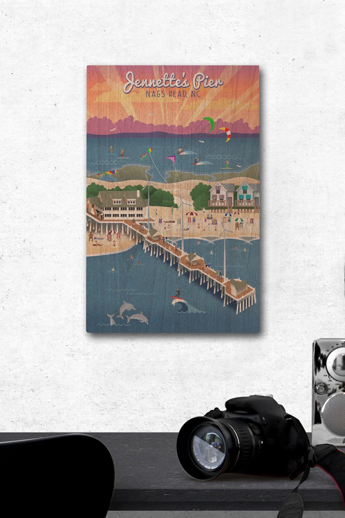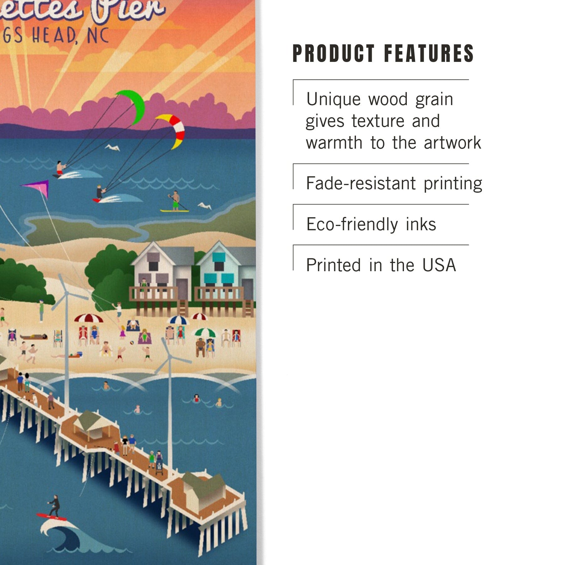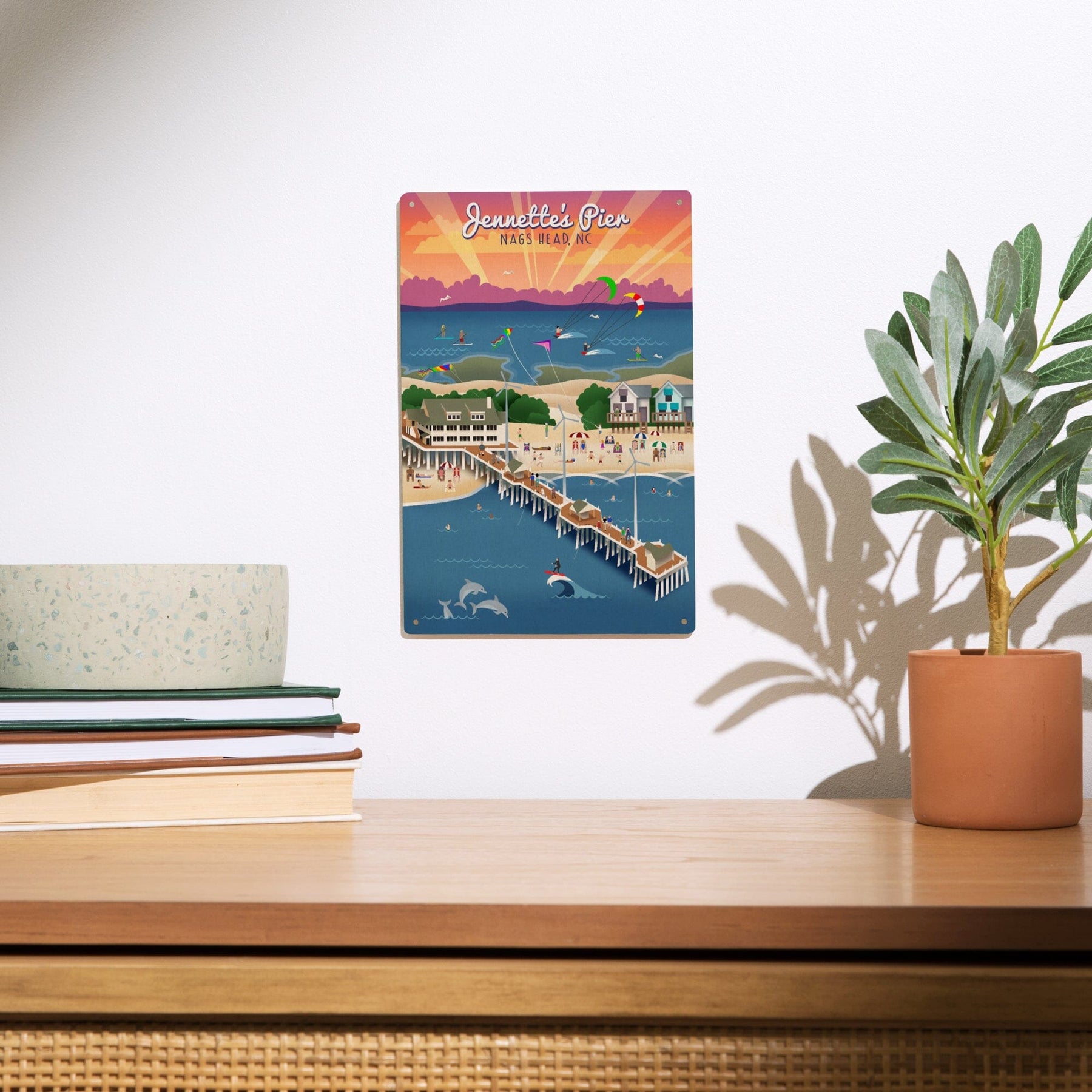 Nags Head, North Carolina, Jennette's Pier, Retro, Lantern Press Artwork, Wood Signs and Postcards Wood Lantern Press