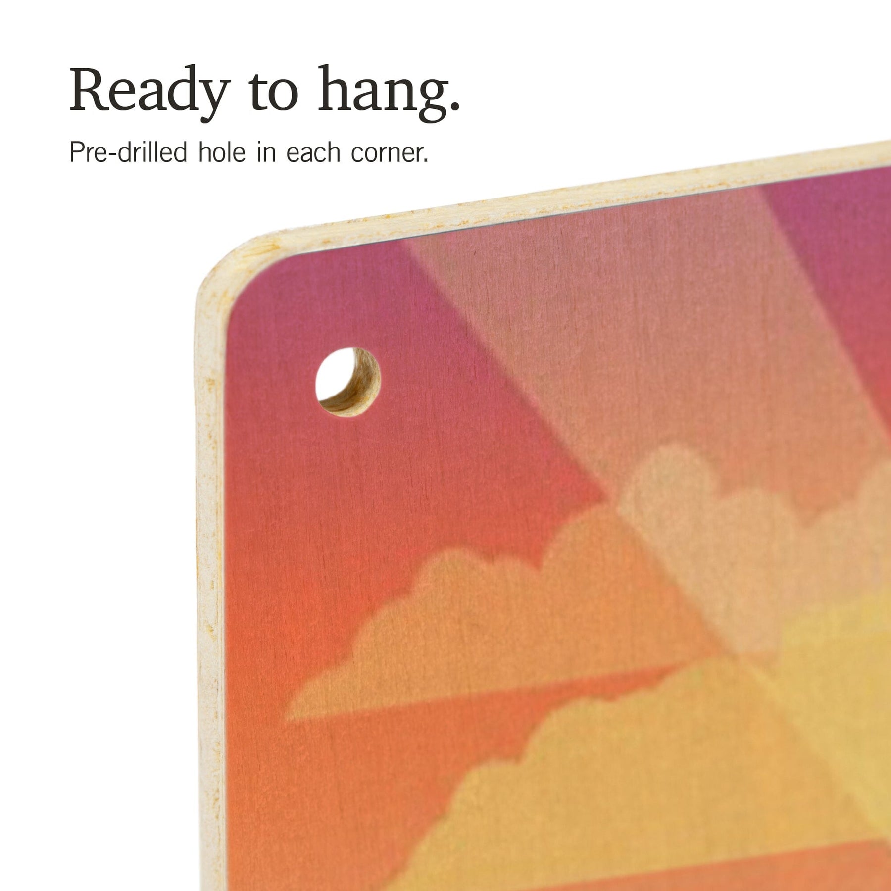 • Hole in each corner, ready to hang