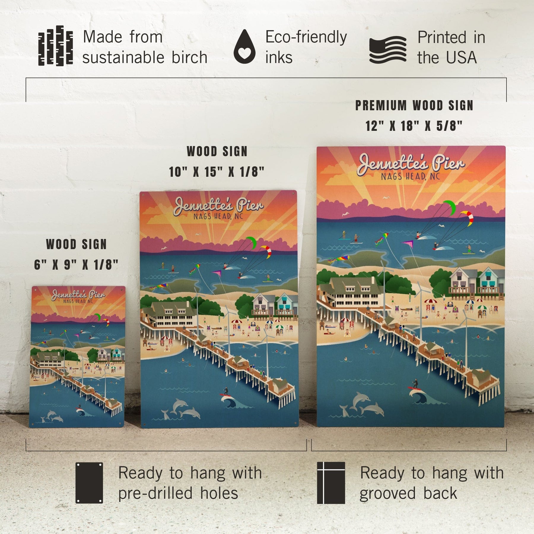 Nags Head, North Carolina, Jennette's Pier, Retro, Lantern Press Artwork, Wood Signs and Postcards