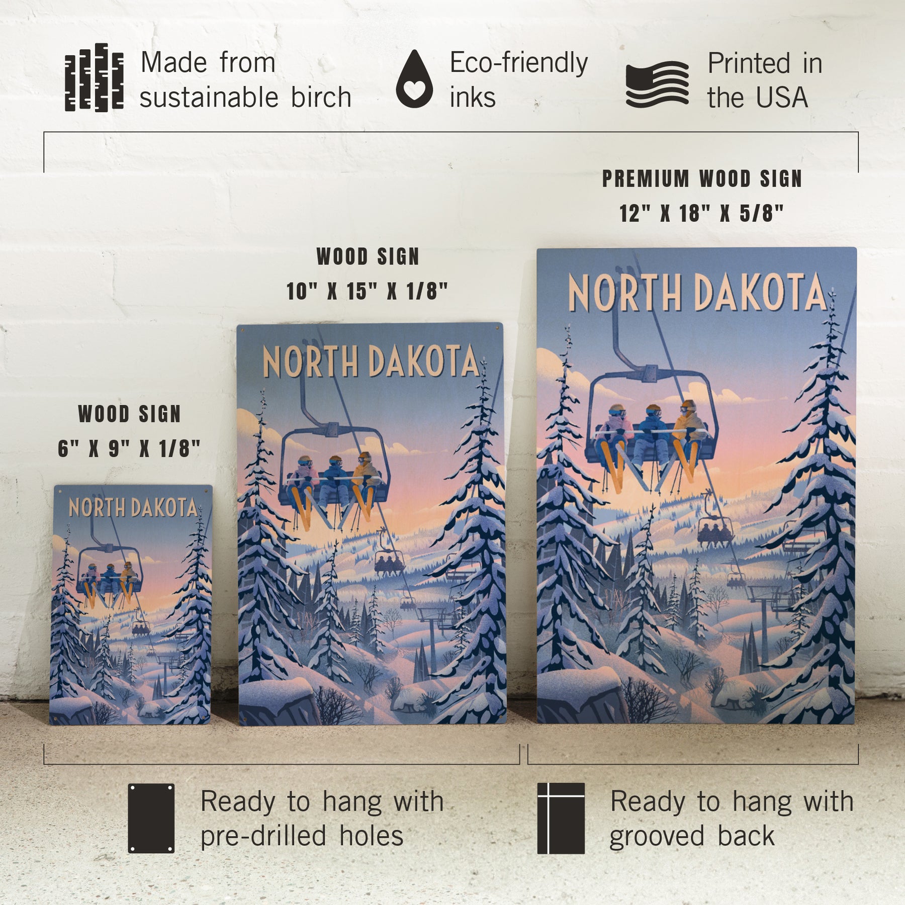 North Dakota, Chill on the Uphill, Ski Lift, Wood Signs and Postcards Wood Lantern Press