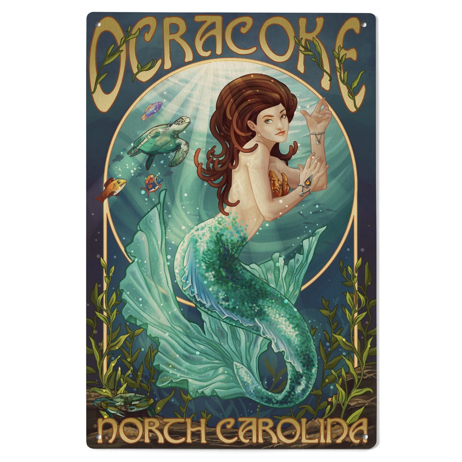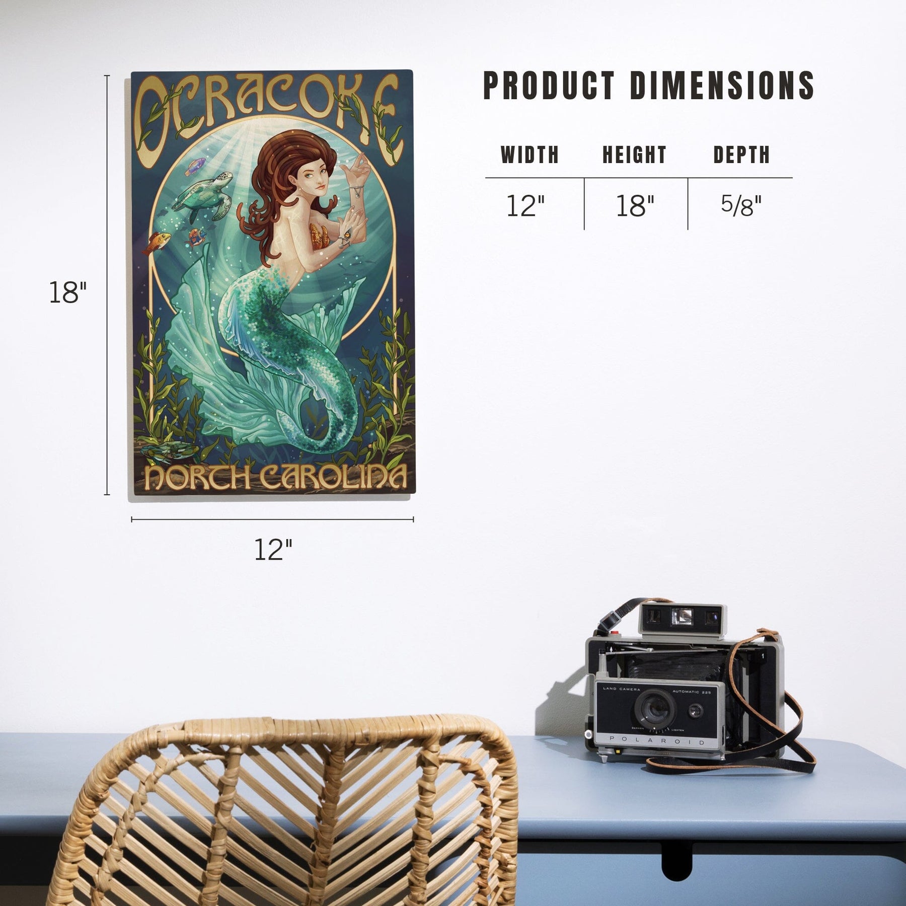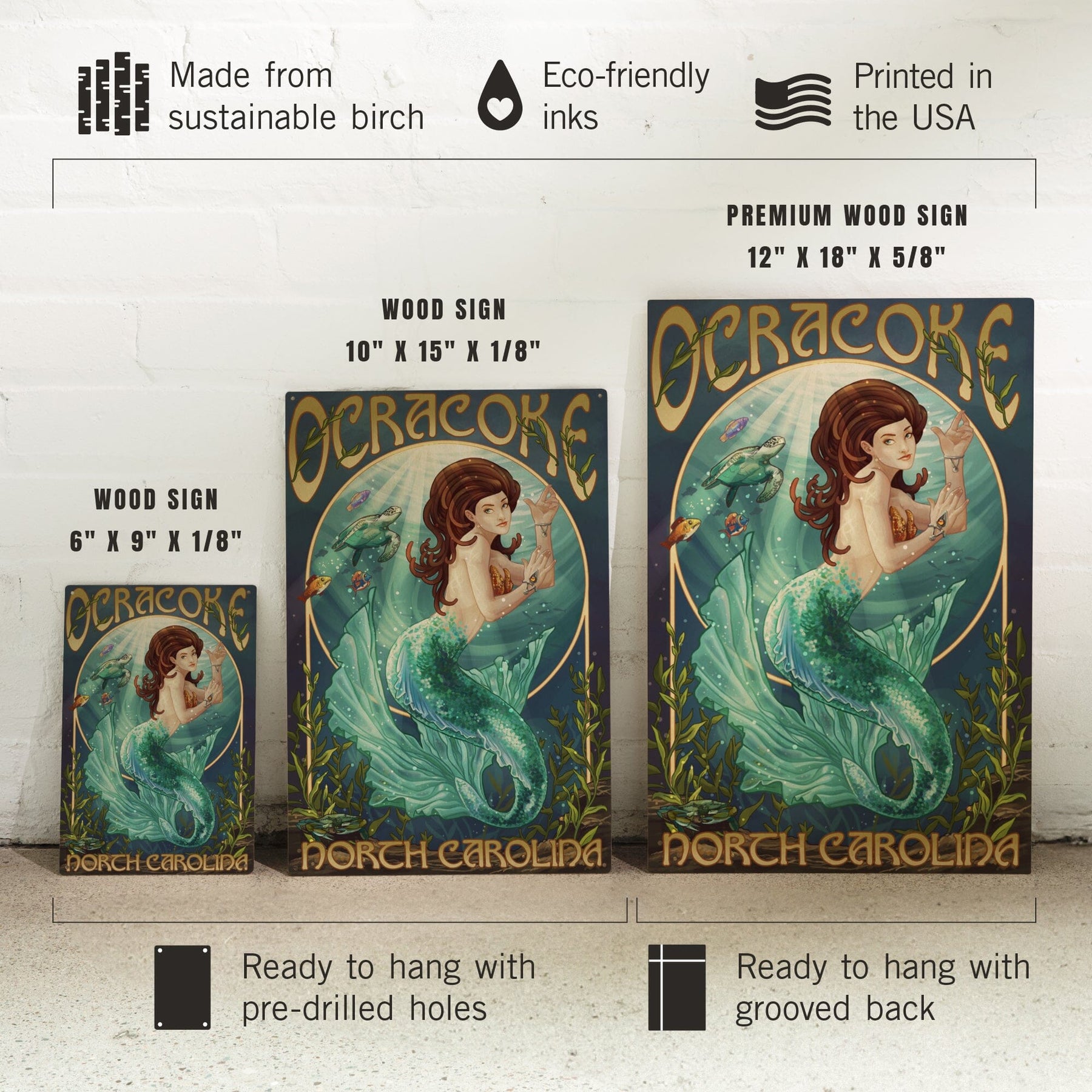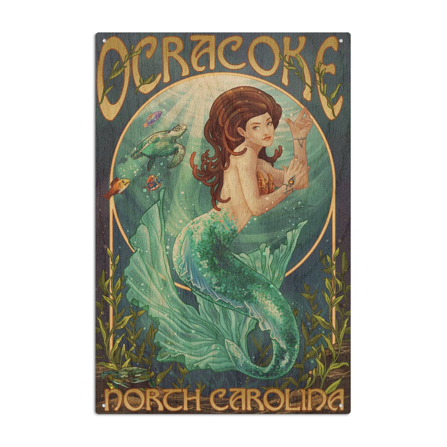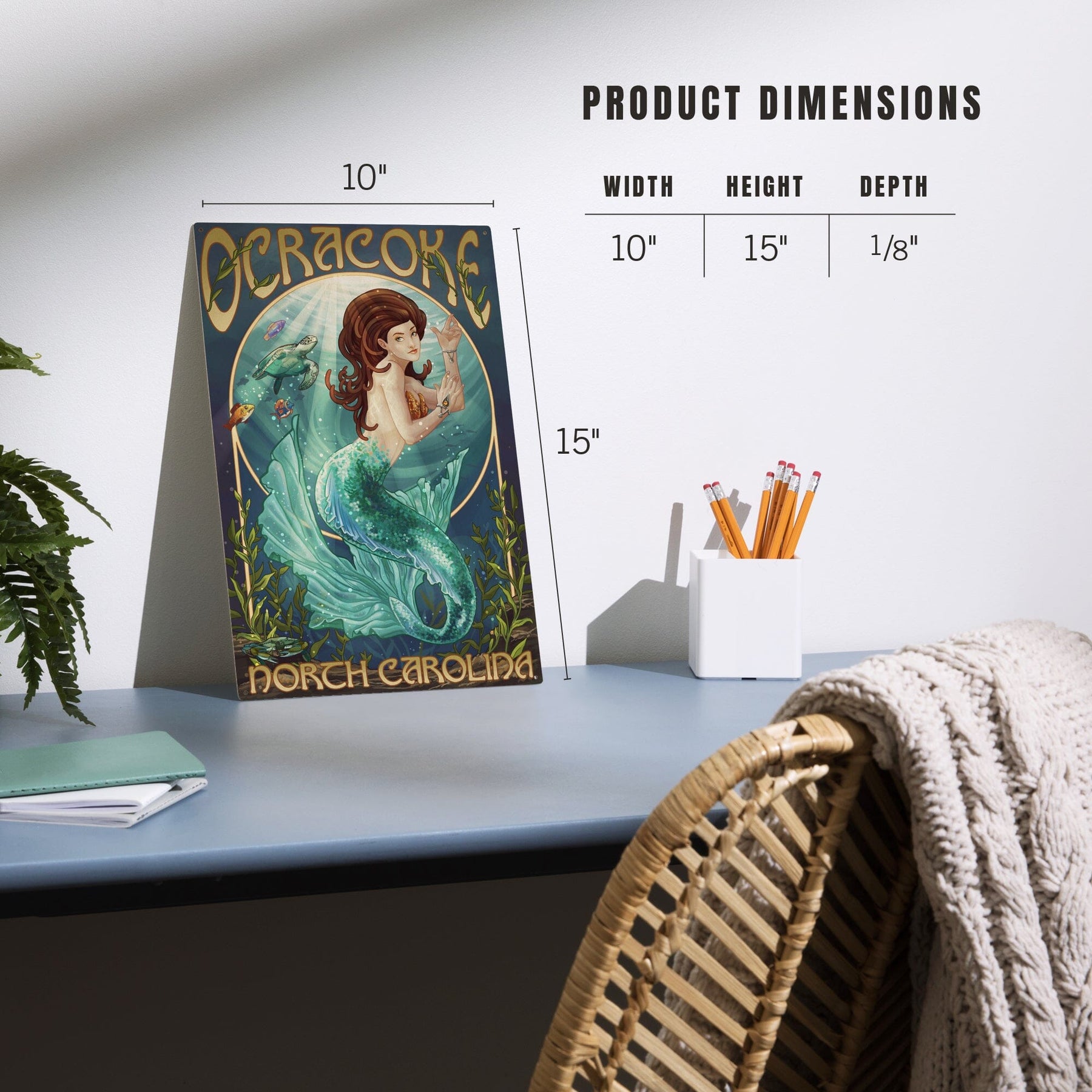 Ocracoke, North Carolina, Mermaid, Lantern Press Poster, Wood Signs and Postcards Wood Lantern Press
