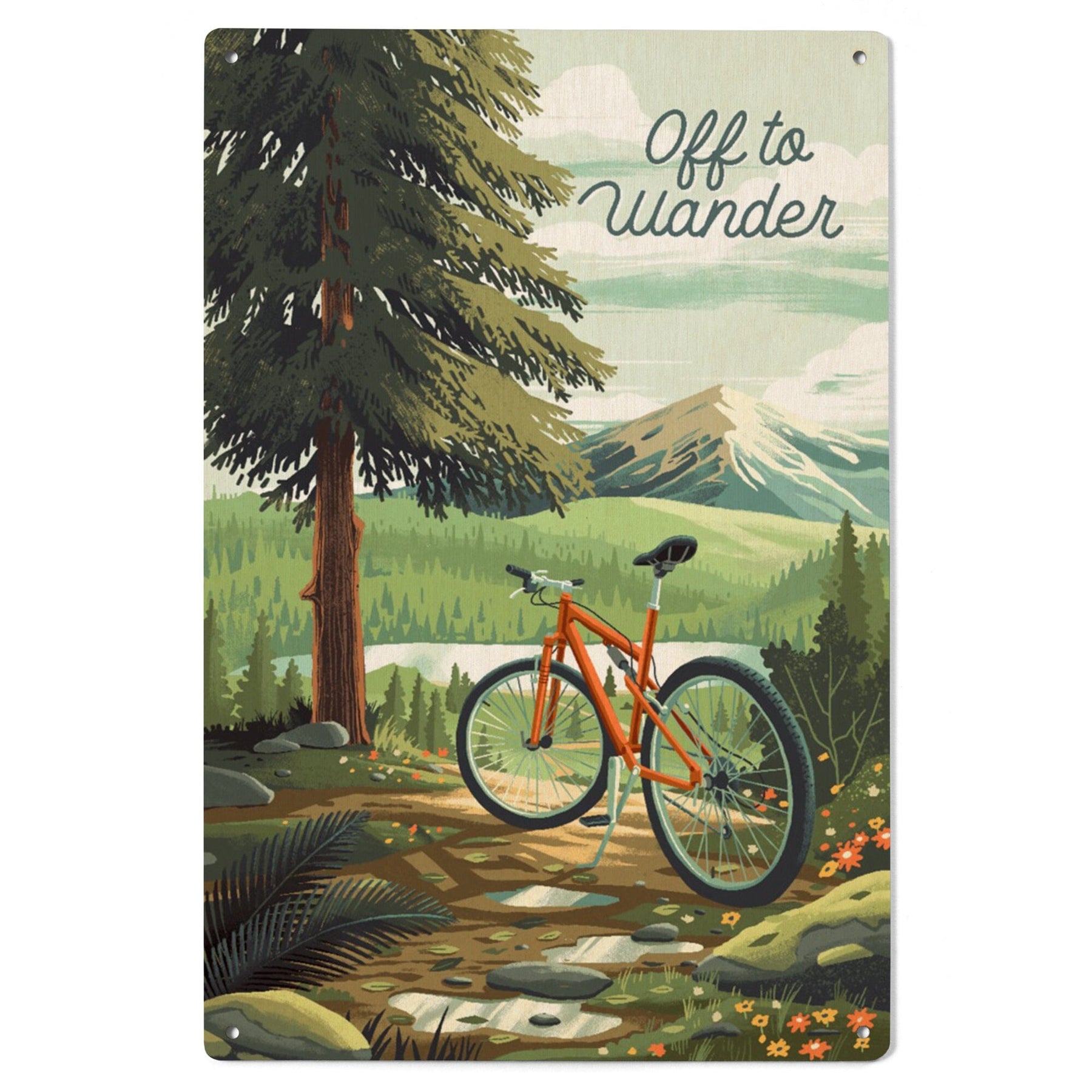 Off To Wander, Cycling with Mountains, Wood Signs and Postcards Wood Lantern Press