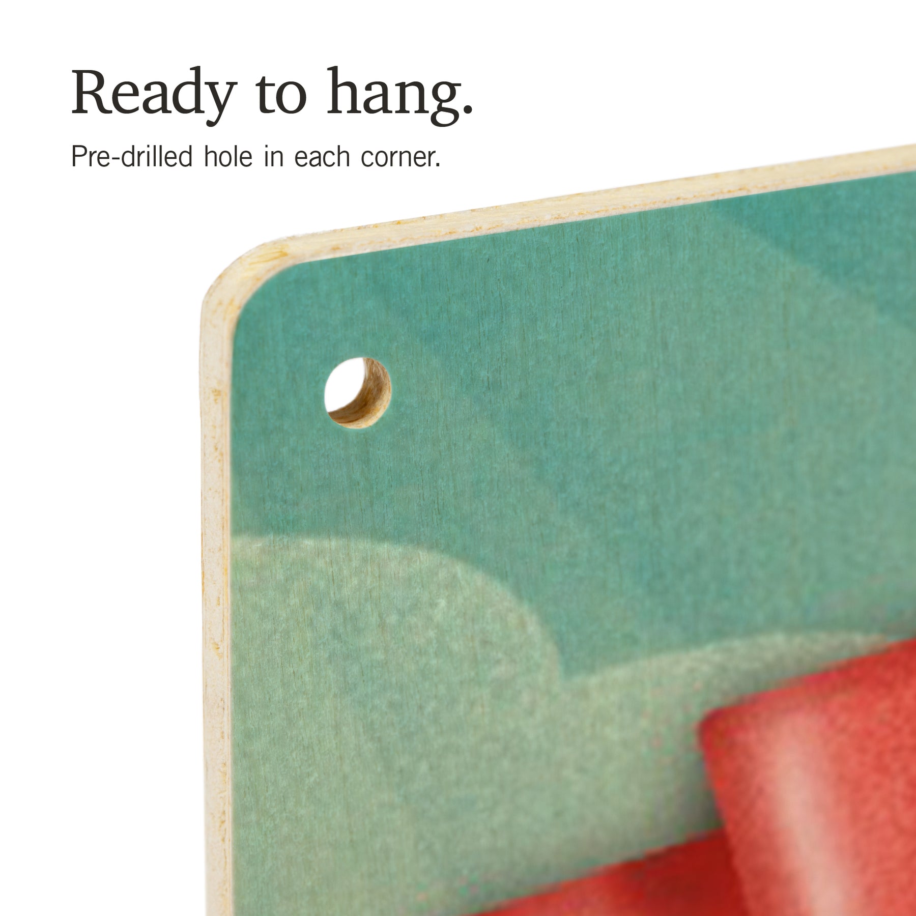 • Hole in each corner, ready to hang