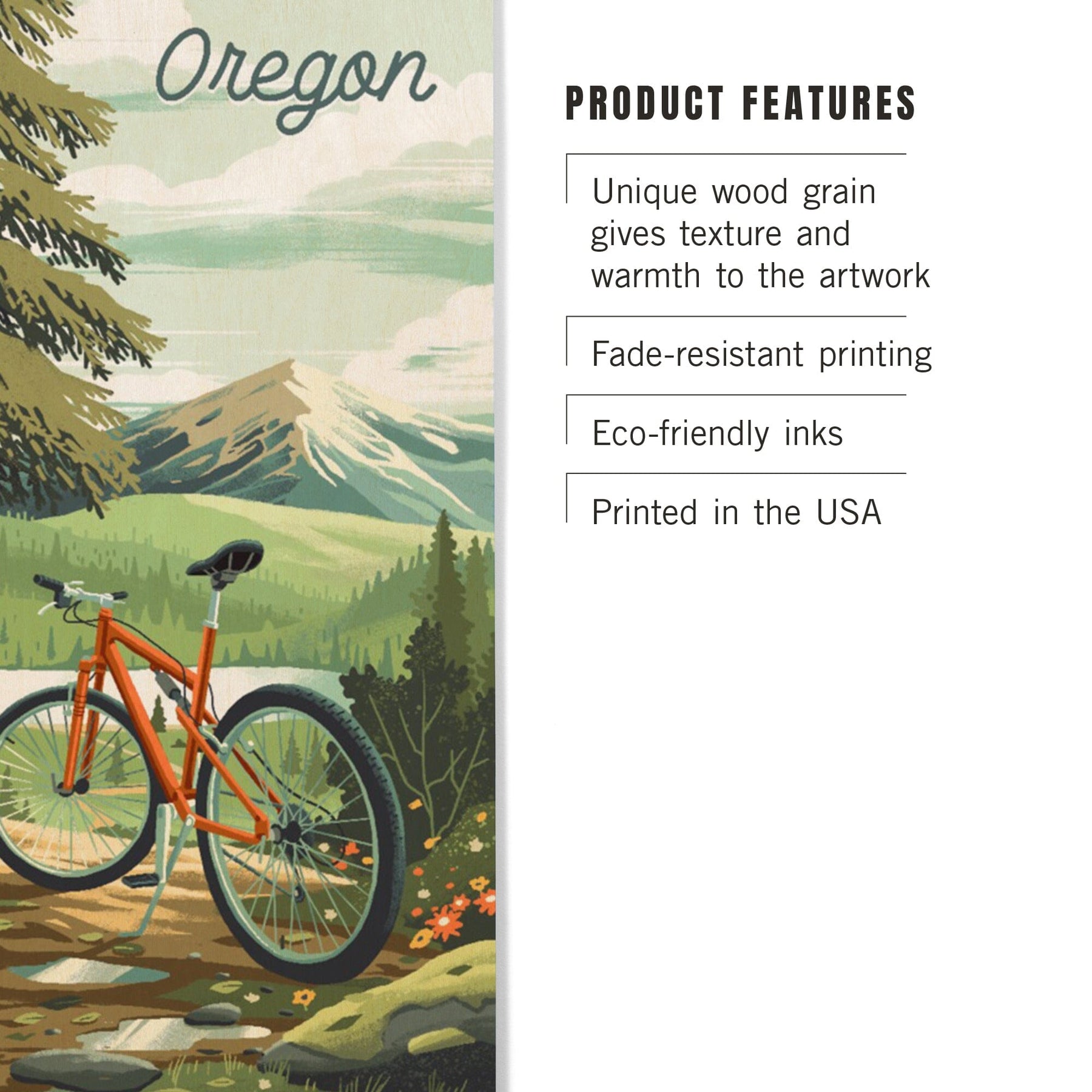 Oregon, Off To Wander, Cycling with Mountains, Wood Signs and Postcards Wood Lantern Press