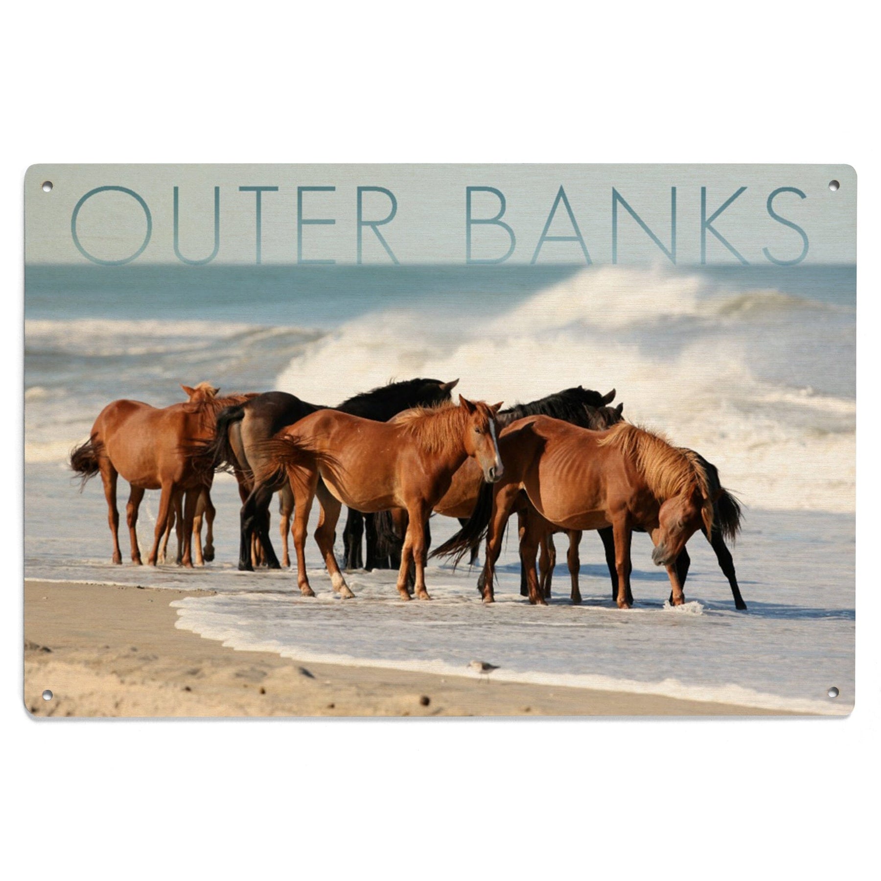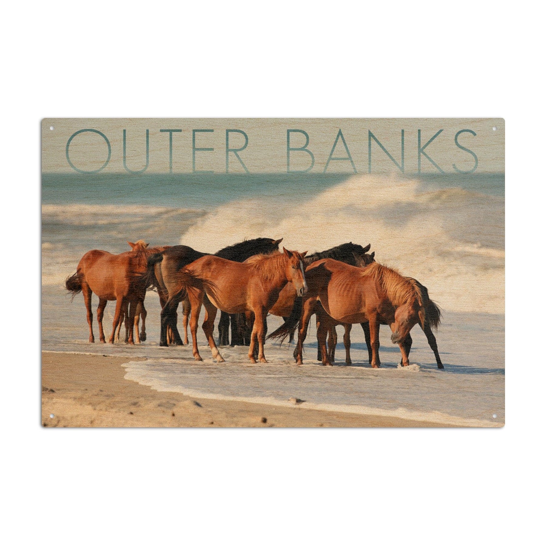 Outer Banks, North Carolina, Horses on Beach, Lantern Press Photography, Wood Signs and Postcards Wood Lantern Press
