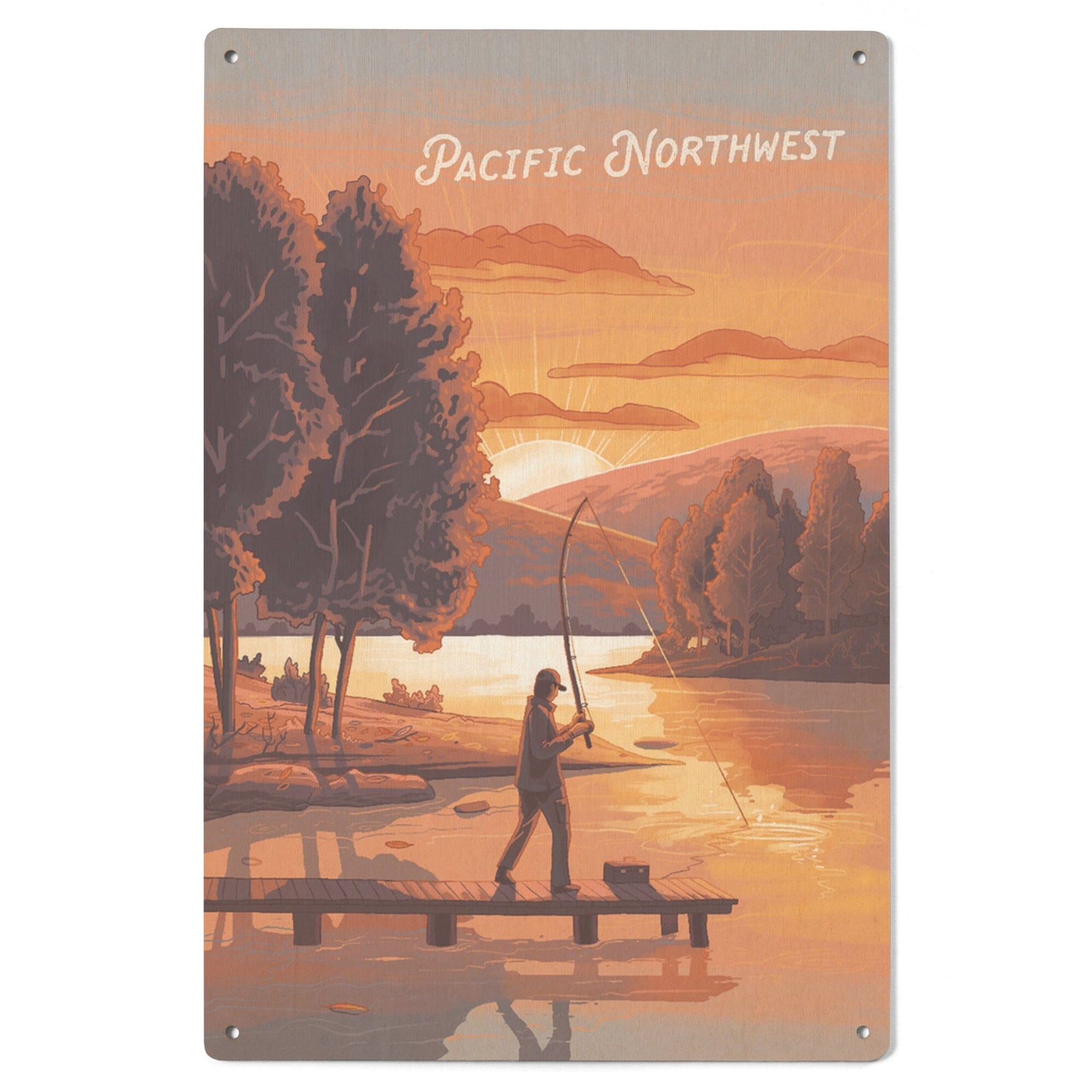 Pacific Northwest, This is Living, Fishing with Hills, Wood Signs and Postcards Wood Lantern Press