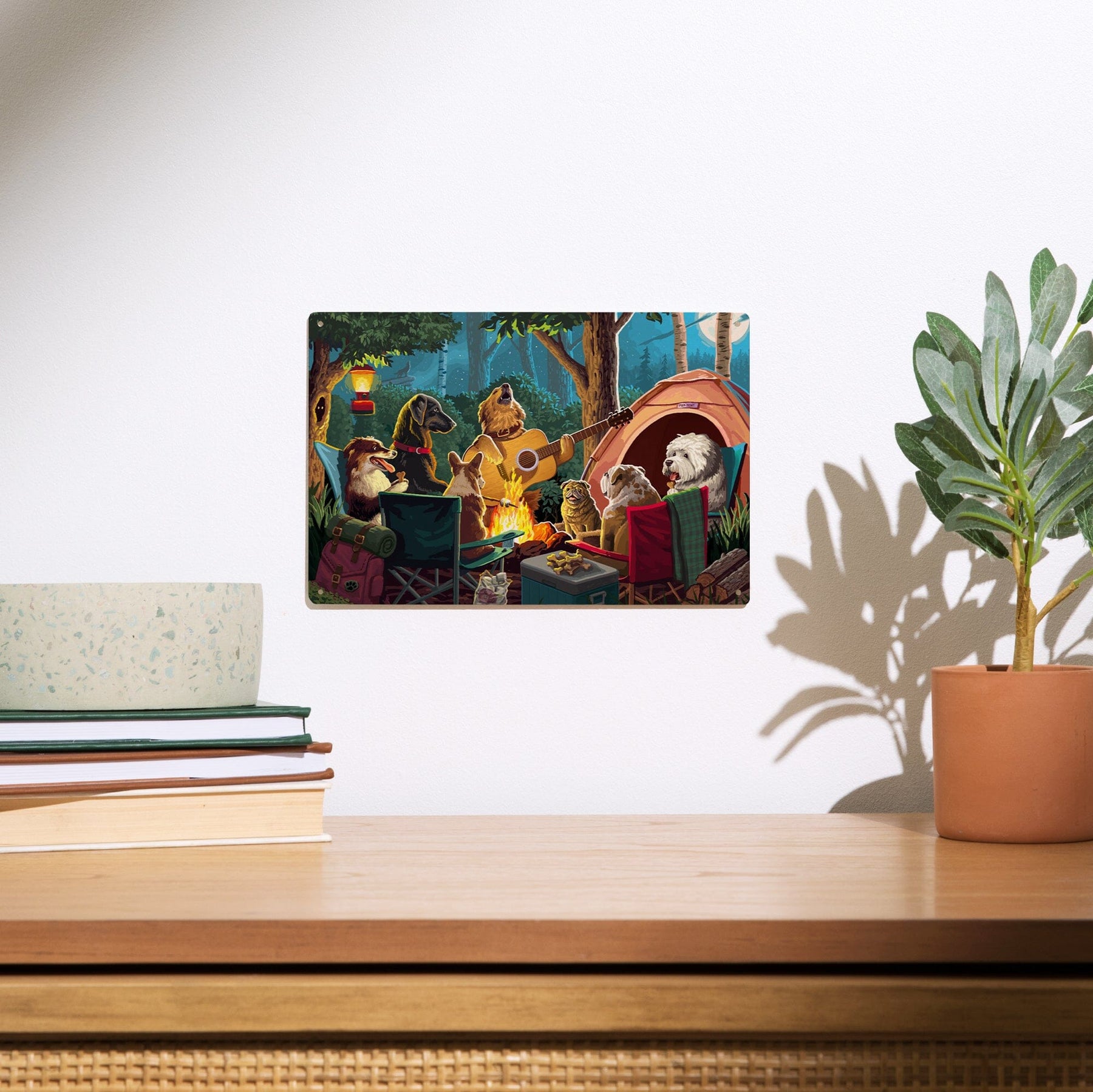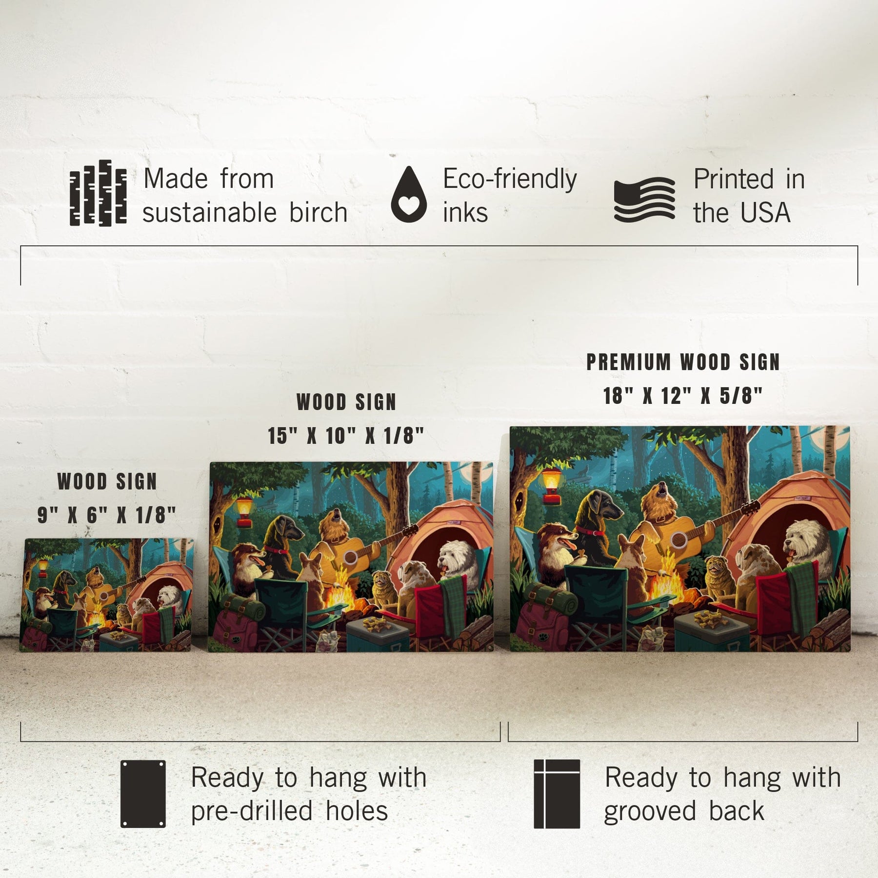 Painterly, Pack Life, Dogs Around Campfire, Wood Signs and Postcards Wood Lantern Press