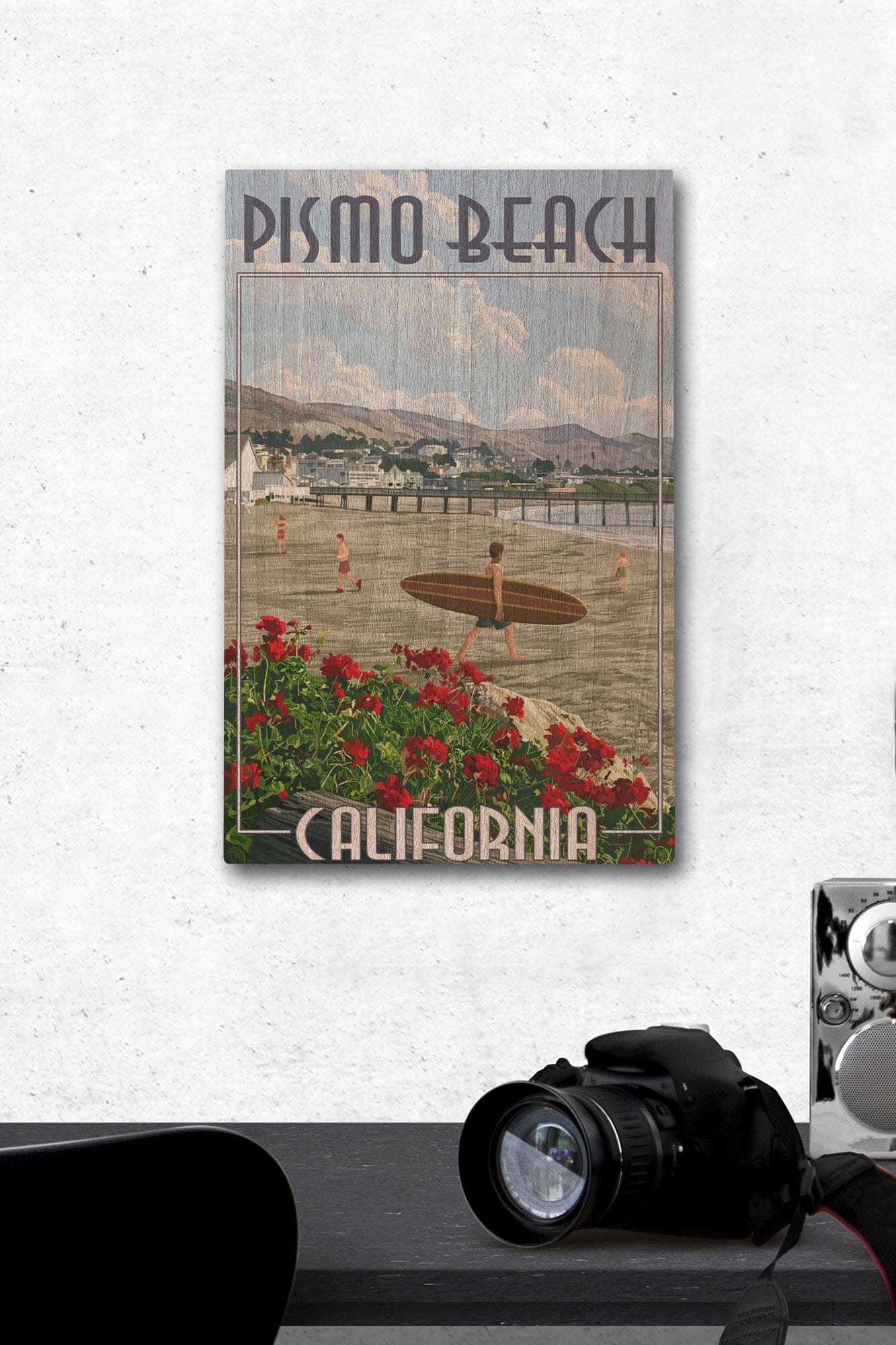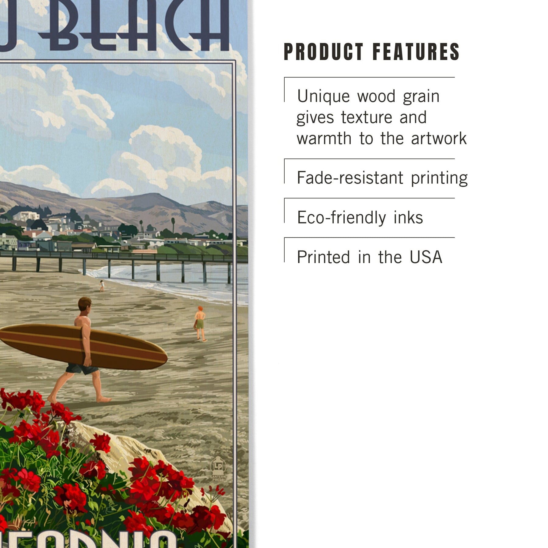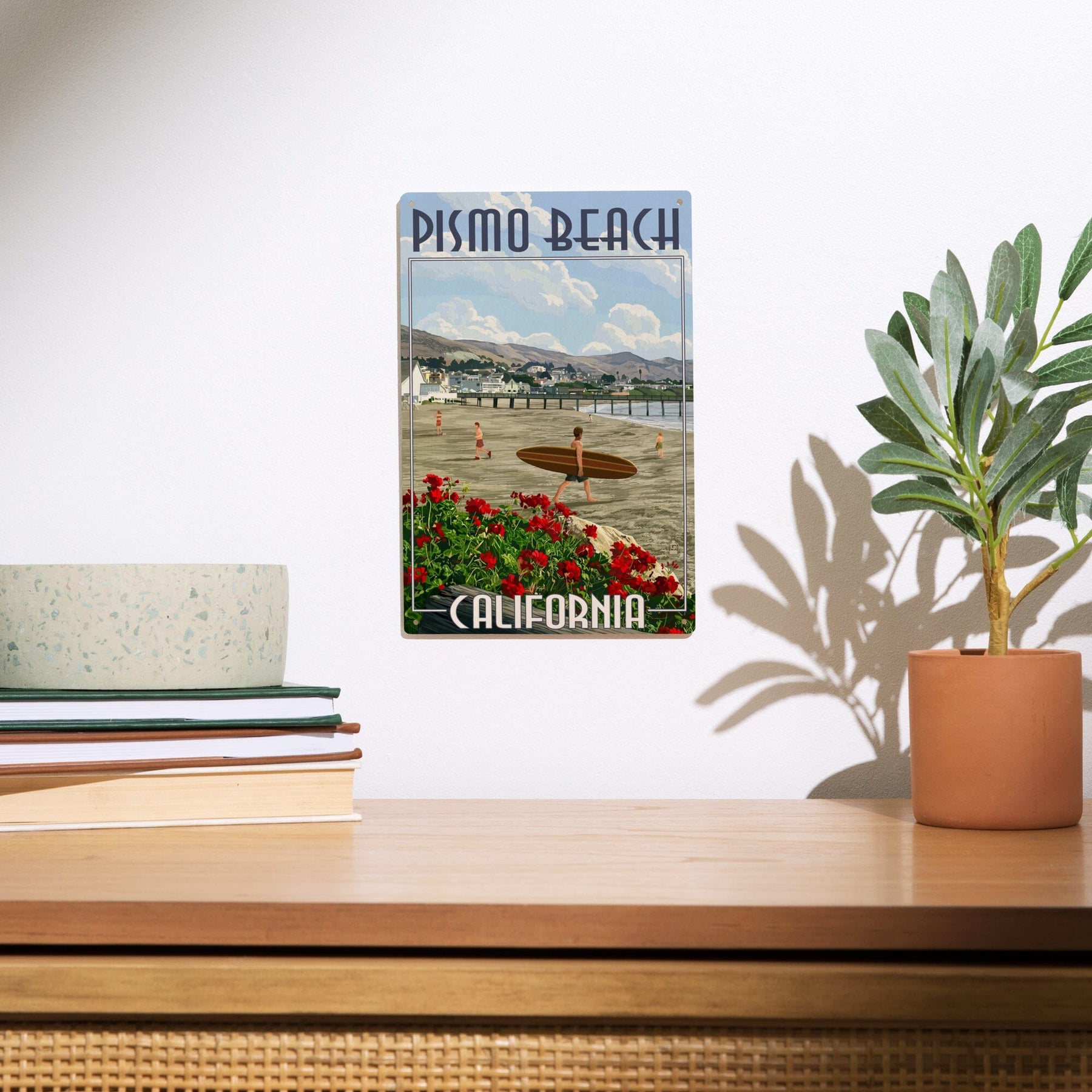 Pismo Beach, California, Beach and Surfer Scene, Lantern Press Artwork, Wood Signs and Postcards Wood Lantern Press