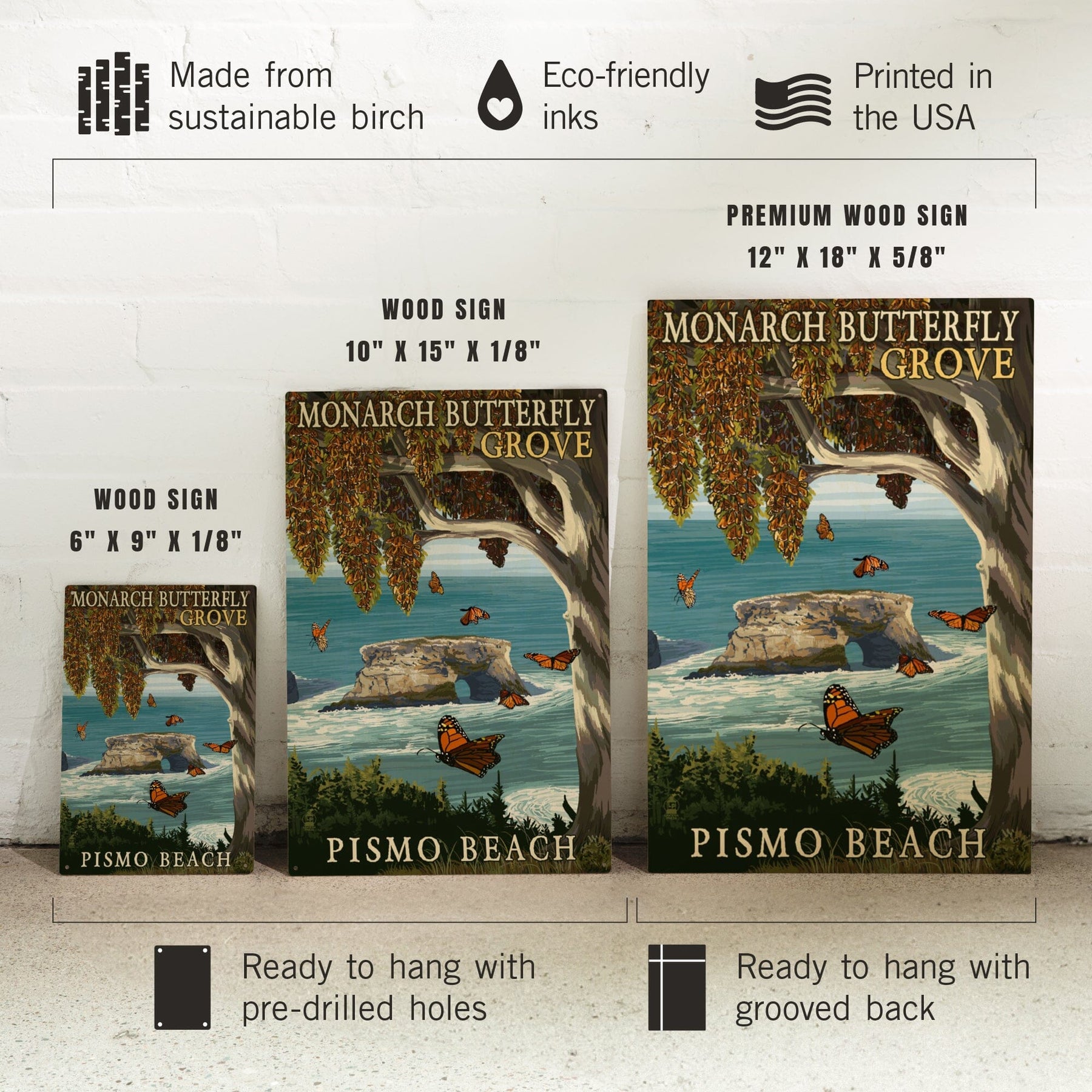 Pismo Beach, California, Monarch Butterfly Grove, Lantern Press Artwork, Wood Signs and Postcards