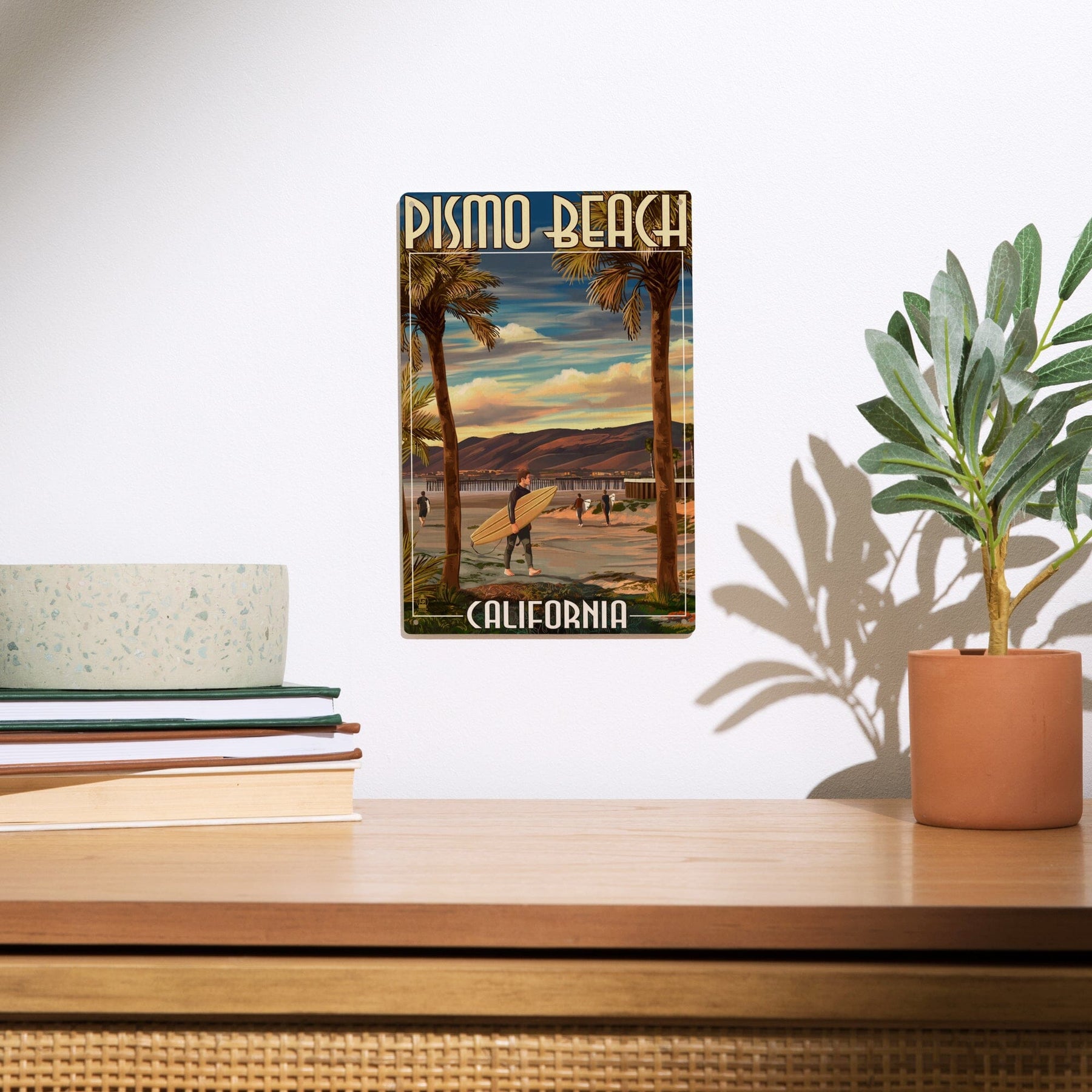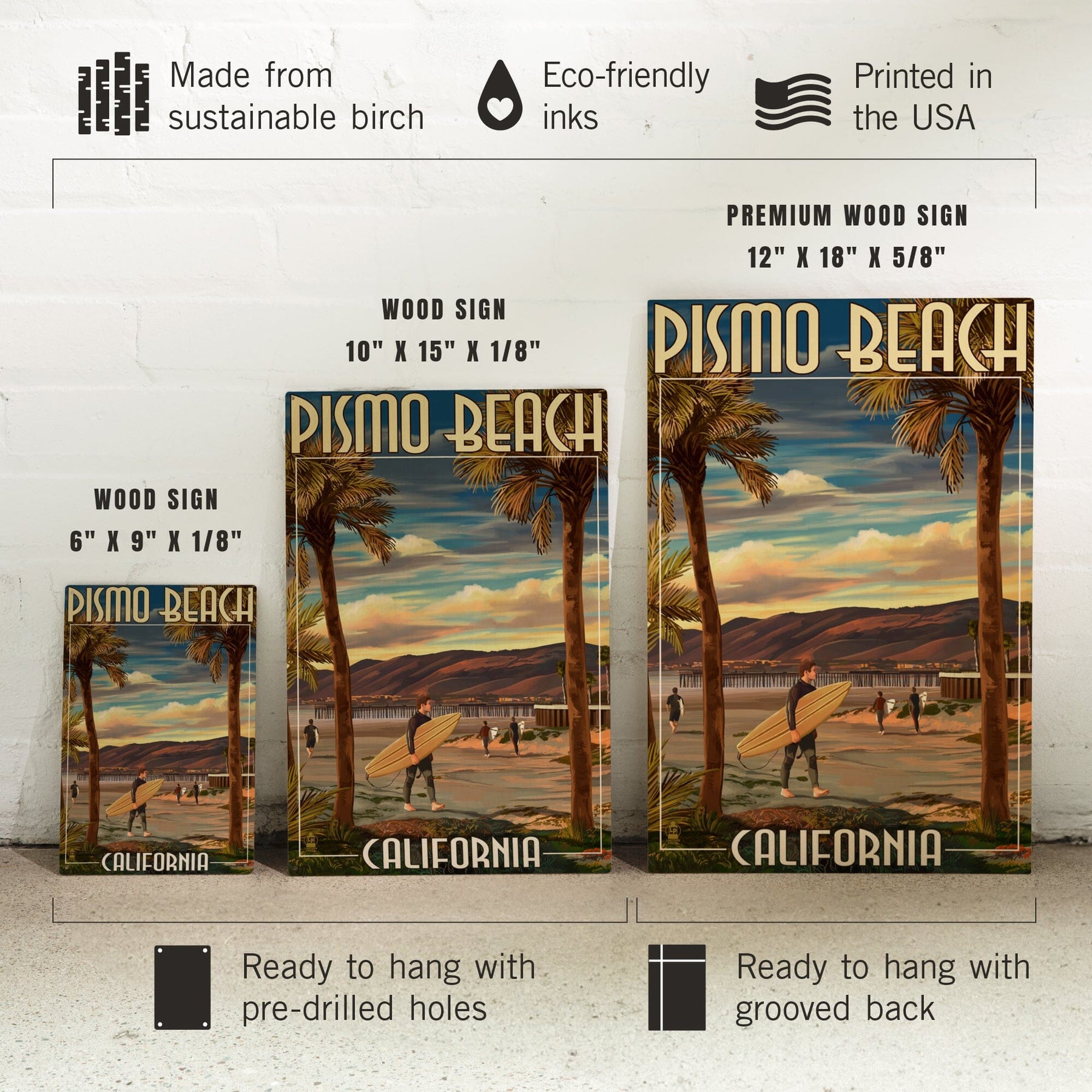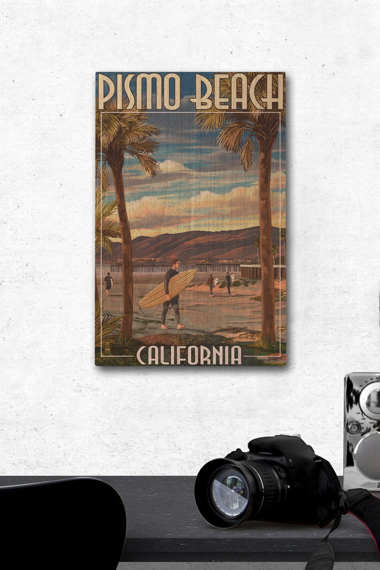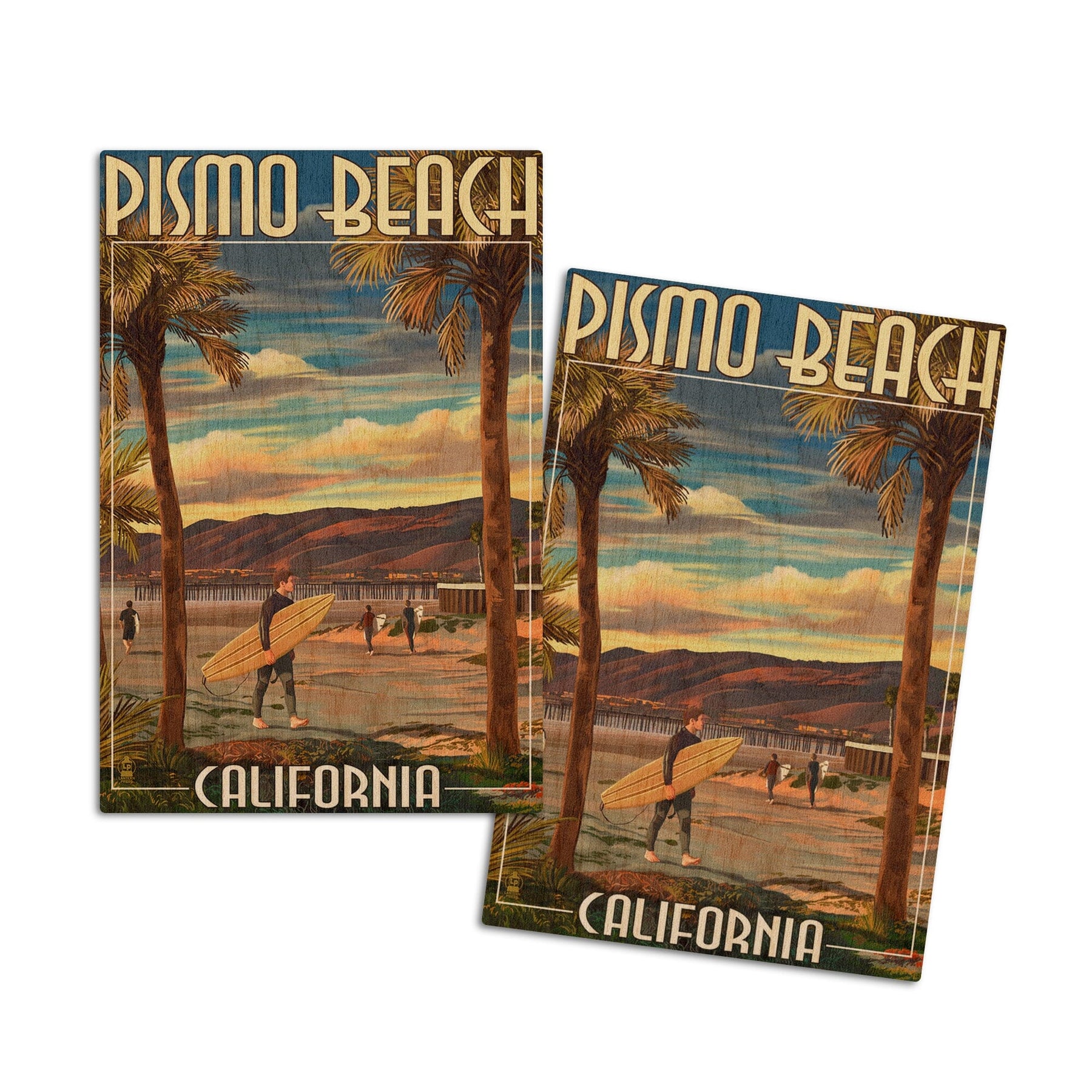 Pismo Beach, California, Surfer & Pier, Lantern Press Artwork, Wood Signs and Postcards Wood Lantern Press