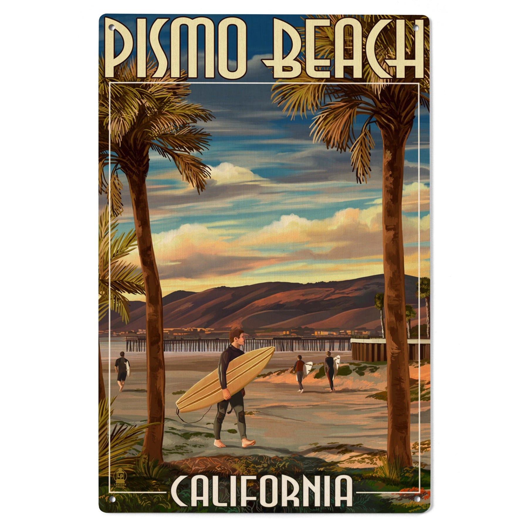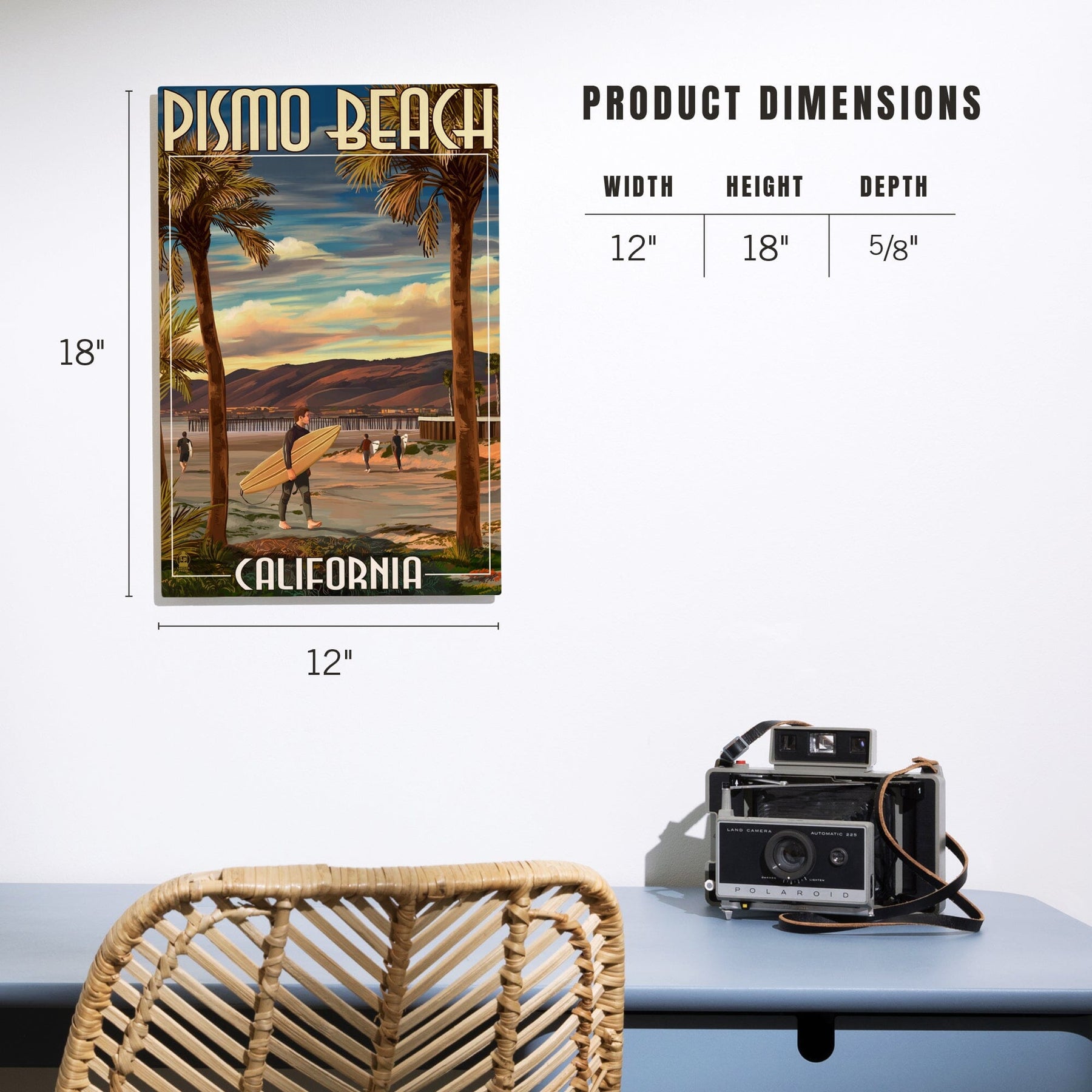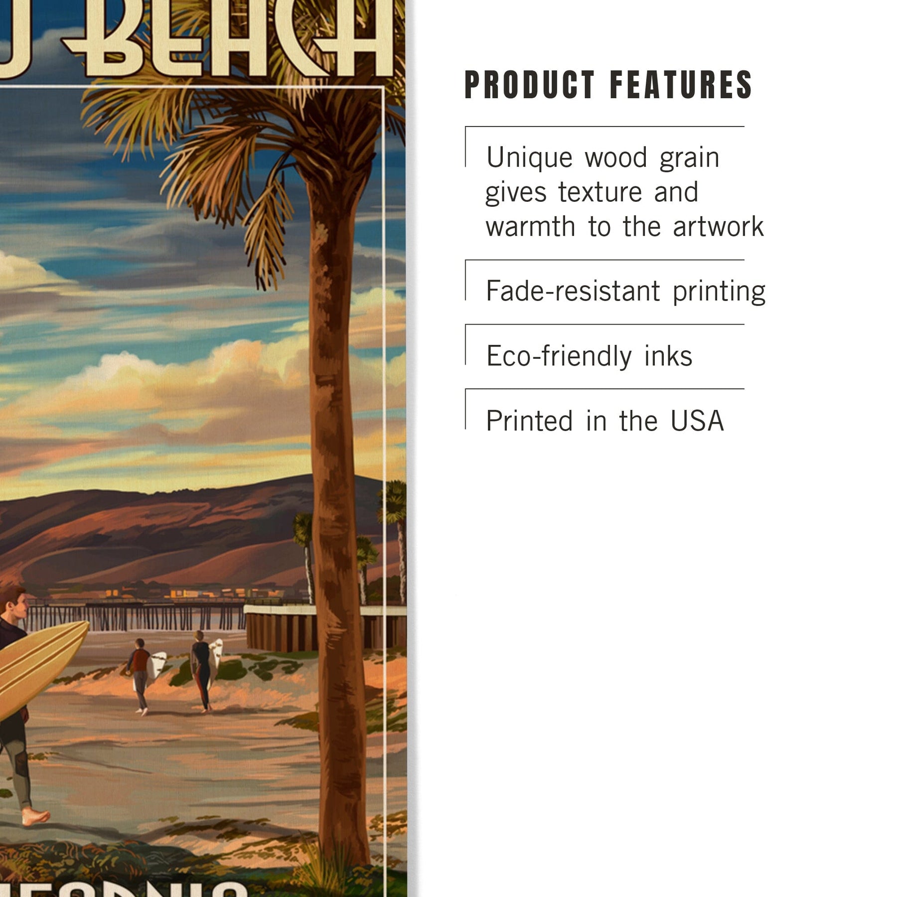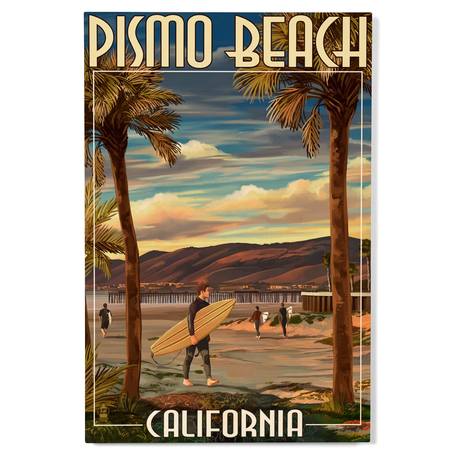 Pismo Beach, California, Surfer & Pier, Lantern Press Artwork, Wood Signs and Postcards Wood Lantern Press