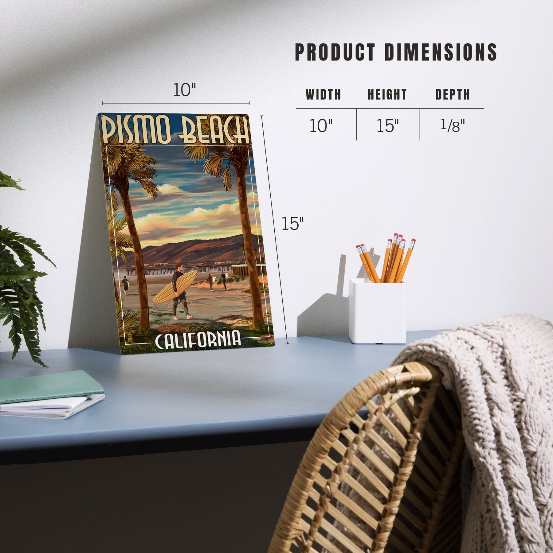 Pismo Beach, California, Surfer & Pier, Lantern Press Artwork, Wood Signs and Postcards