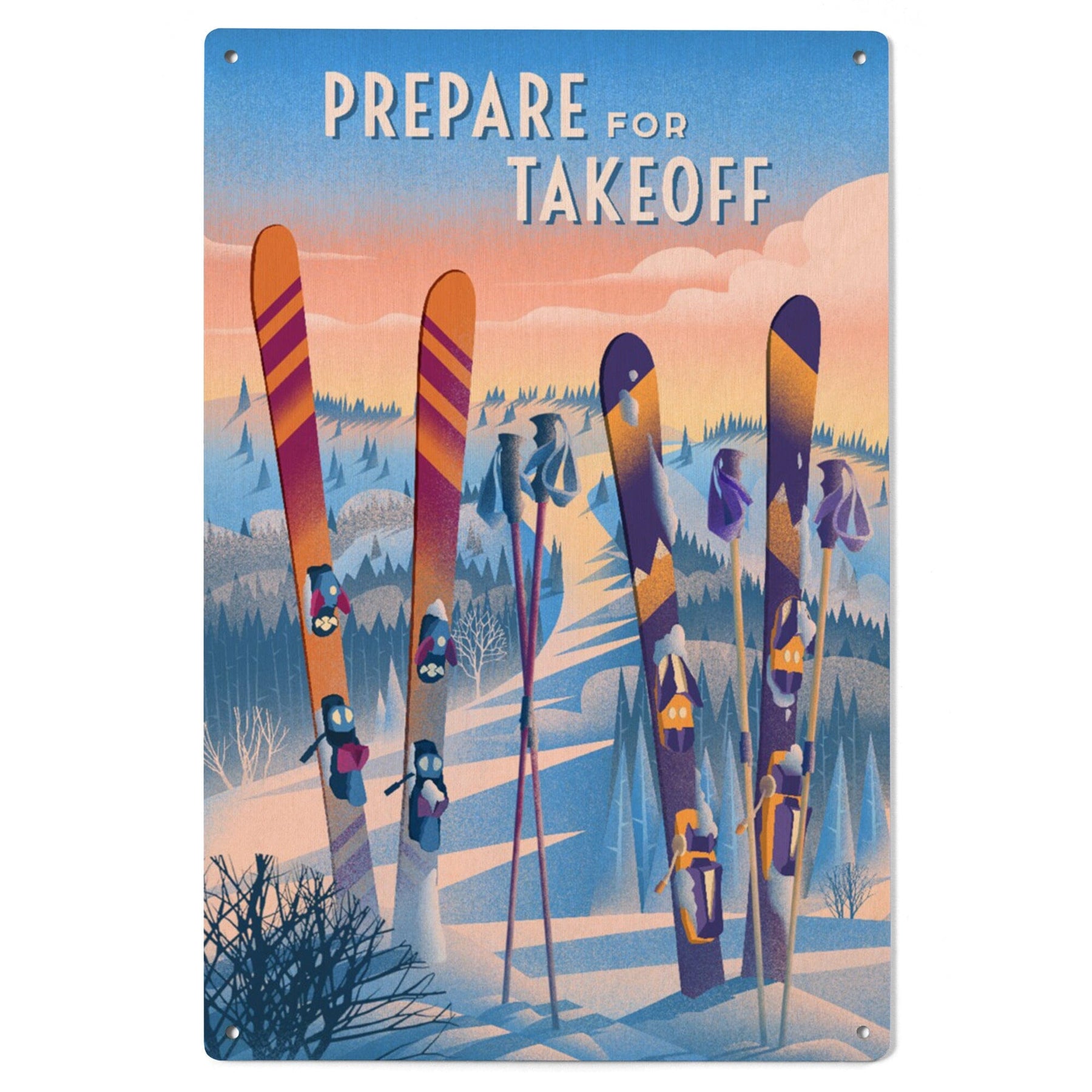Prepare for Takeoff, Skis In Snowbank, Wood Signs and Postcards Wood Lantern Press