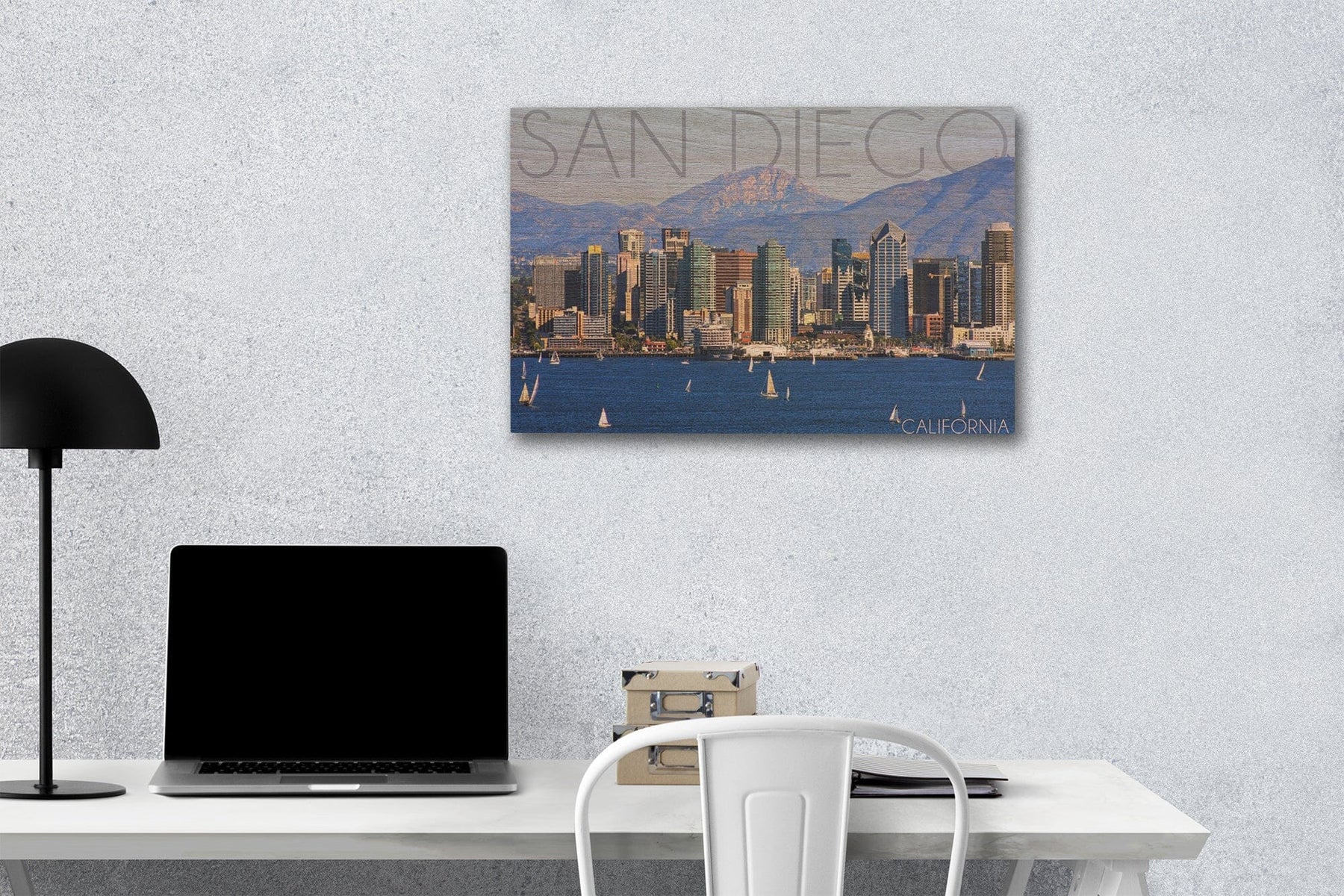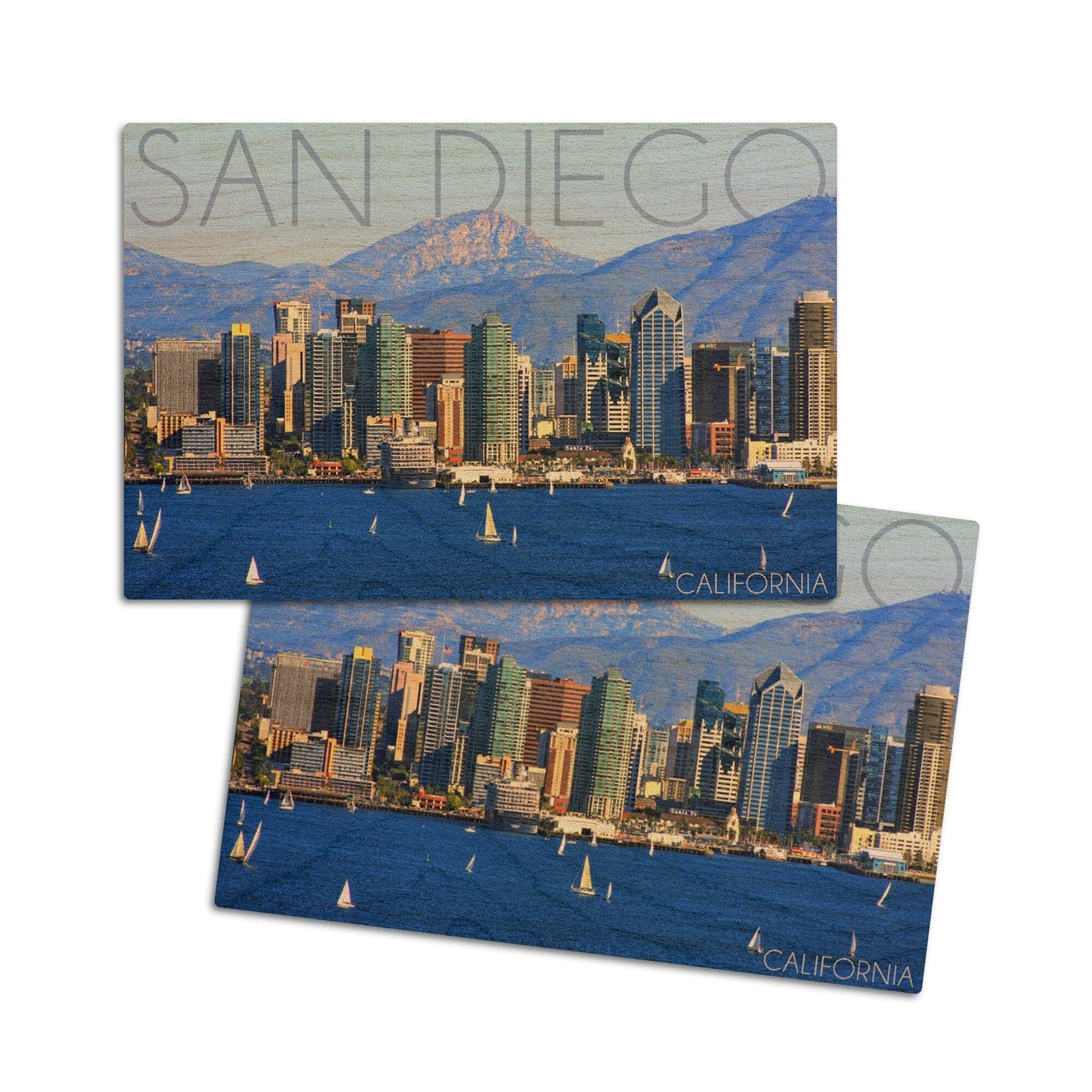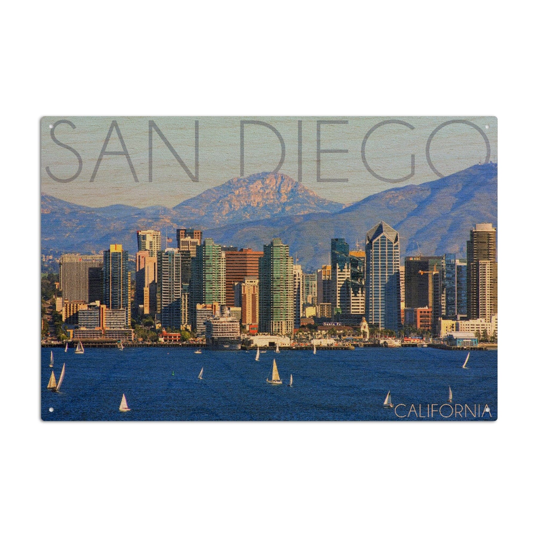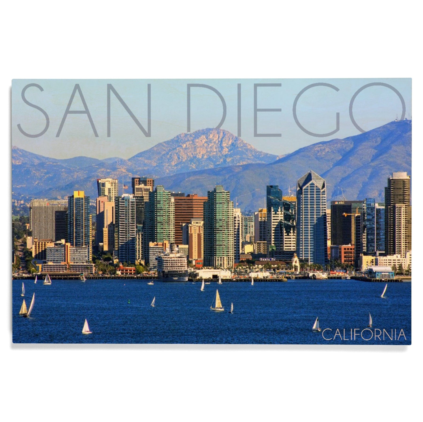 San Diego, California, Mountains & Sailboats, Lantern Press Photography, Wood Signs and Postcards Wood Lantern Press