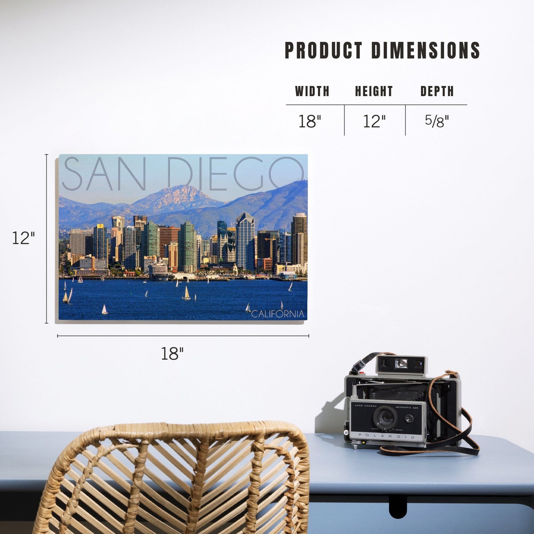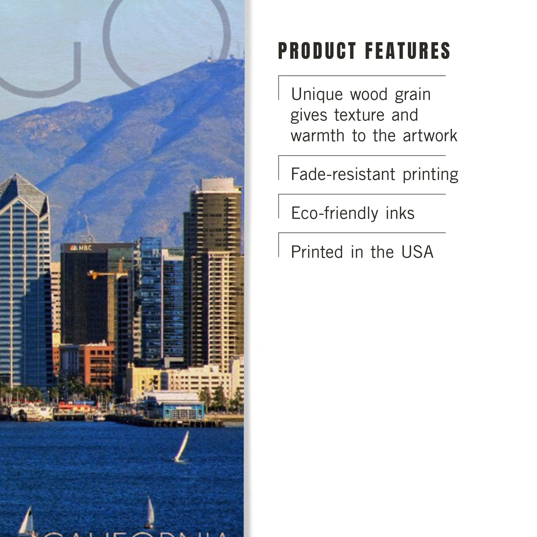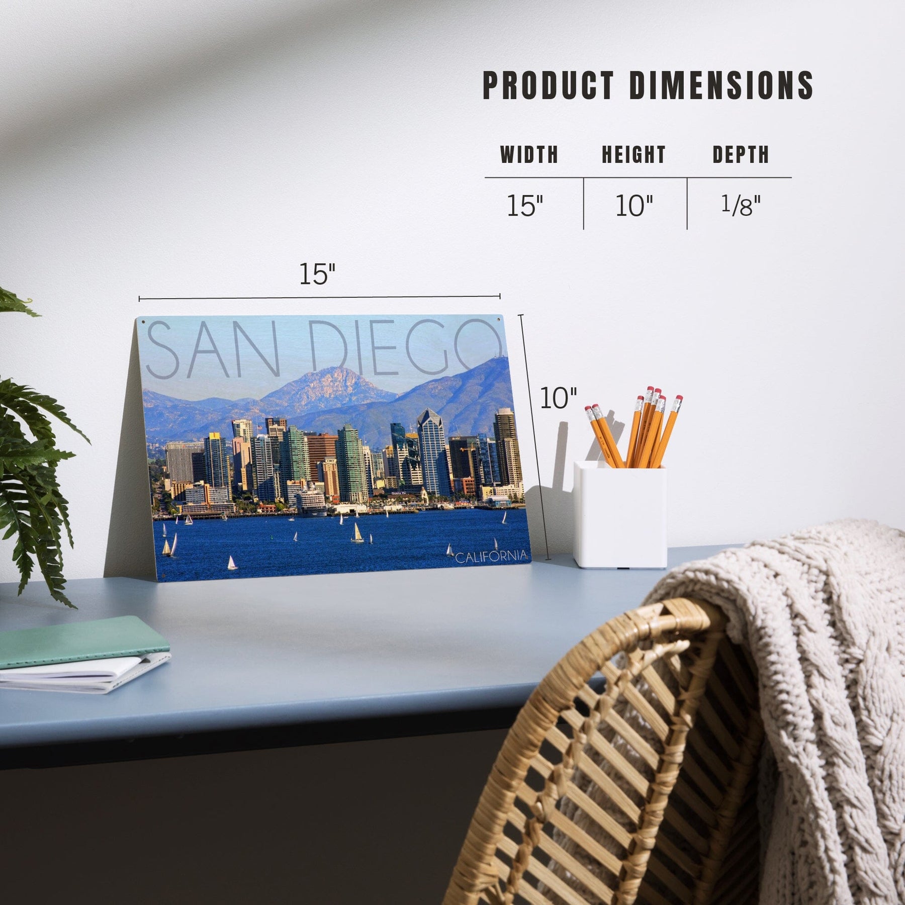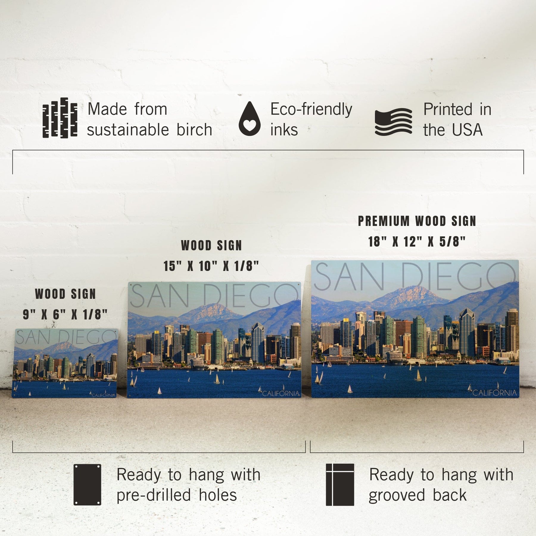 San Diego, California, Mountains & Sailboats, Lantern Press Photography, Wood Signs and Postcards Wood Lantern Press