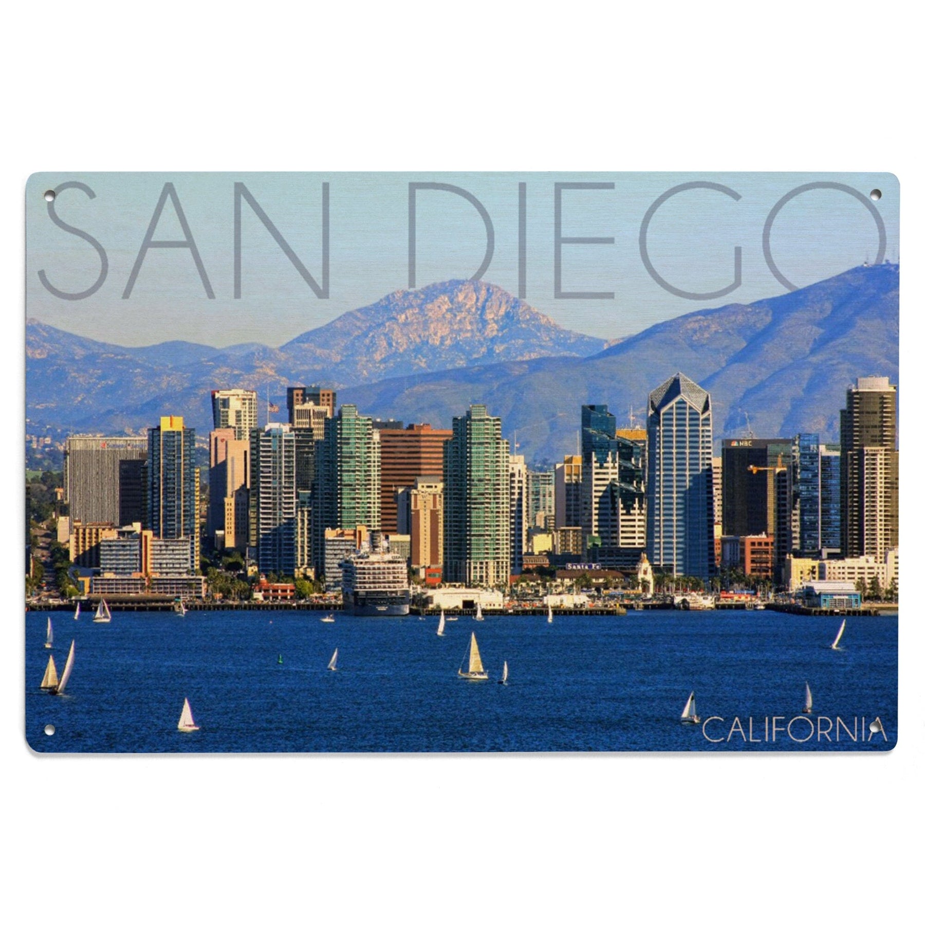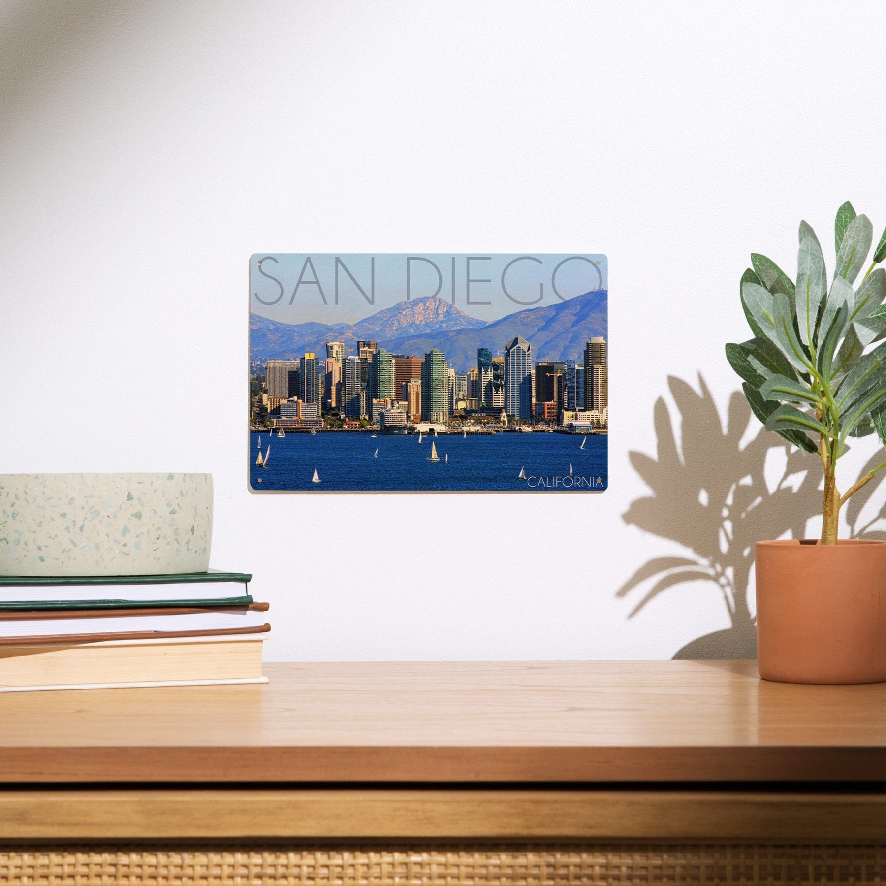 San Diego, California, Mountains & Sailboats, Lantern Press Photography, Wood Signs and Postcards