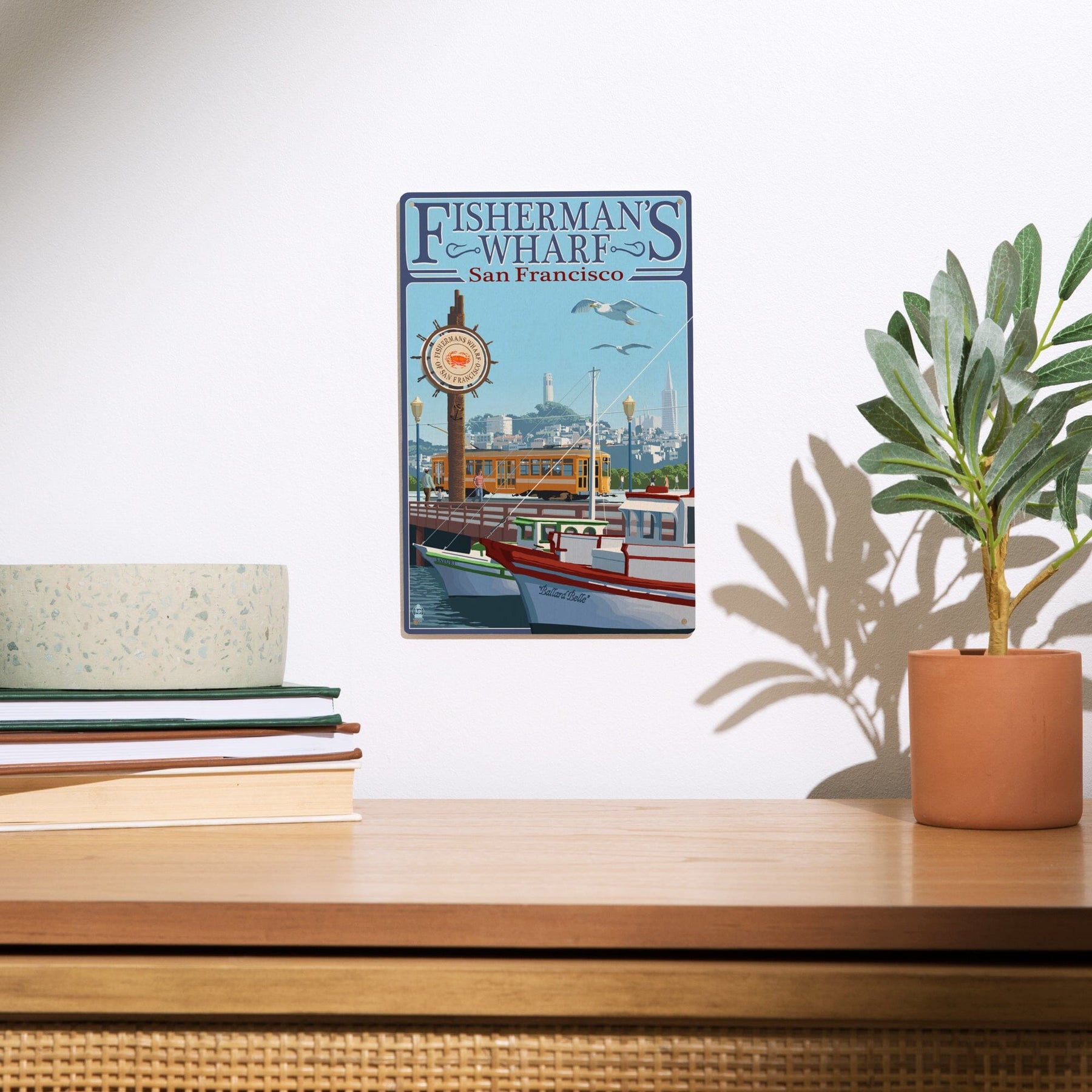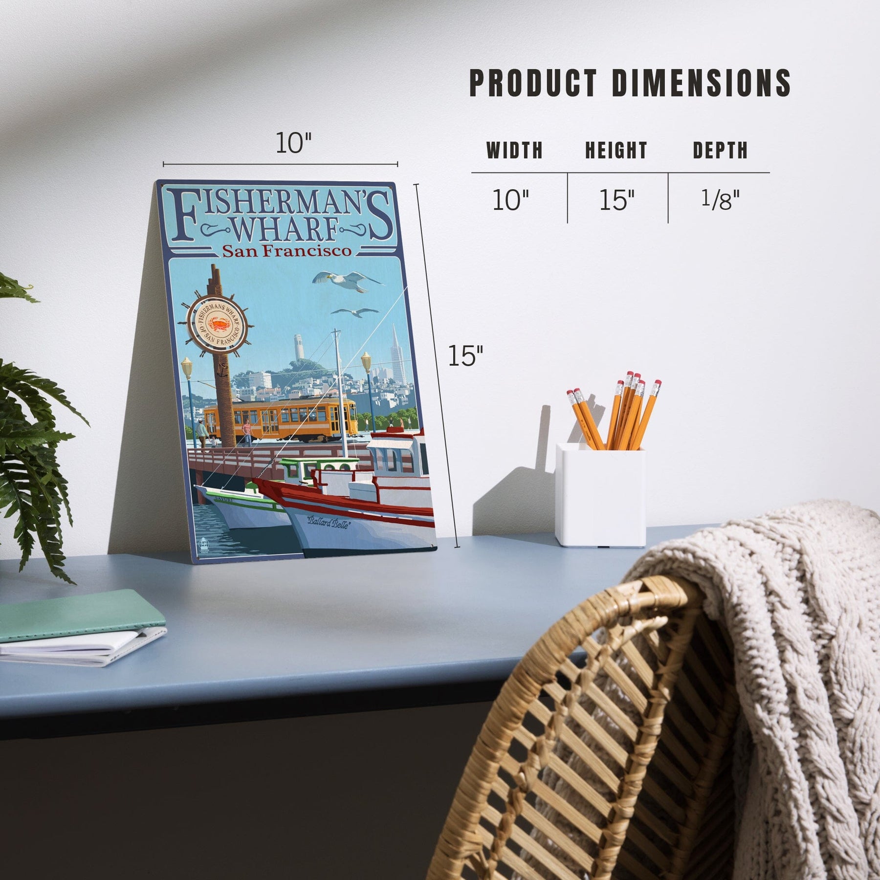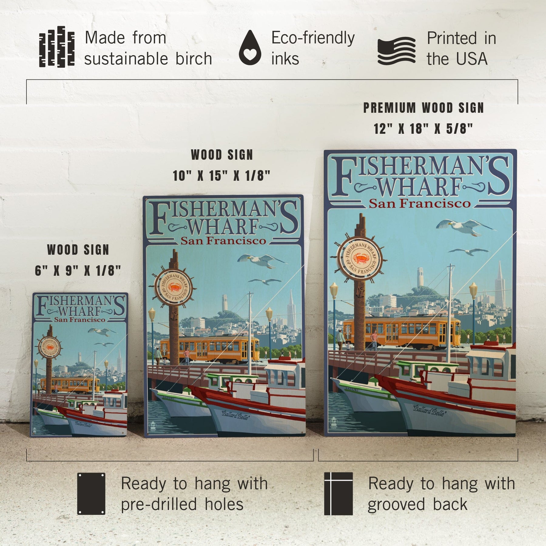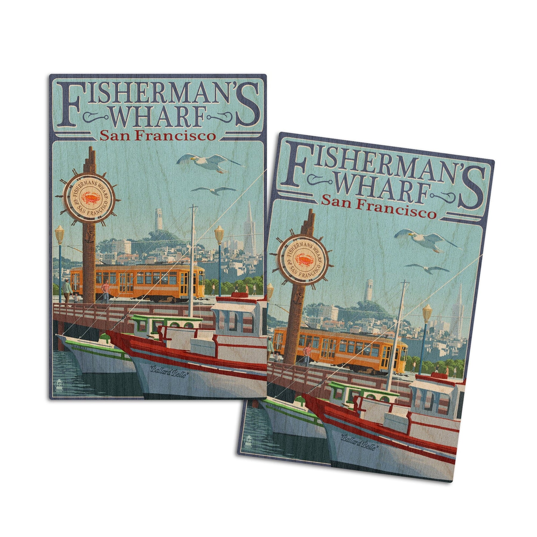 San Francisco, California, Fisherman's Wharf, Lantern Press Artwork, Wood Signs and Postcards