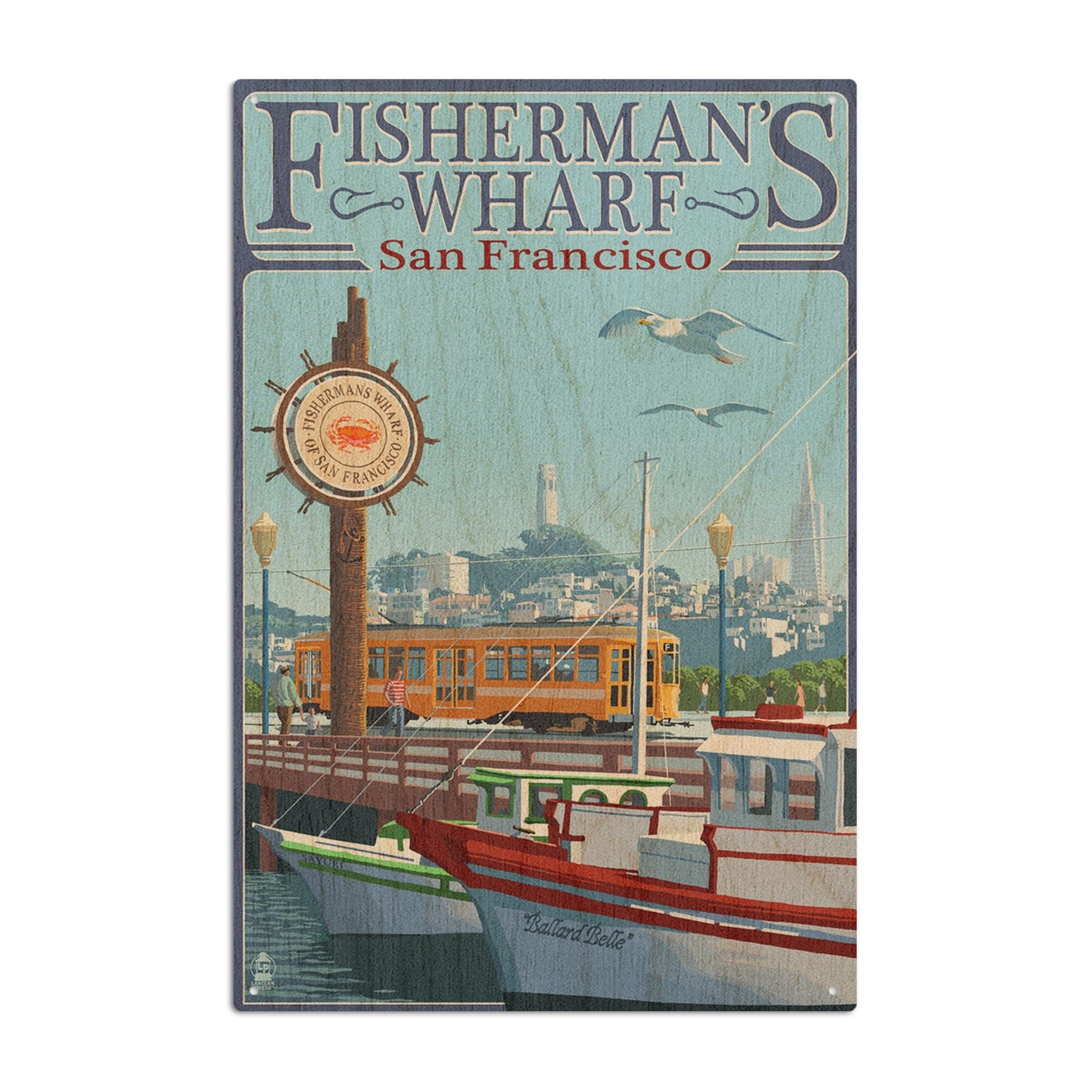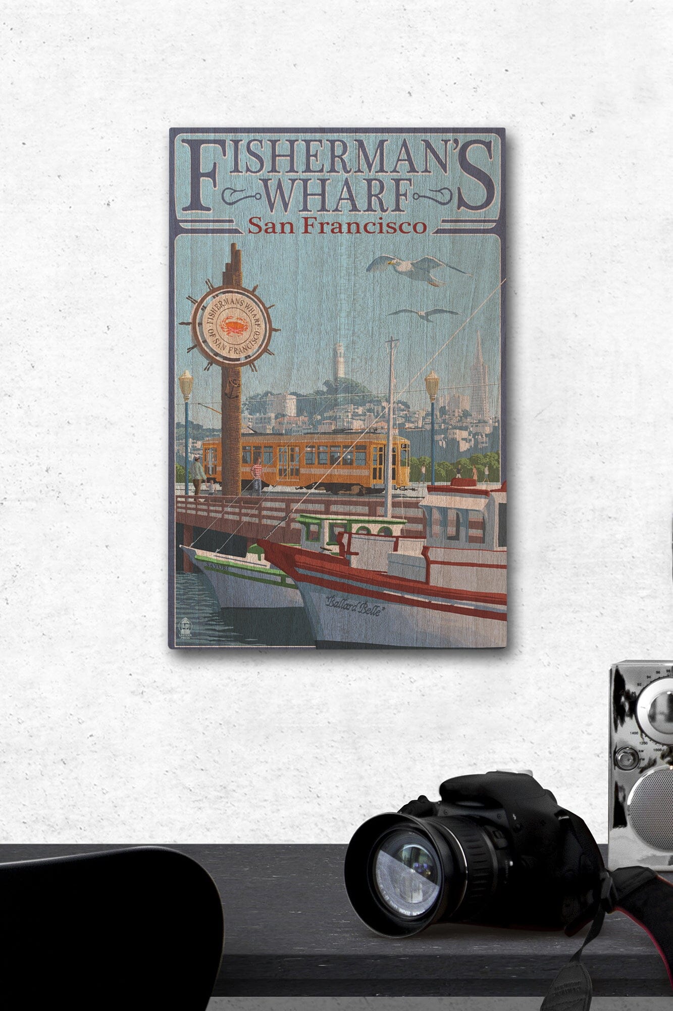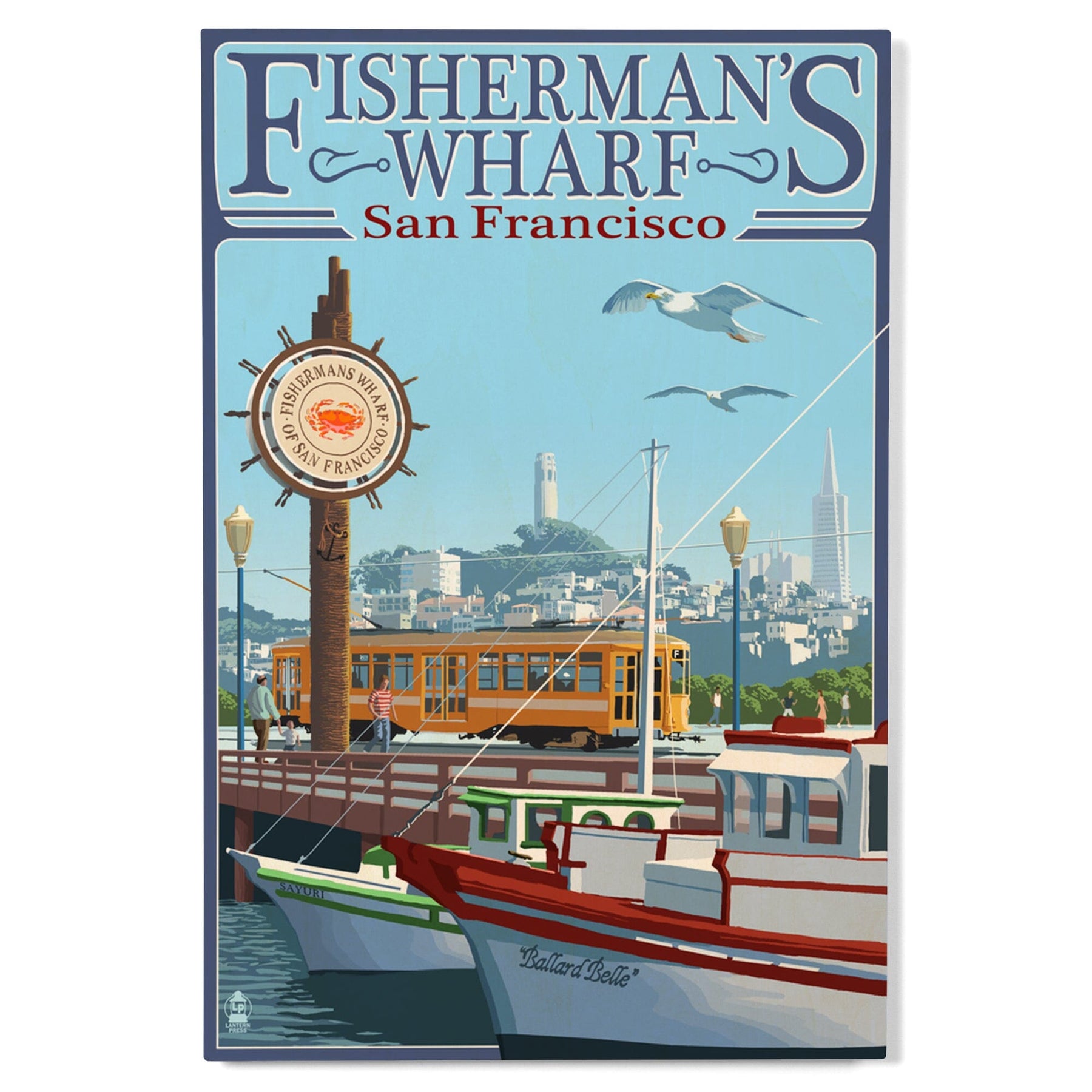 San Francisco, California, Fisherman's Wharf, Lantern Press Artwork, Wood Signs and Postcards Wood Lantern Press