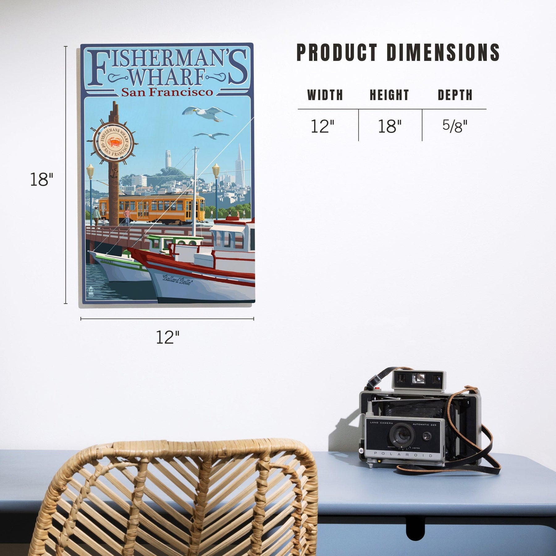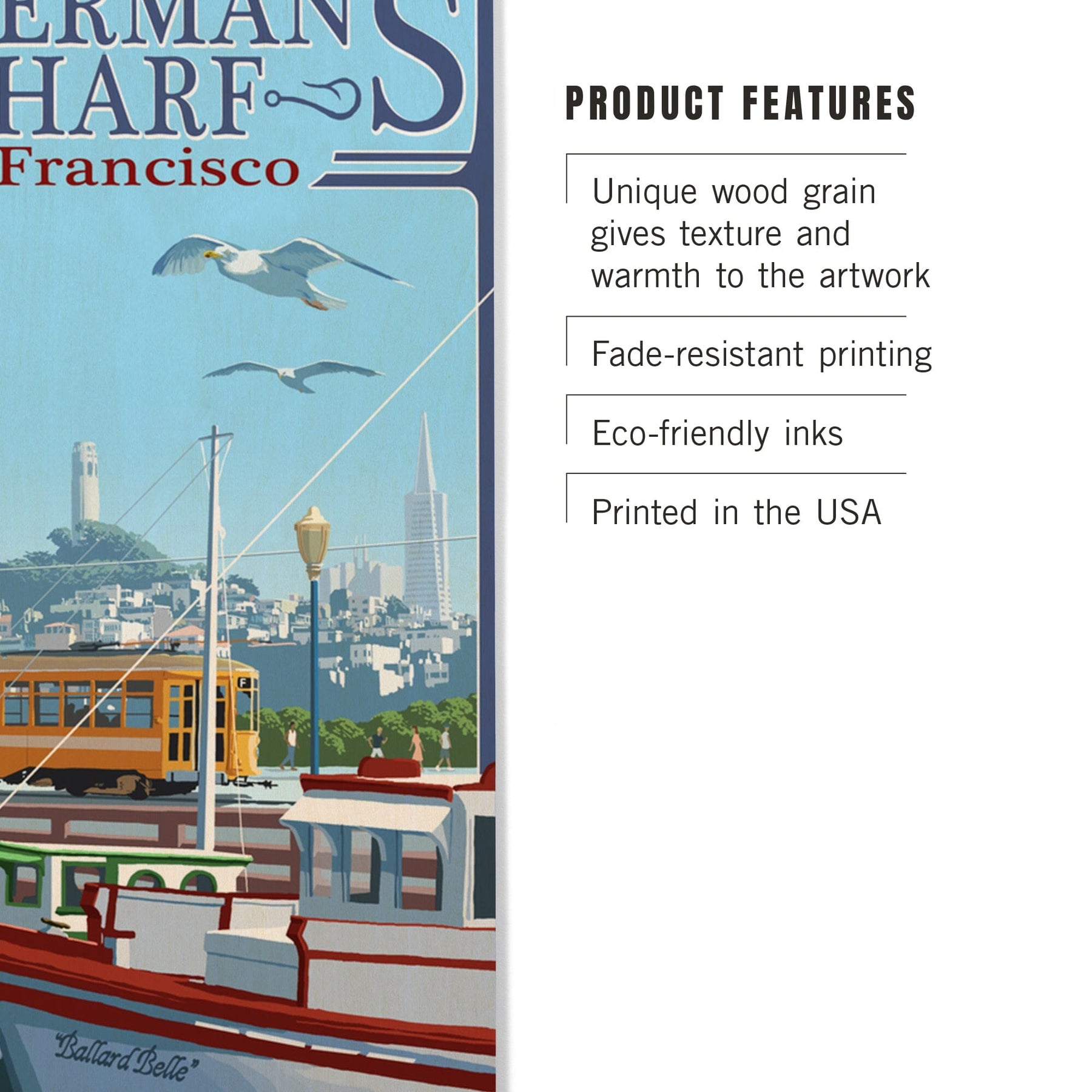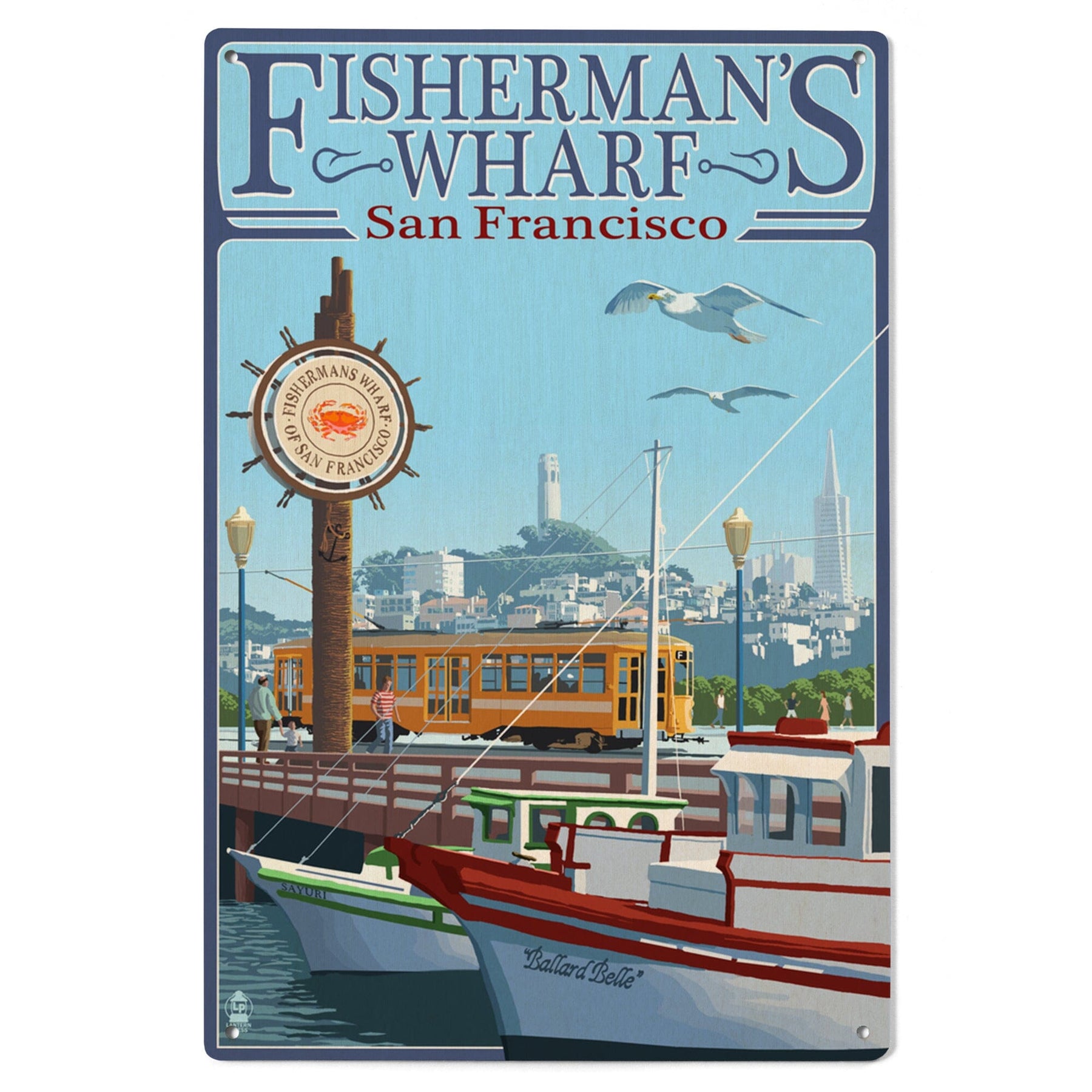 San Francisco, California, Fisherman's Wharf, Lantern Press Artwork, Wood Signs and Postcards Wood Lantern Press