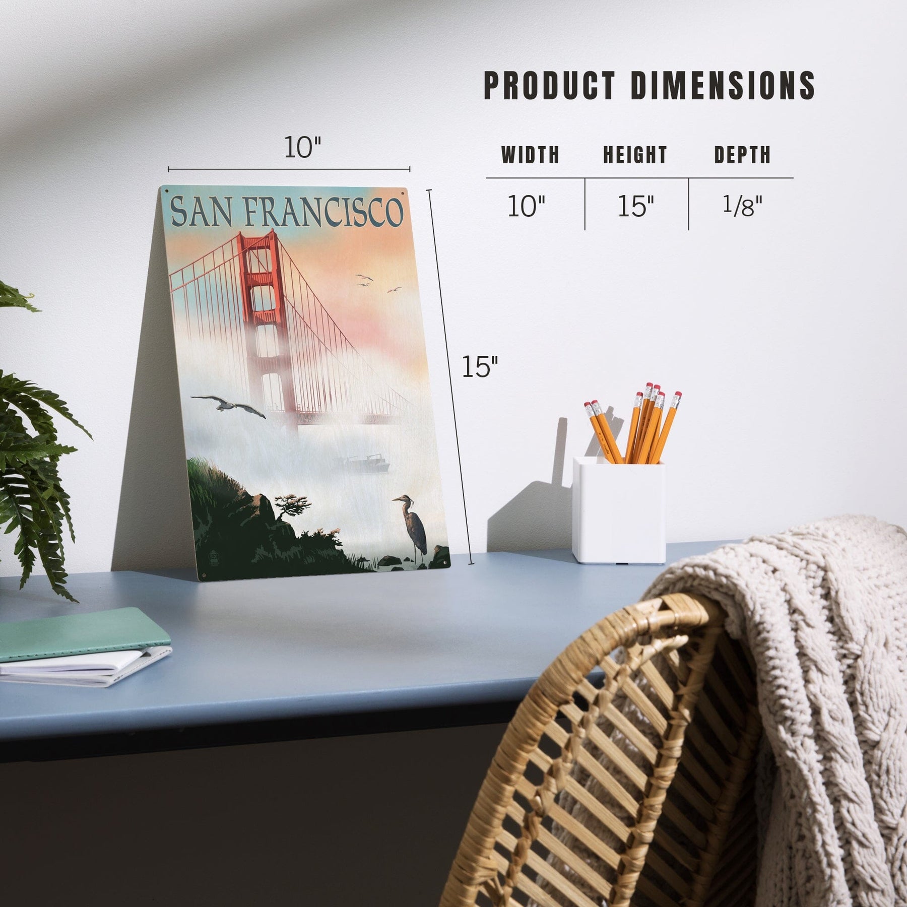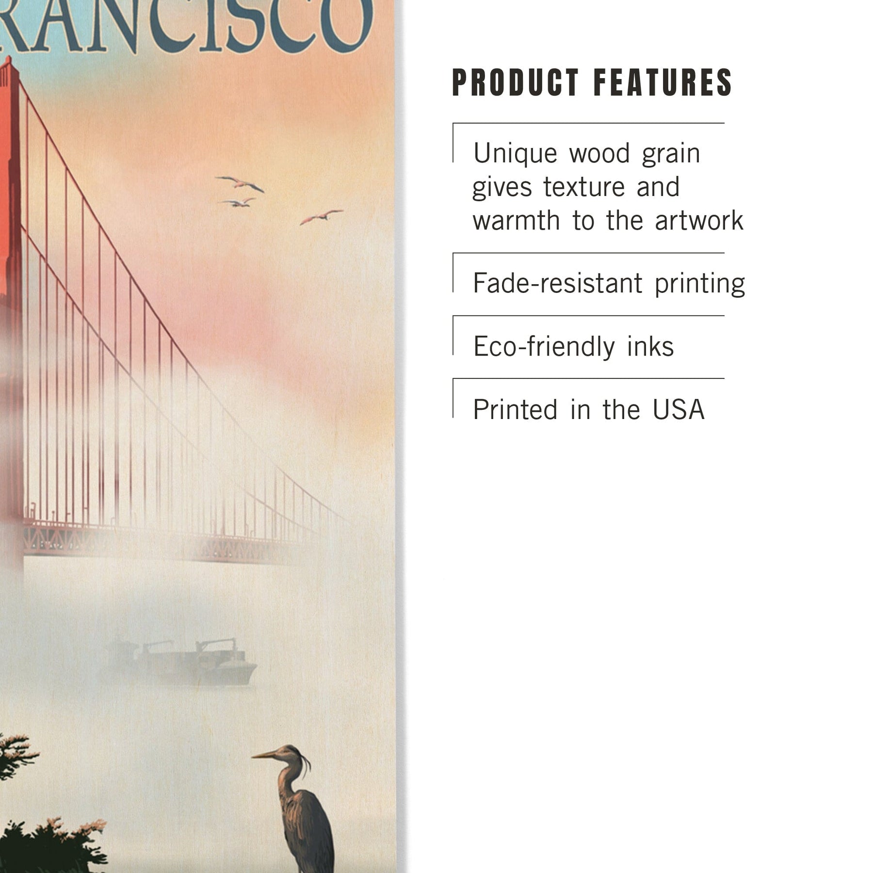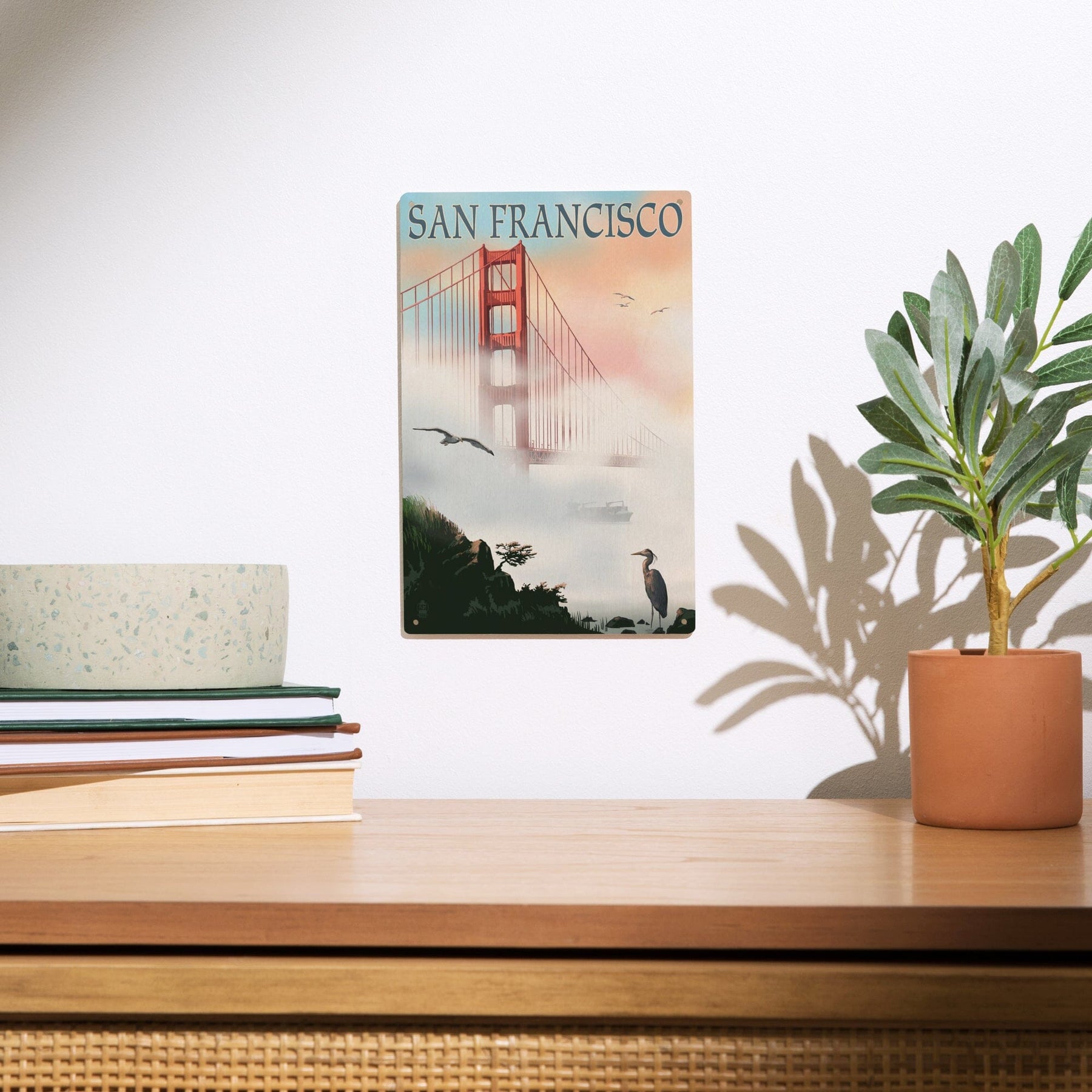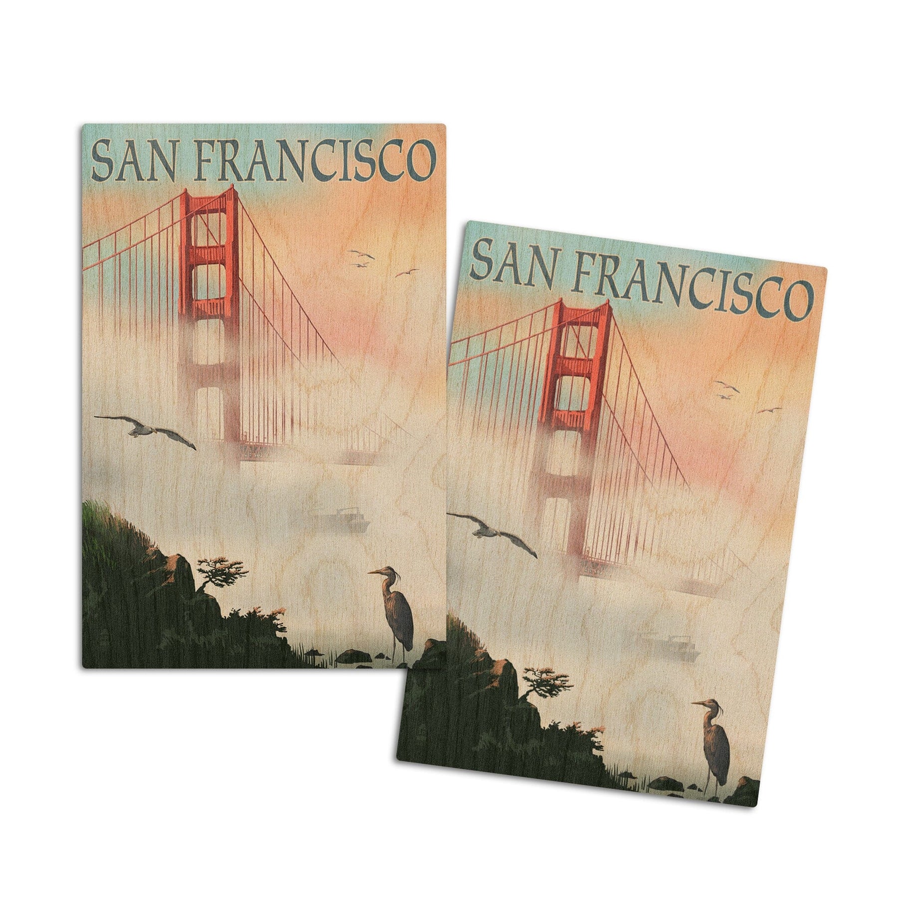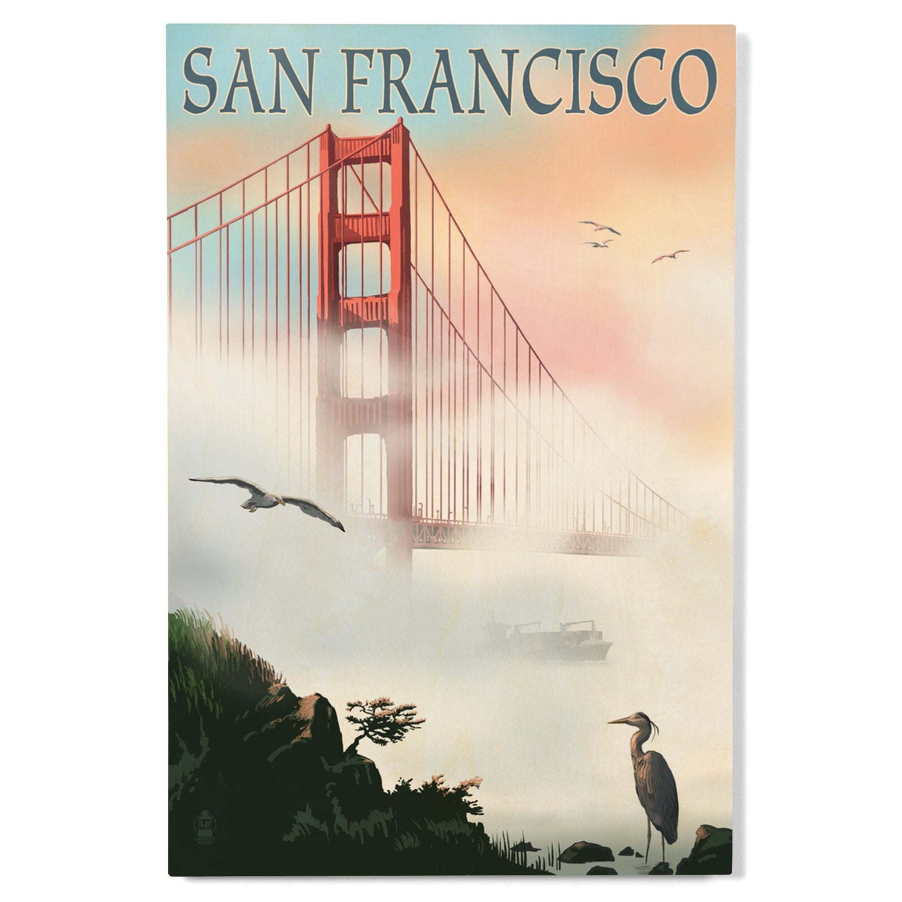 San Francisco, California, Golden Gate Bridge in Fog, Lantern Press Artwork, Wood Signs and Postcards Wood Lantern Press
