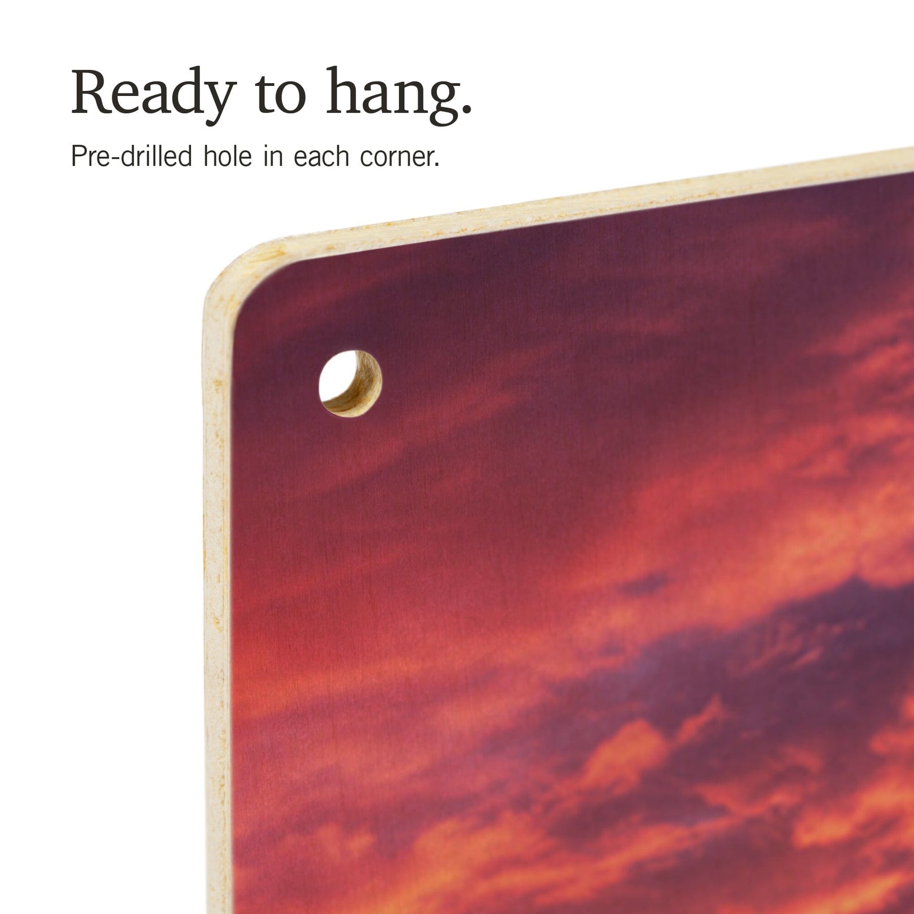 • Hole in each corner, ready to hang