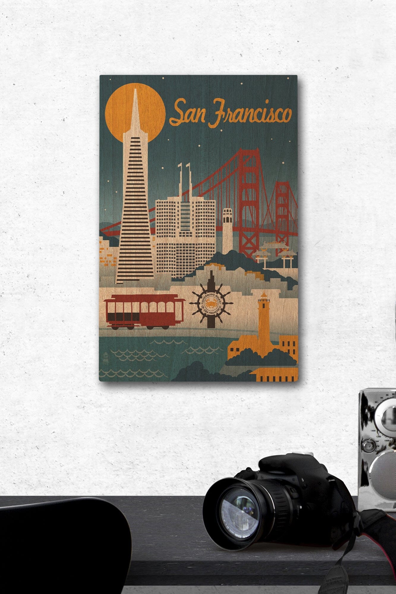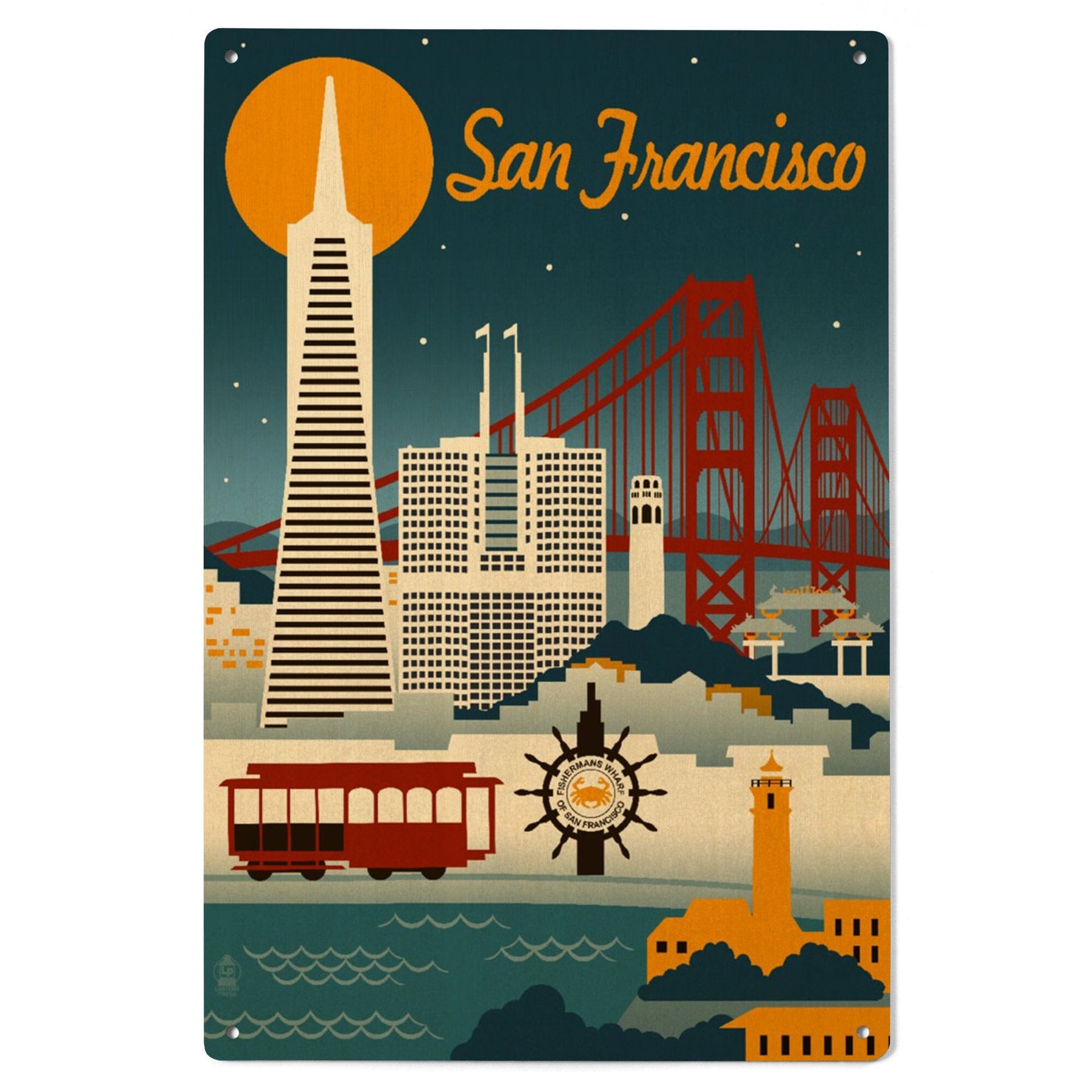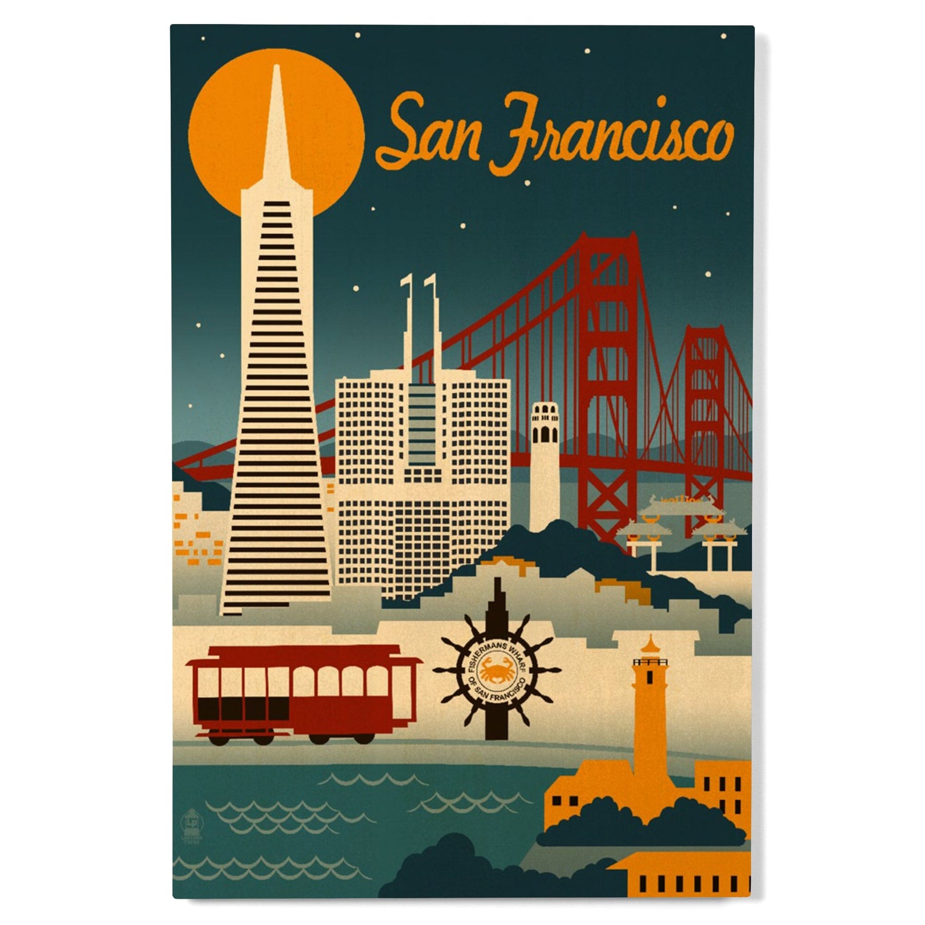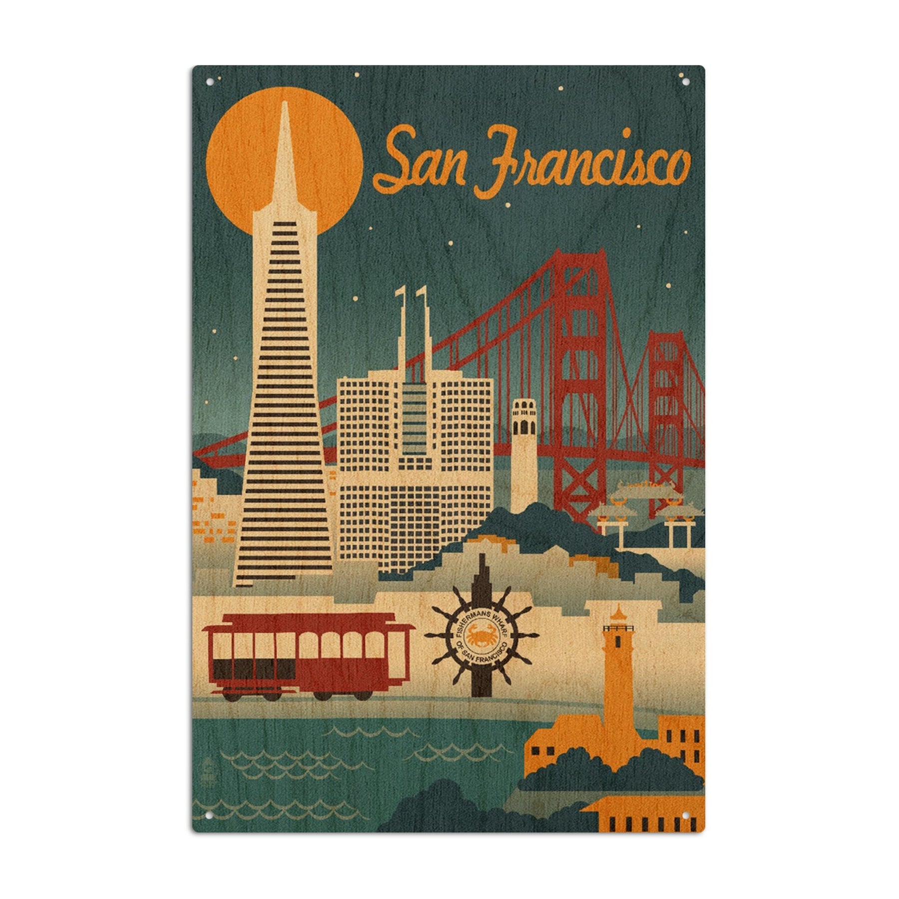 San Francisco, California, Retro Skyline, Lantern Press Artwork, Wood Signs and Postcards Wood Lantern Press