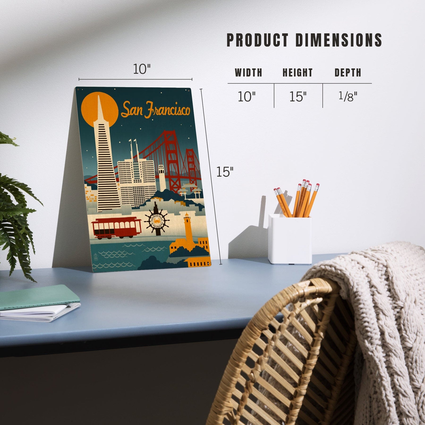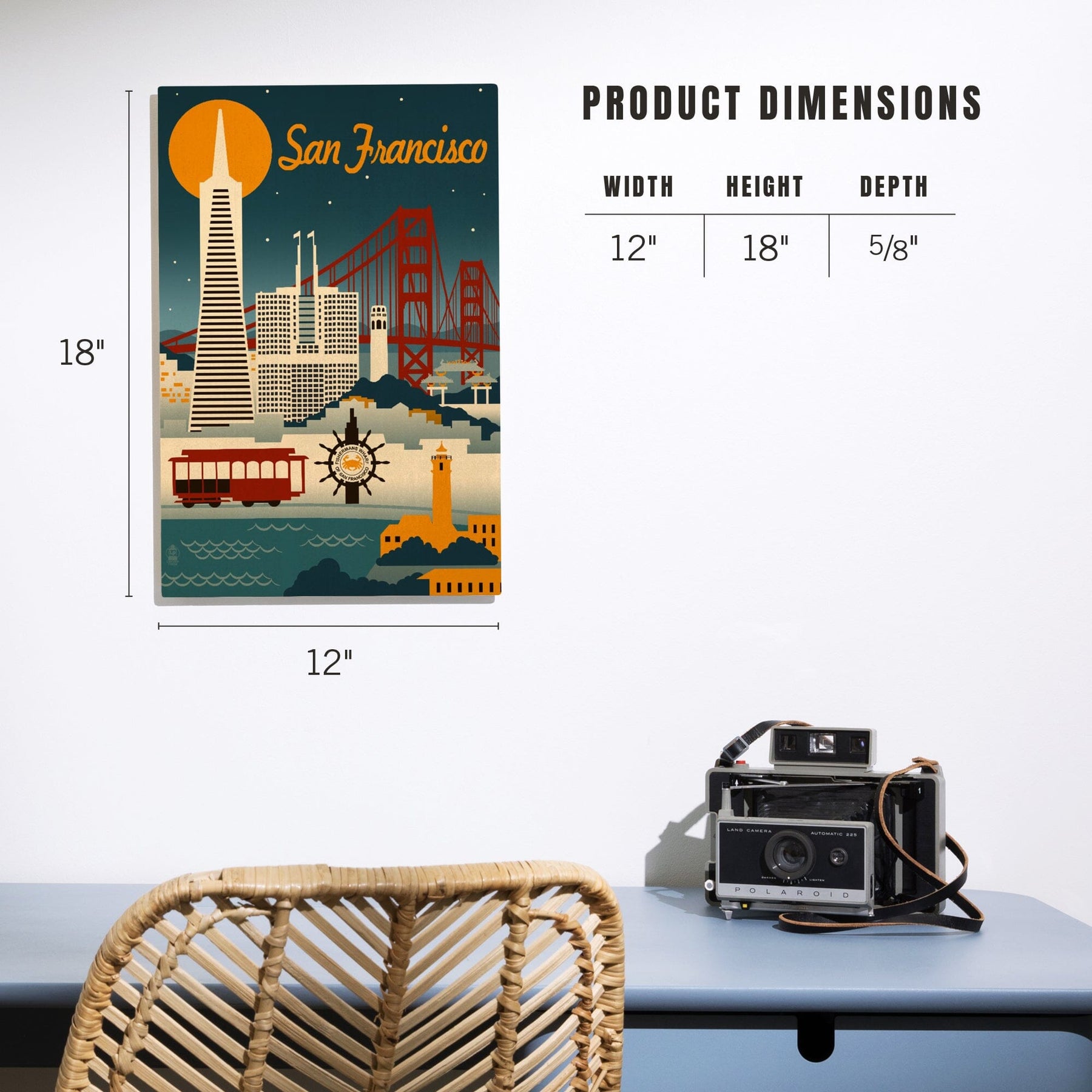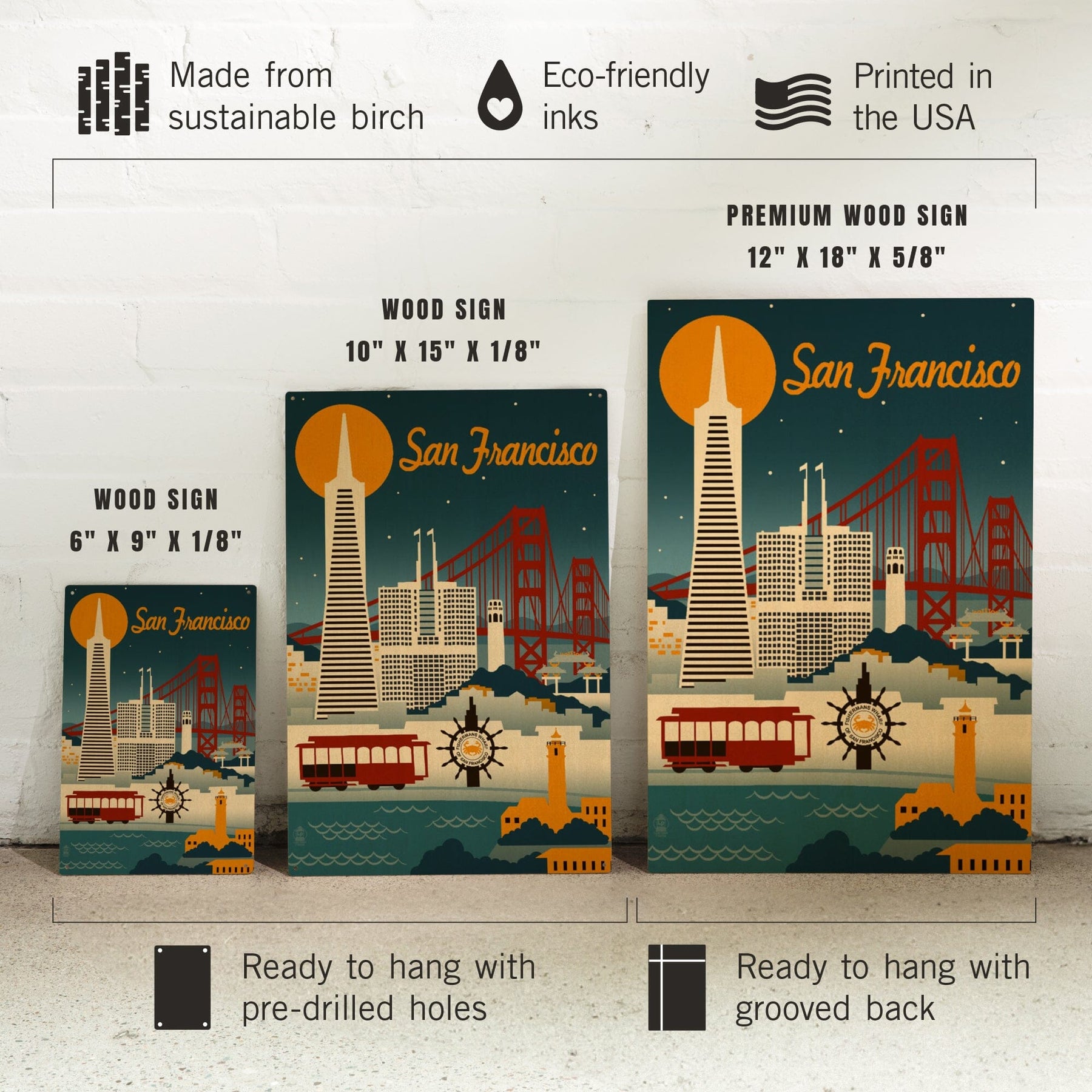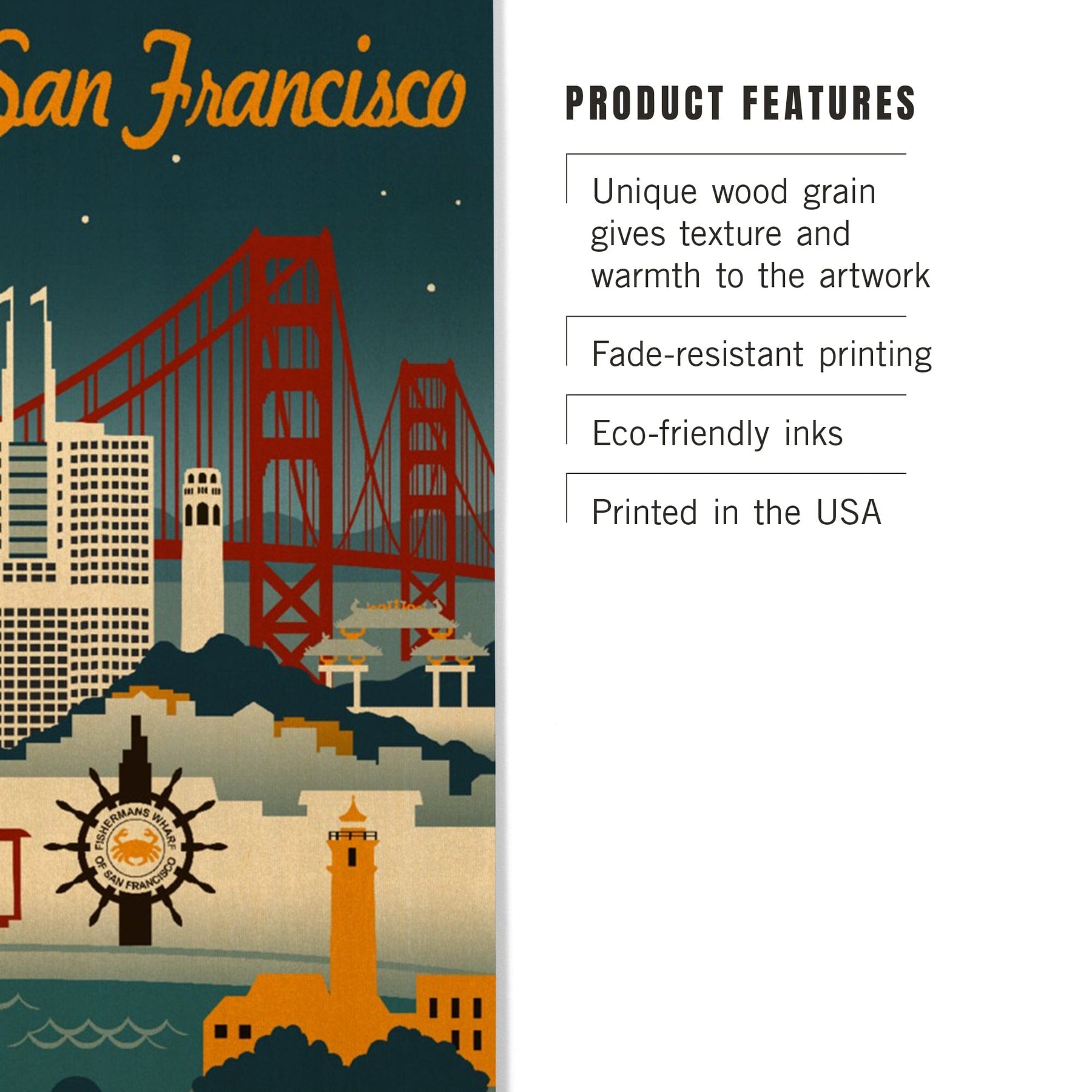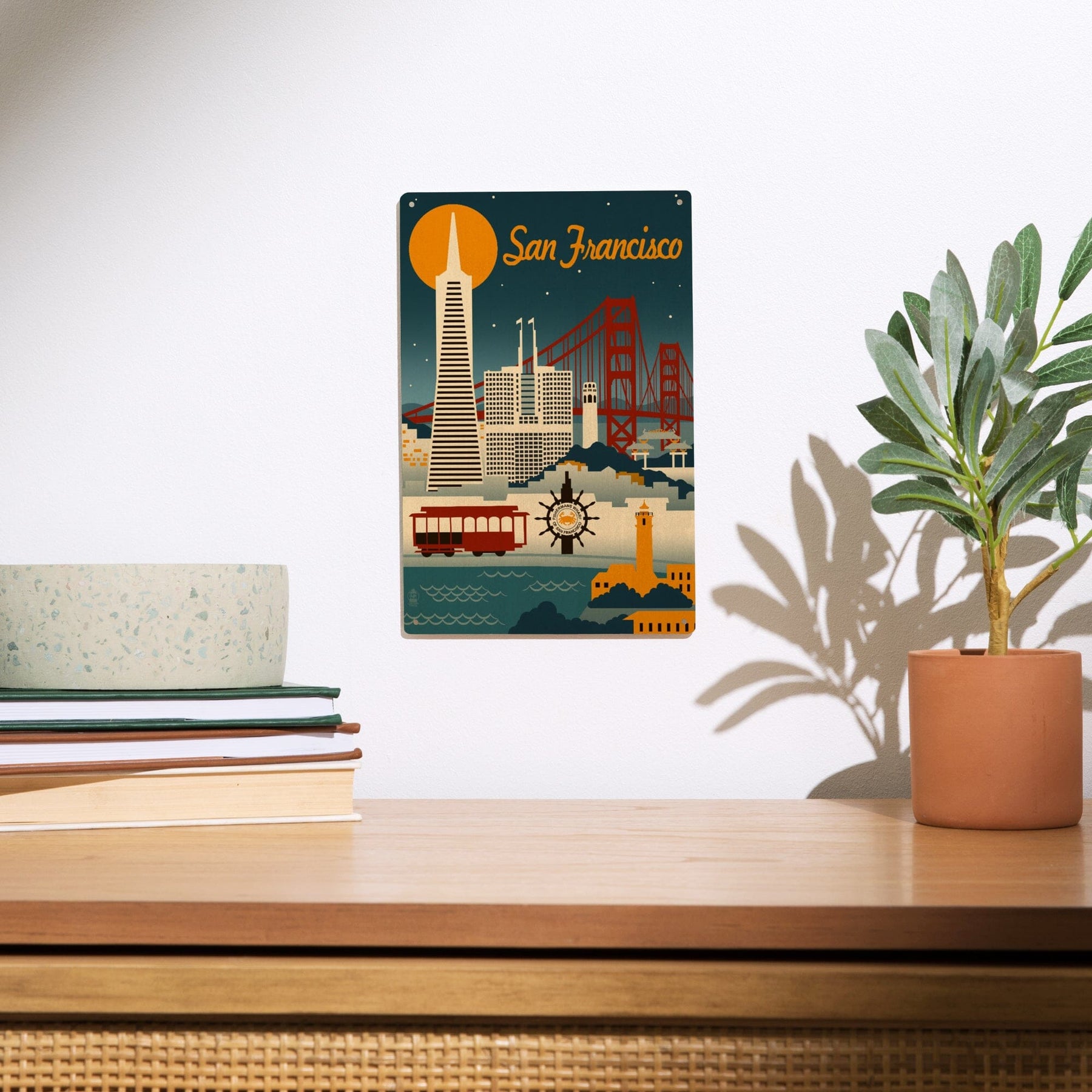 San Francisco, California, Retro Skyline, Lantern Press Artwork, Wood Signs and Postcards Wood Lantern Press