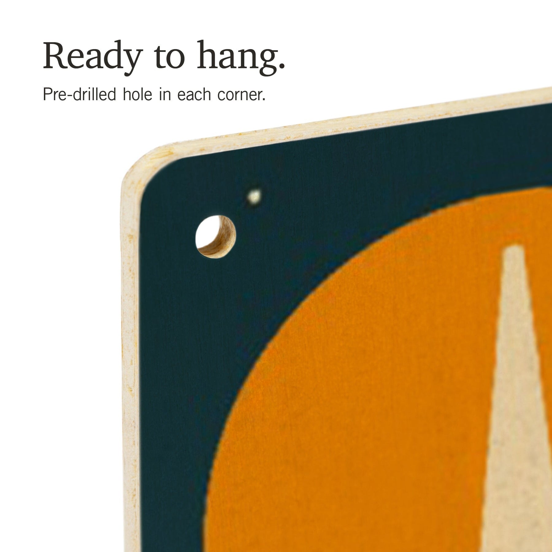 • Hole in each corner, ready to hang