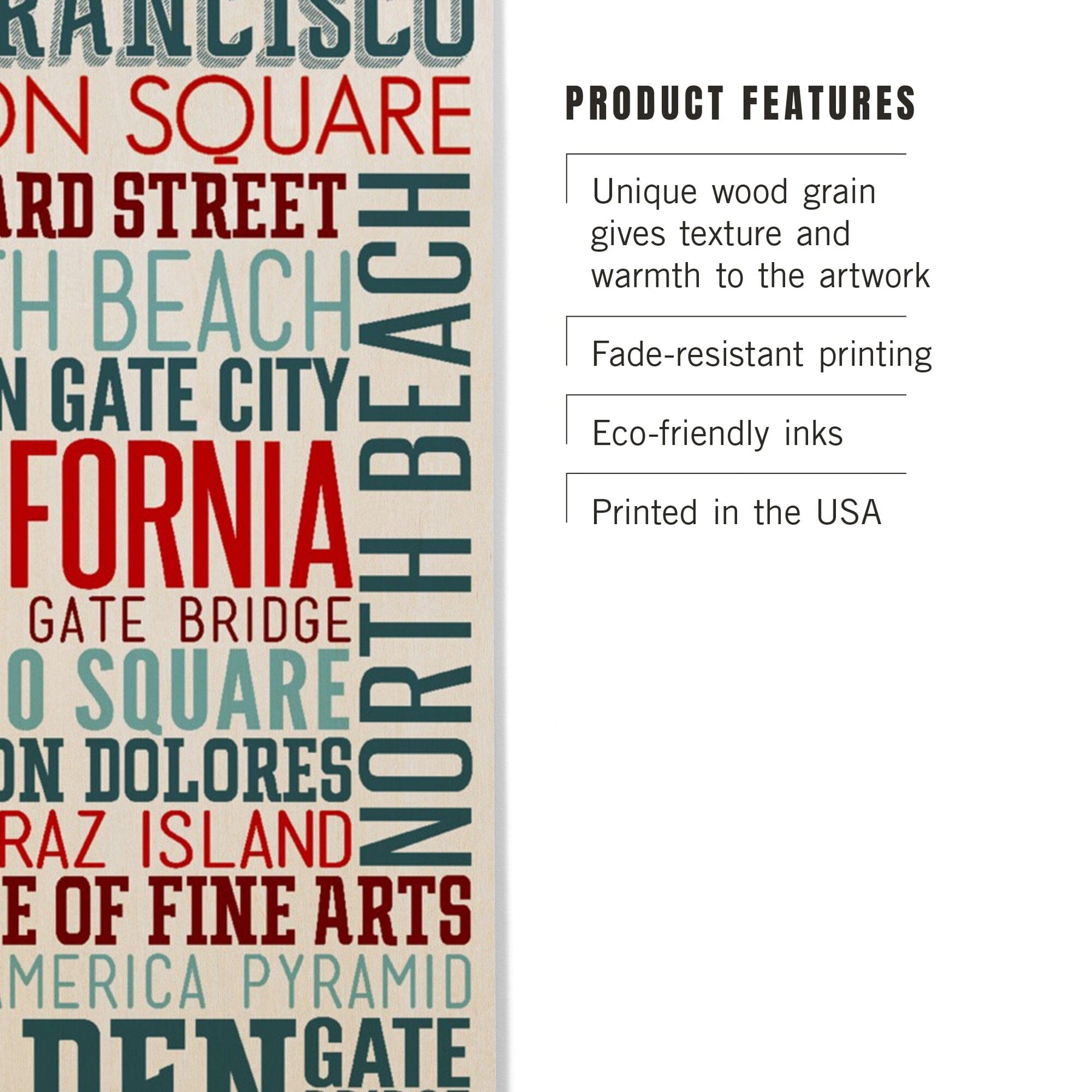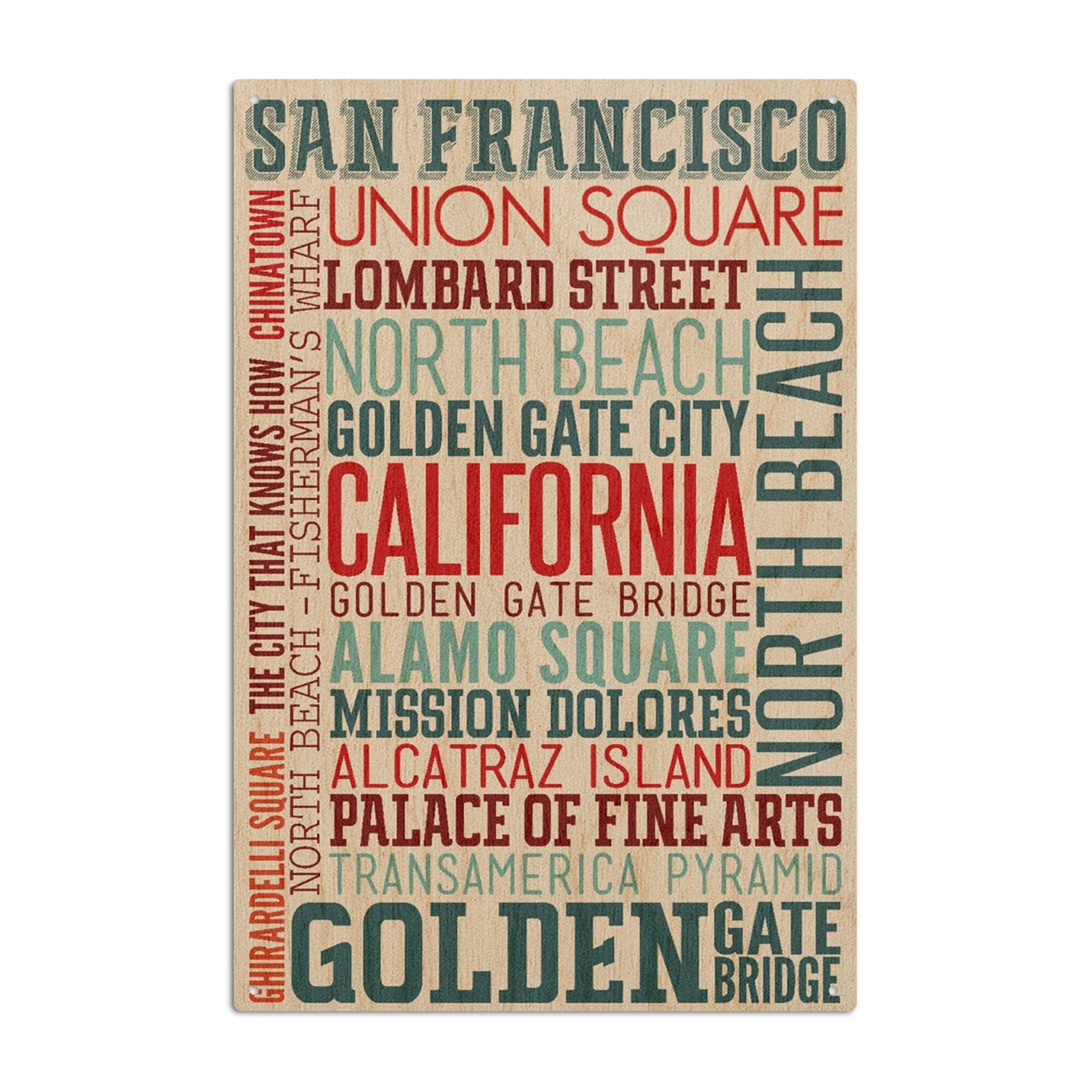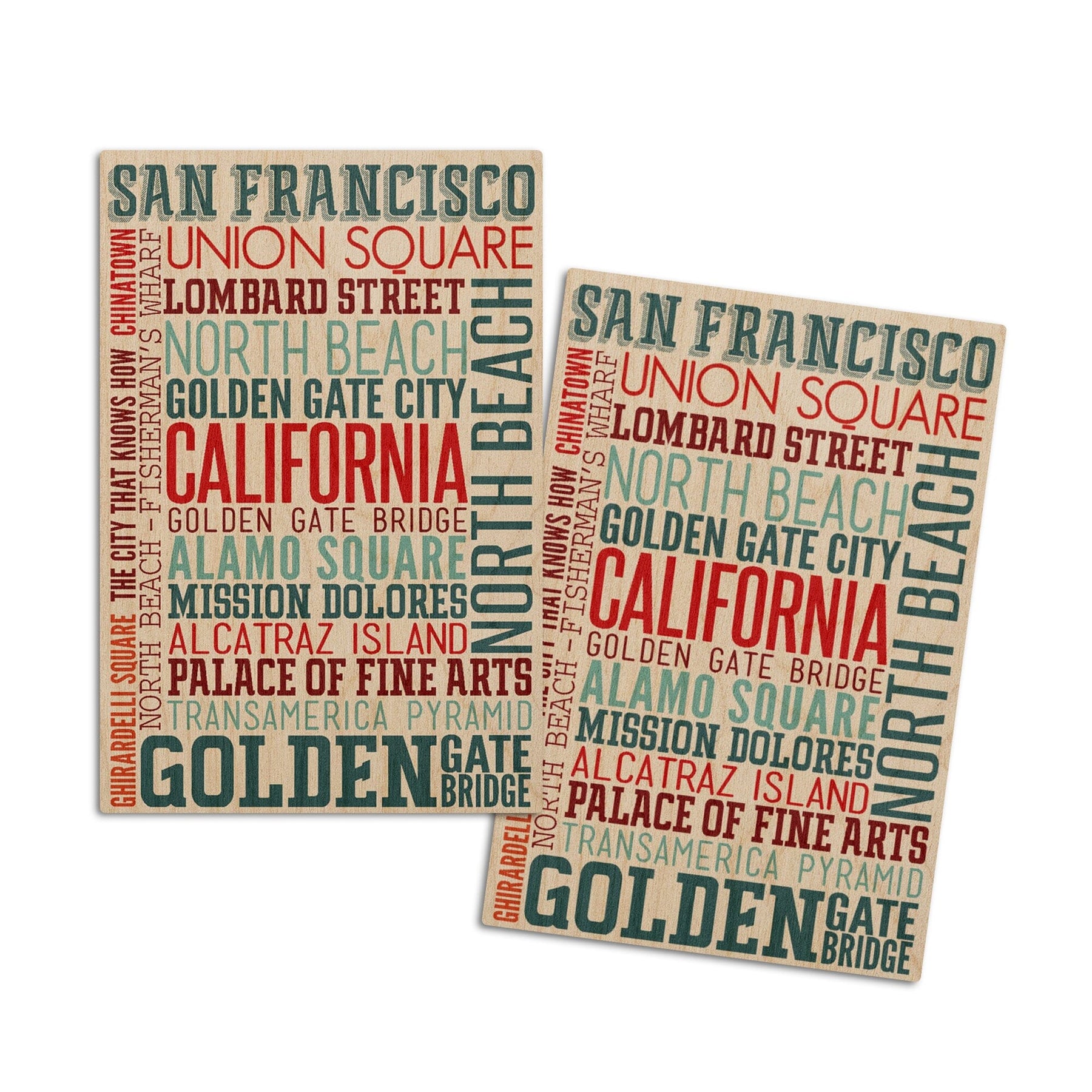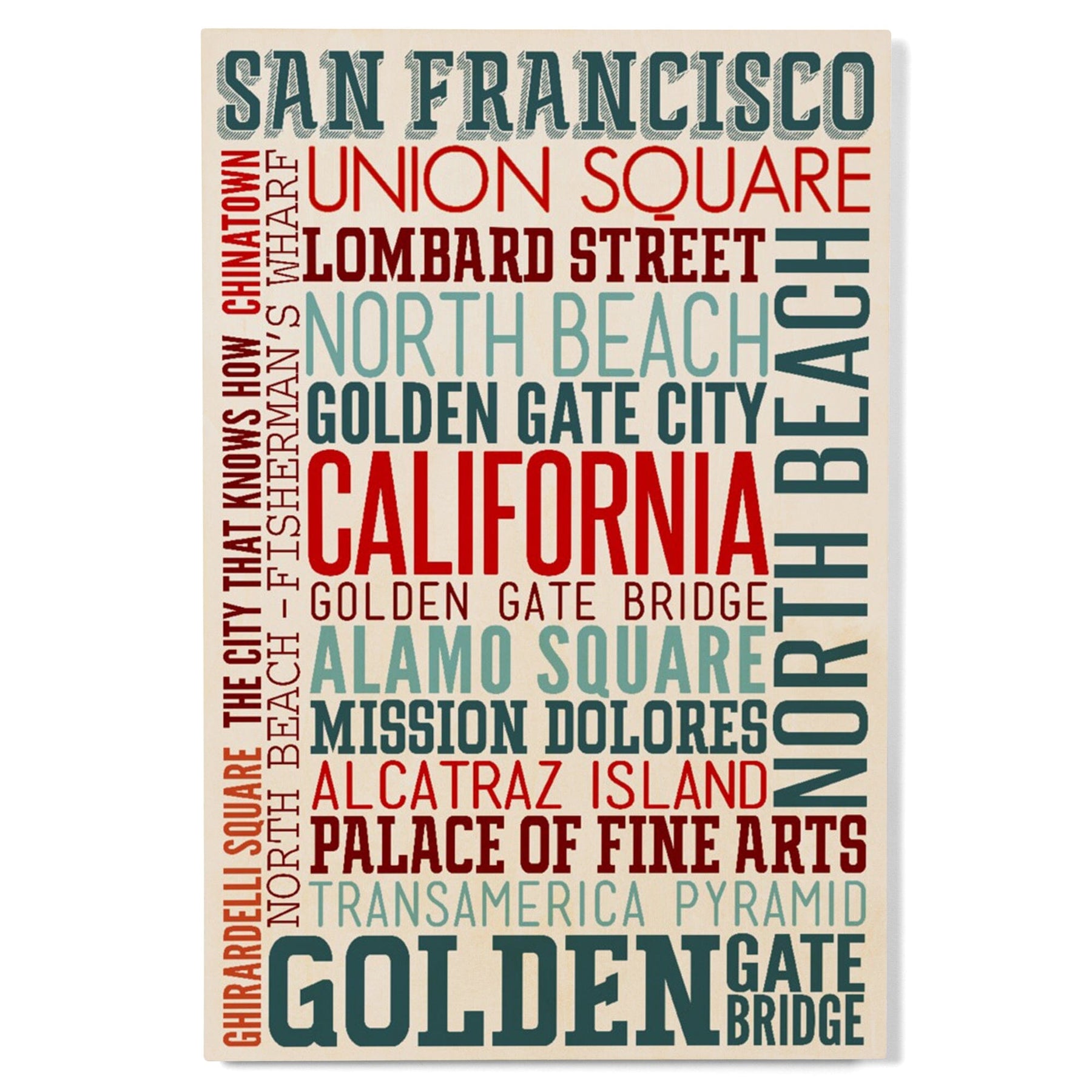 San Francisco, California, Typography, Lantern Press Artwork, Wood Signs and Postcards Wood Lantern Press