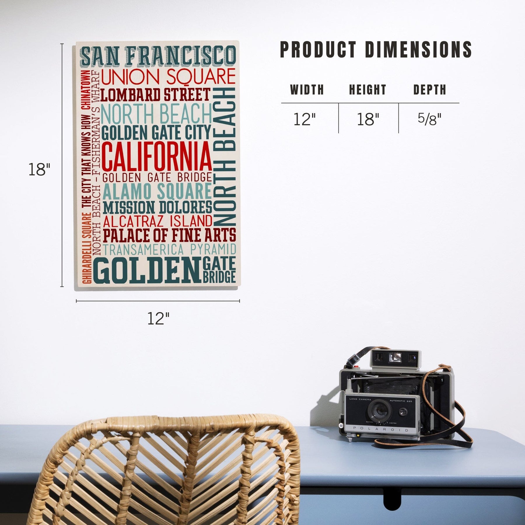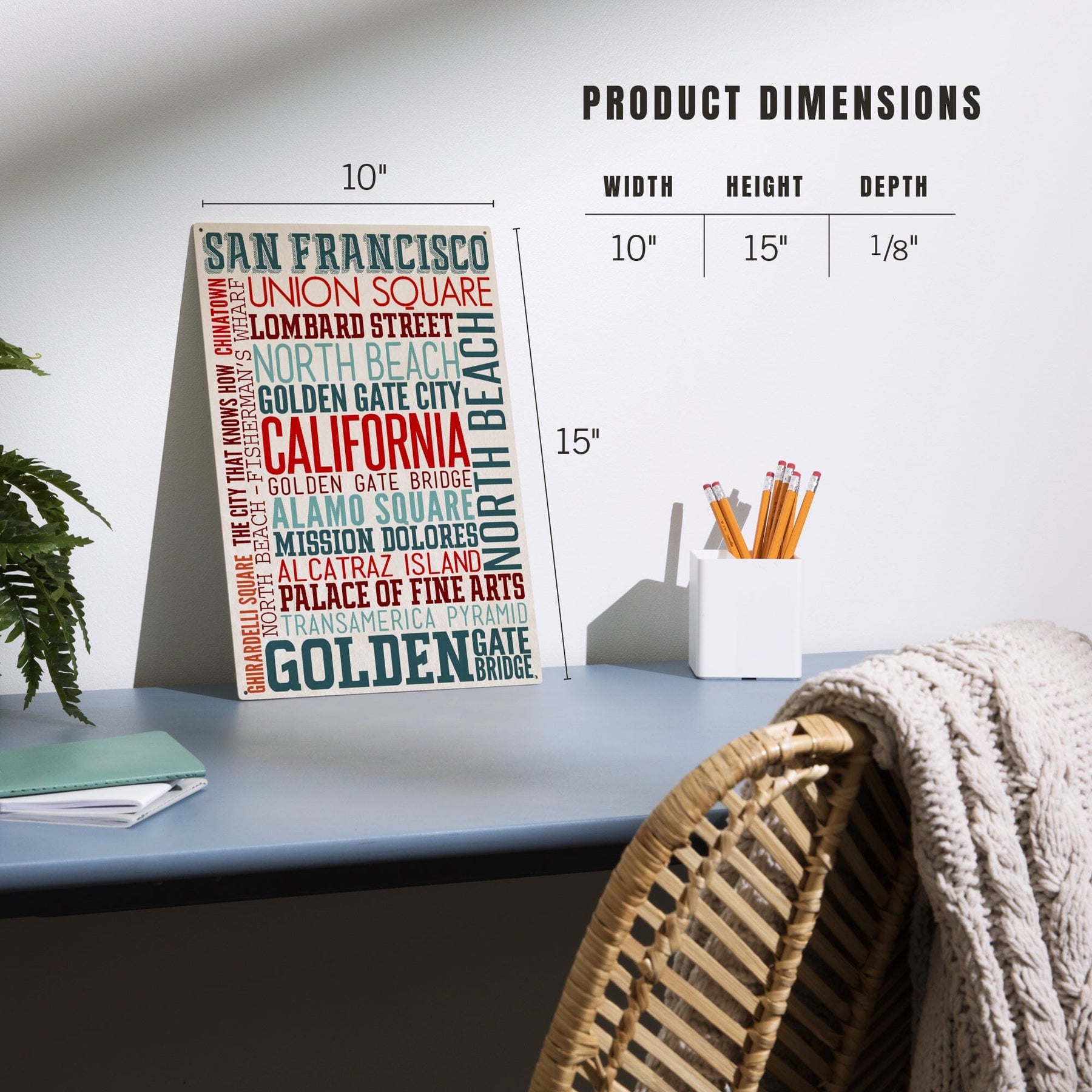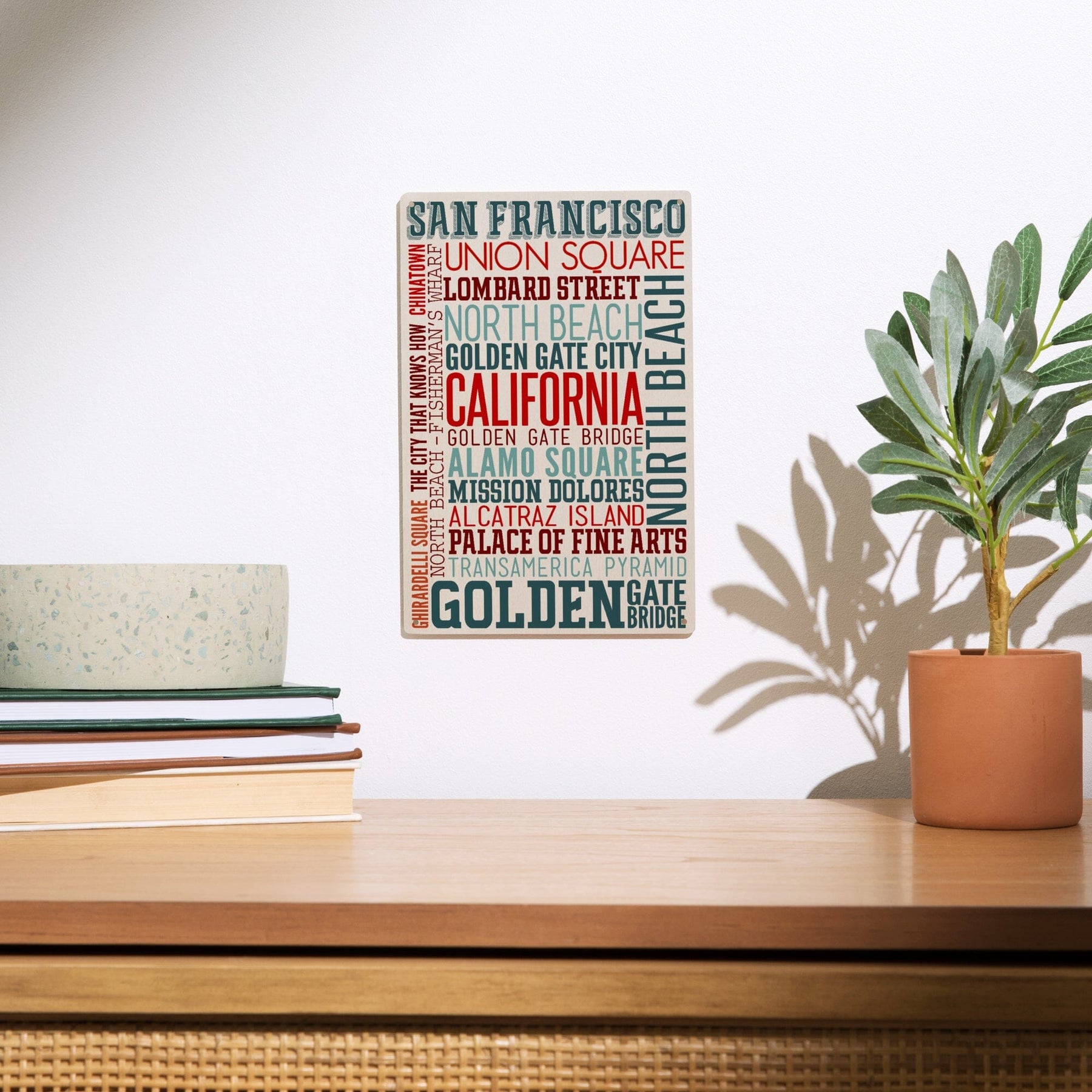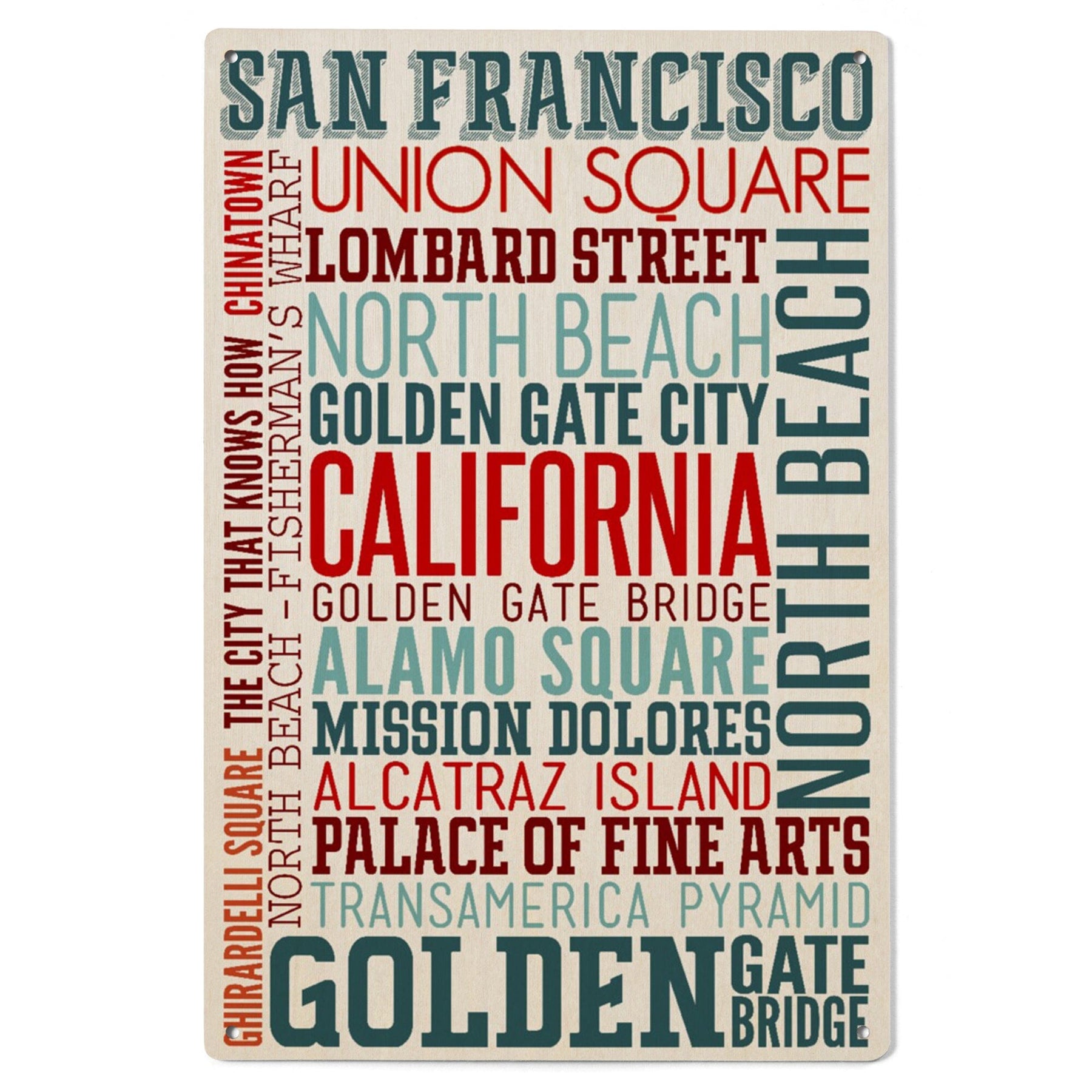 San Francisco, California, Typography, Lantern Press Artwork, Wood Signs and Postcards Wood Lantern Press