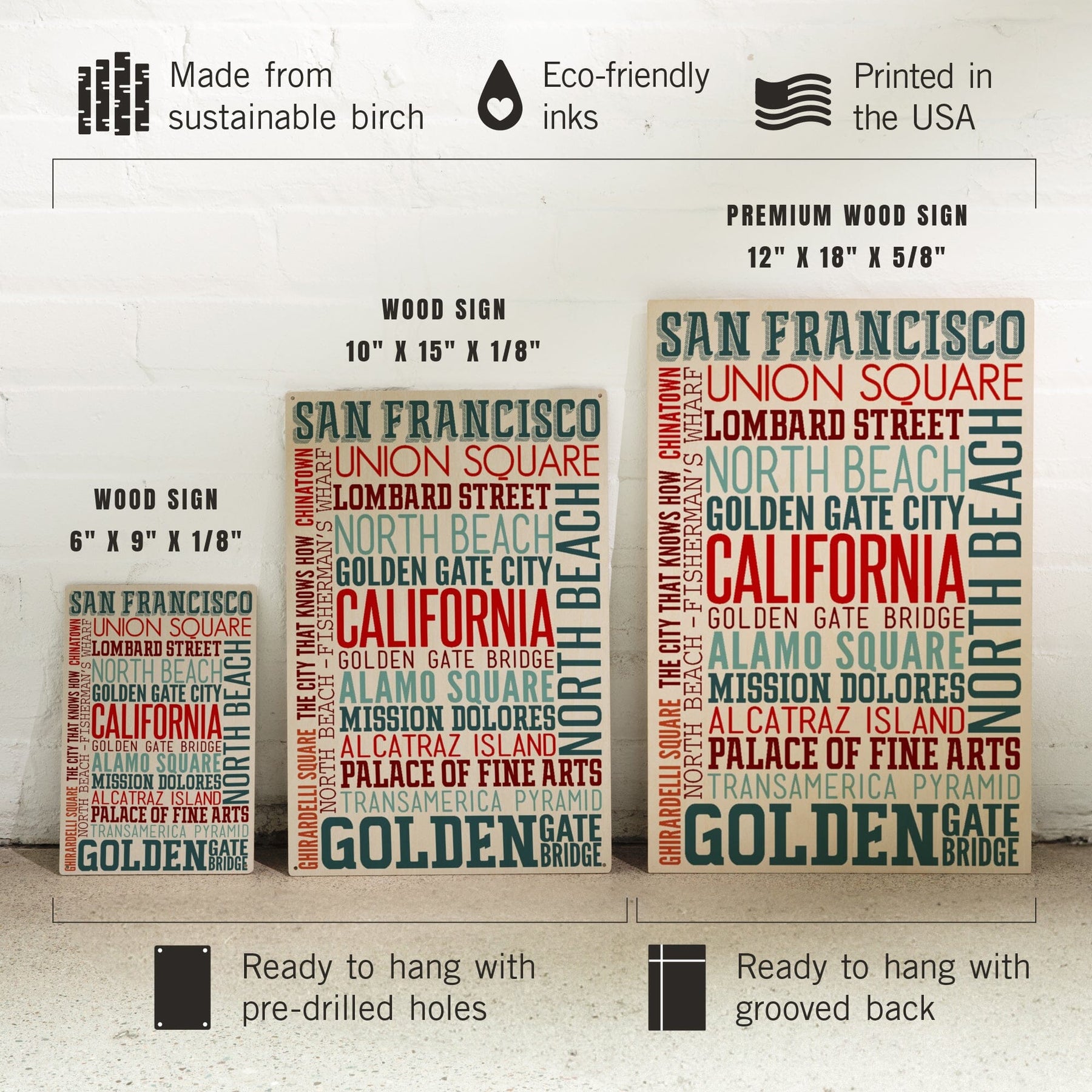 San Francisco, California, Typography, Lantern Press Artwork, Wood Signs and Postcards