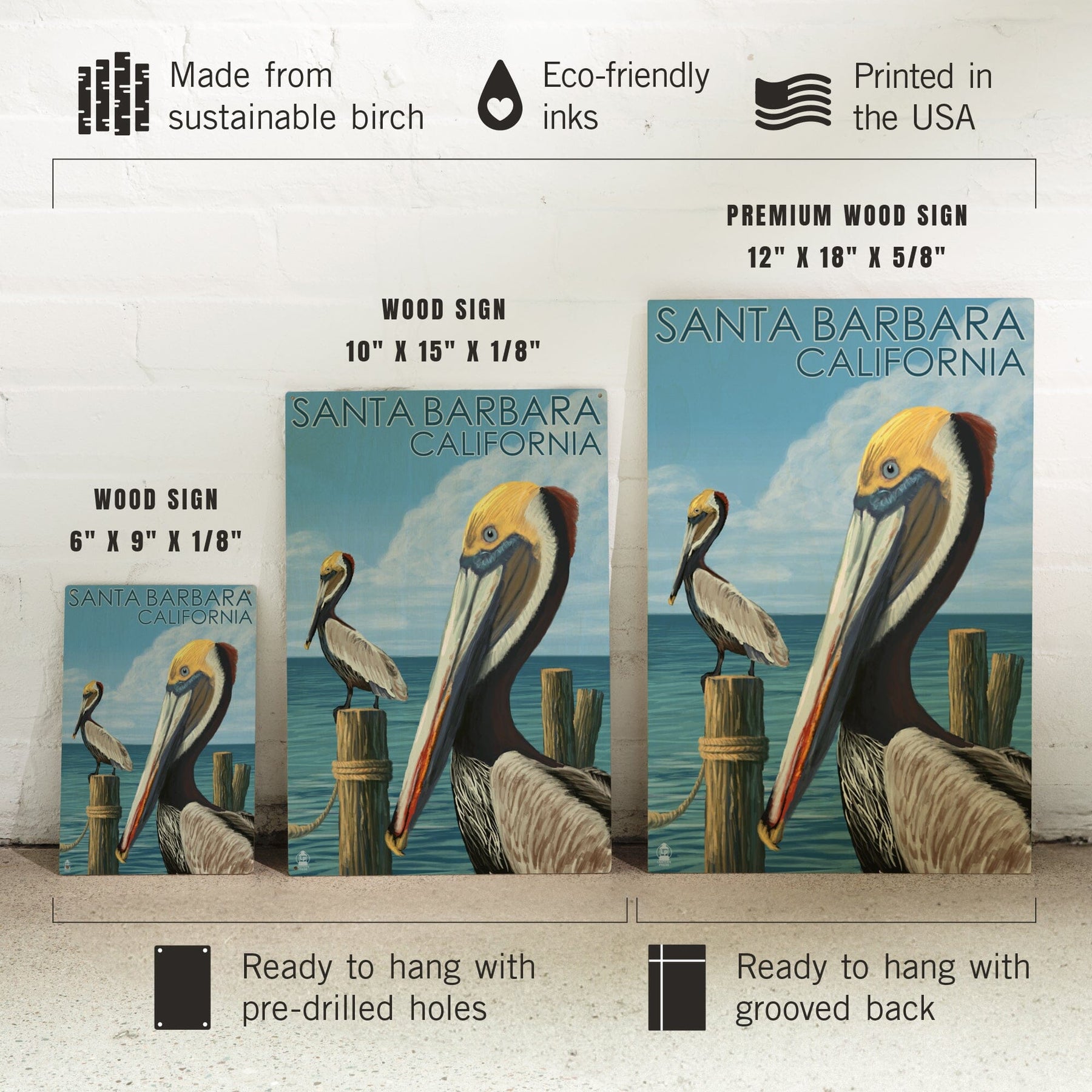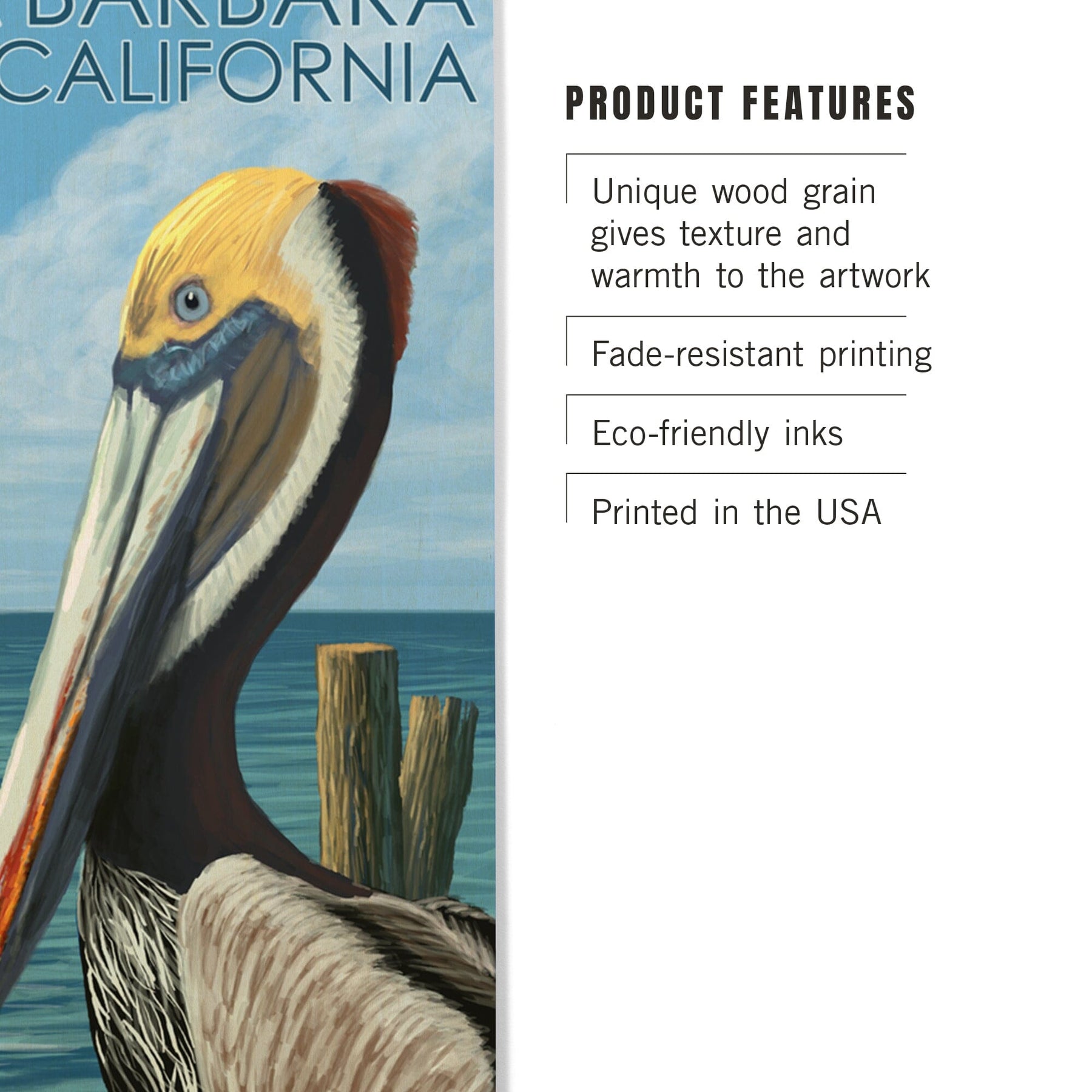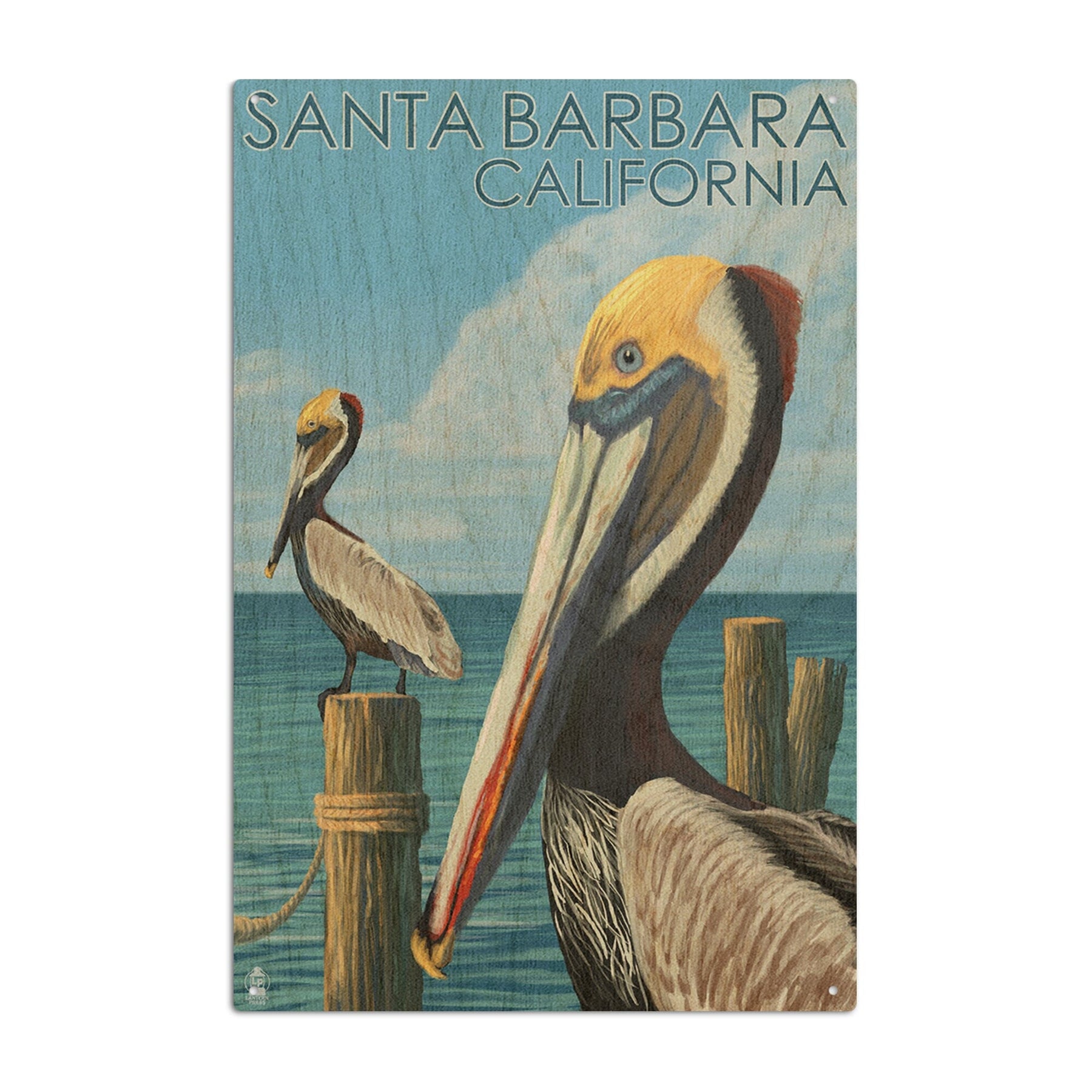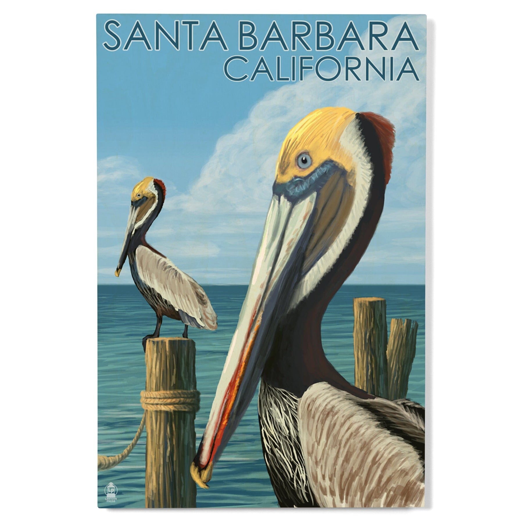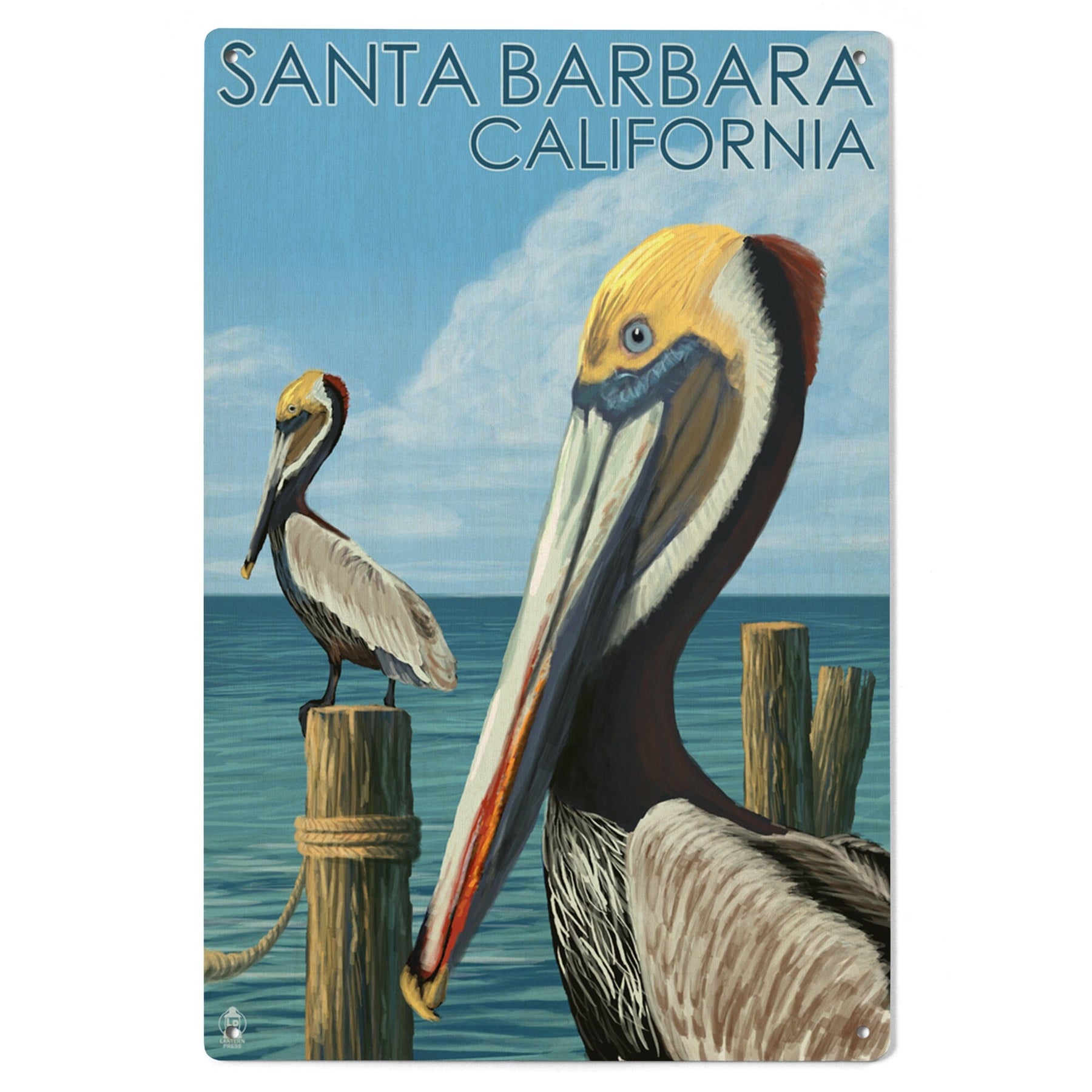 Santa Barbara, California, Pelican, Lantern Press Artwork, Wood Signs and Postcards
