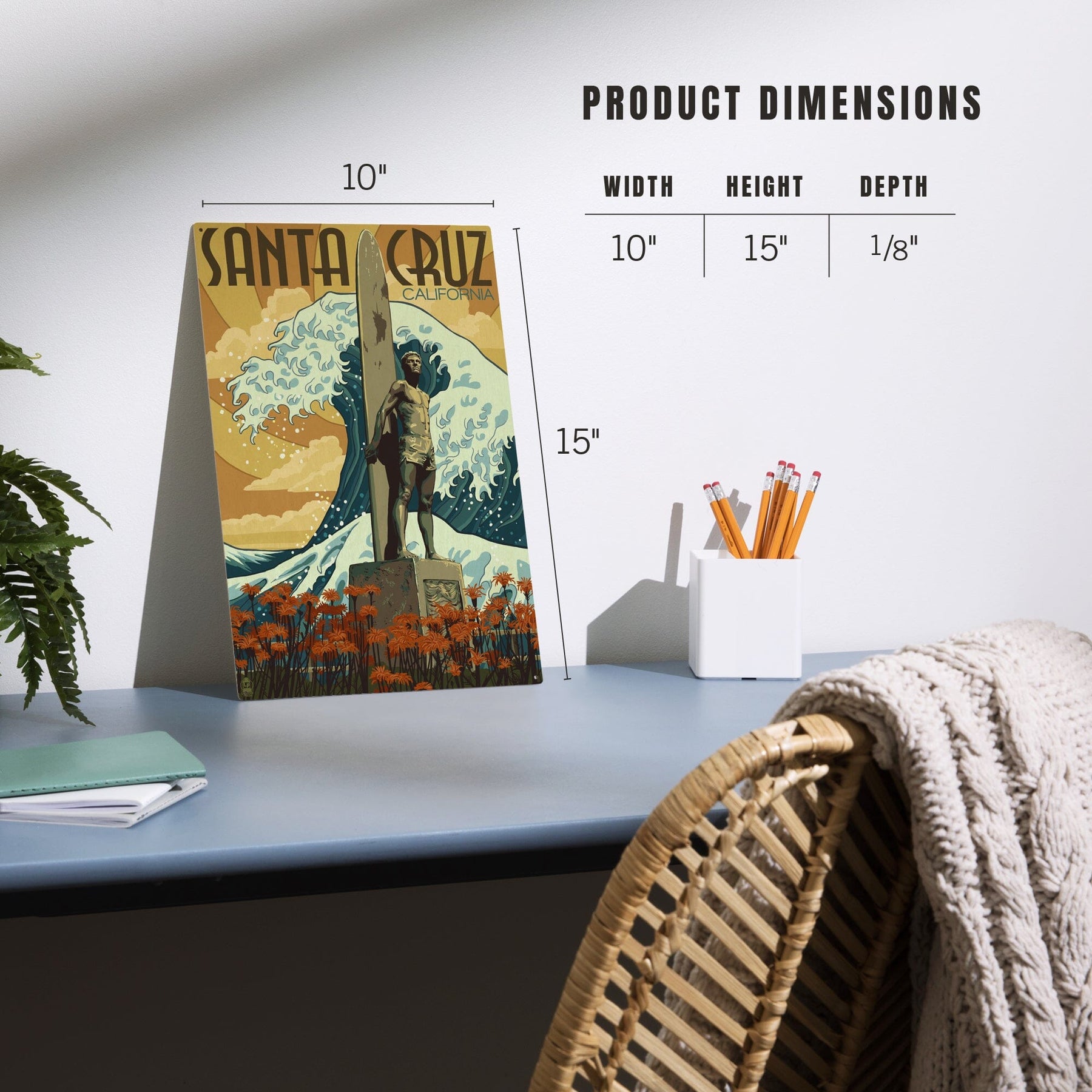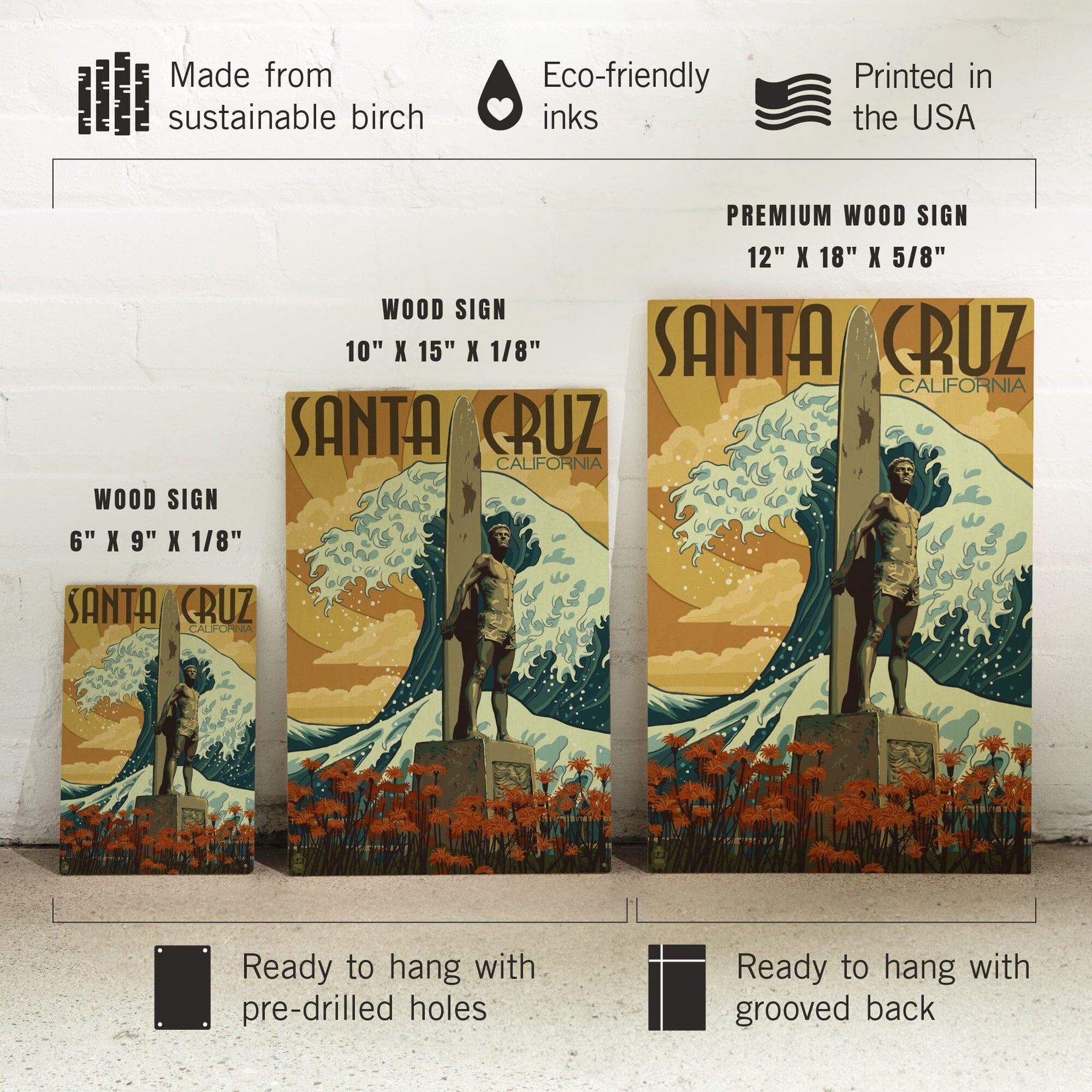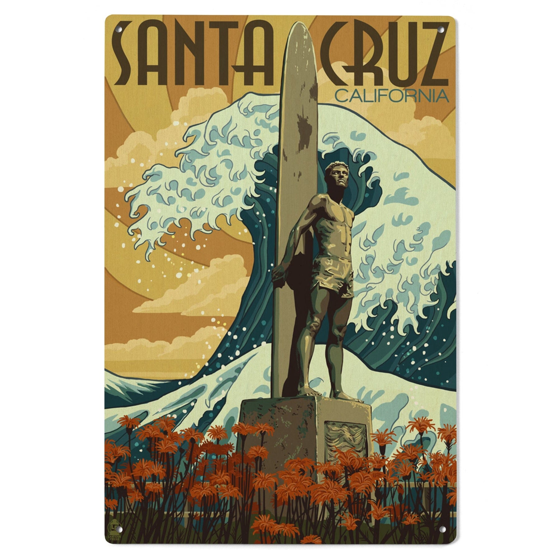 Santa Cruz, California, Surfer Statue, Lantern Press Artwork, Wood Signs and Postcards
