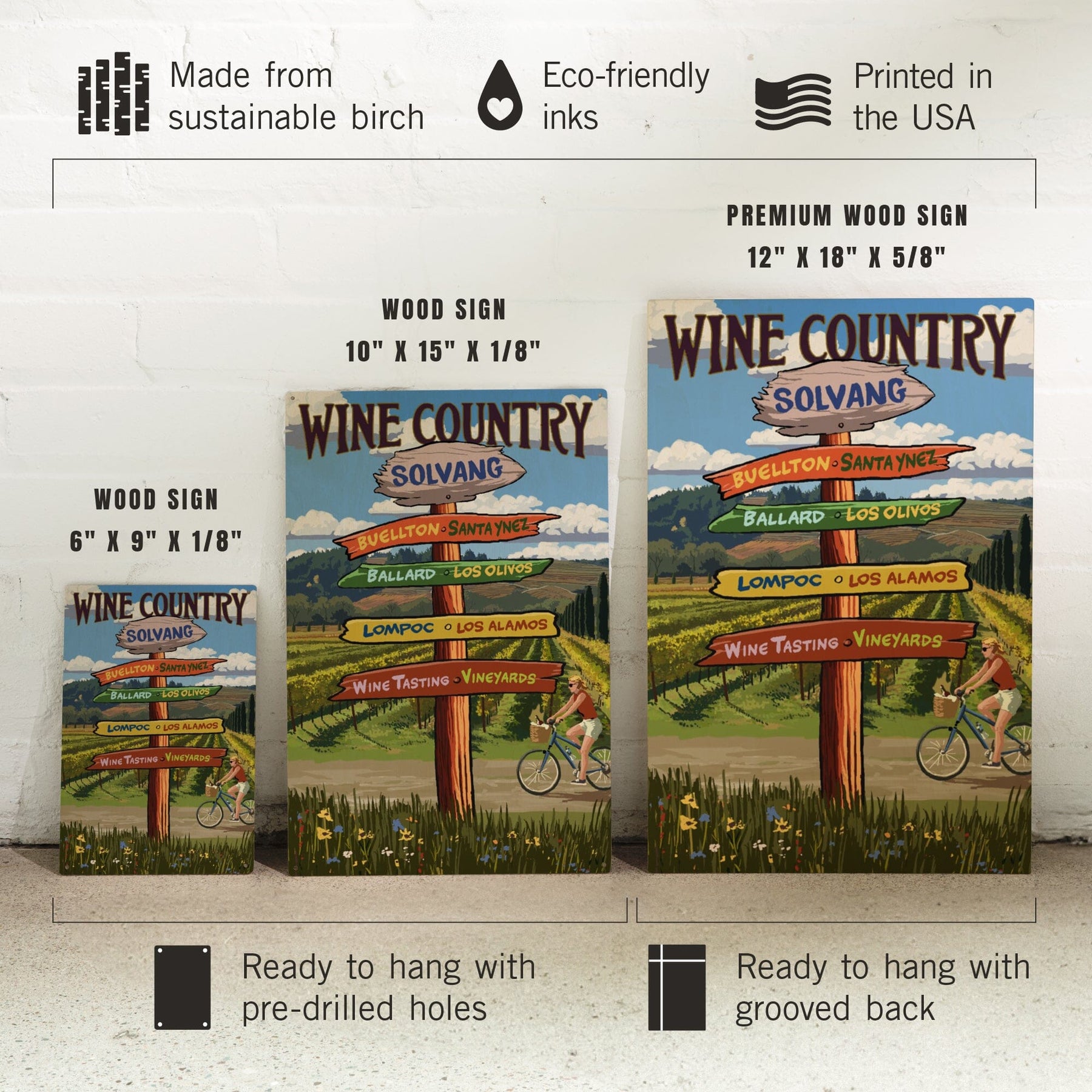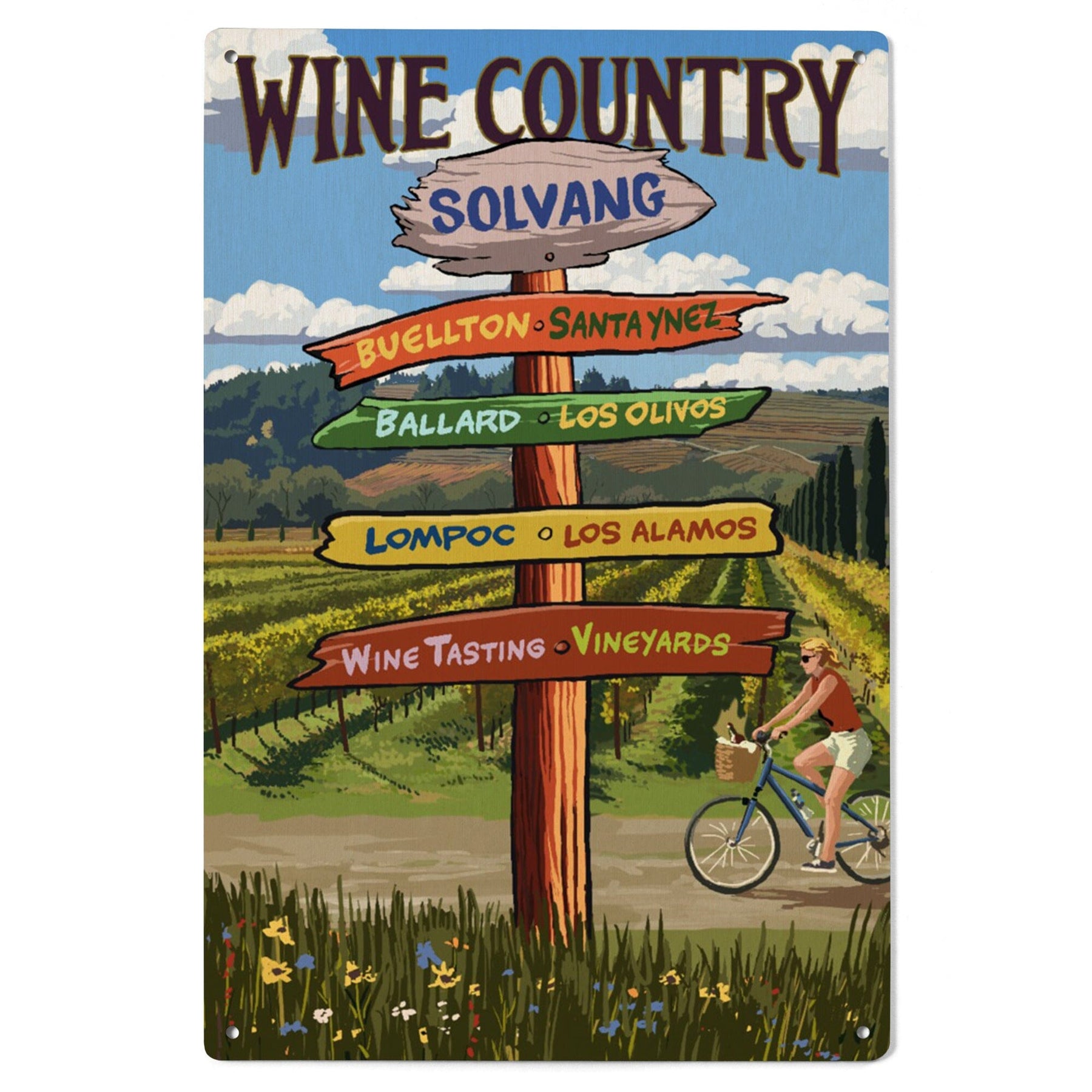 Solvang, California, Destination Signpost, Lantern Press Artwork, Wood Signs and Postcards