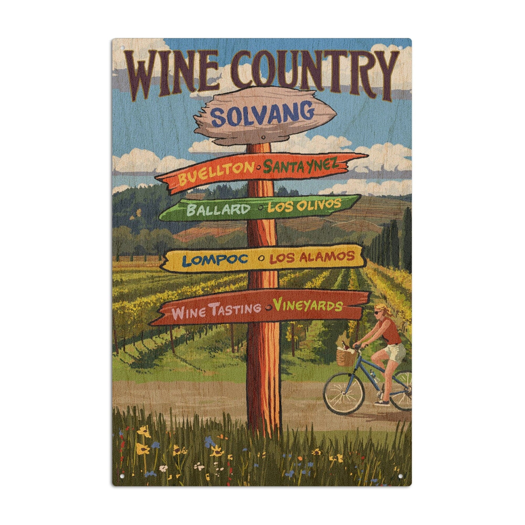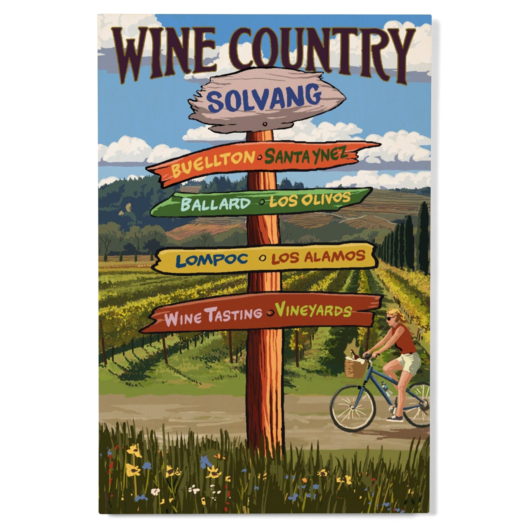Solvang, California, Destination Signpost, Lantern Press Artwork, Wood Signs and Postcards Wood Lantern Press