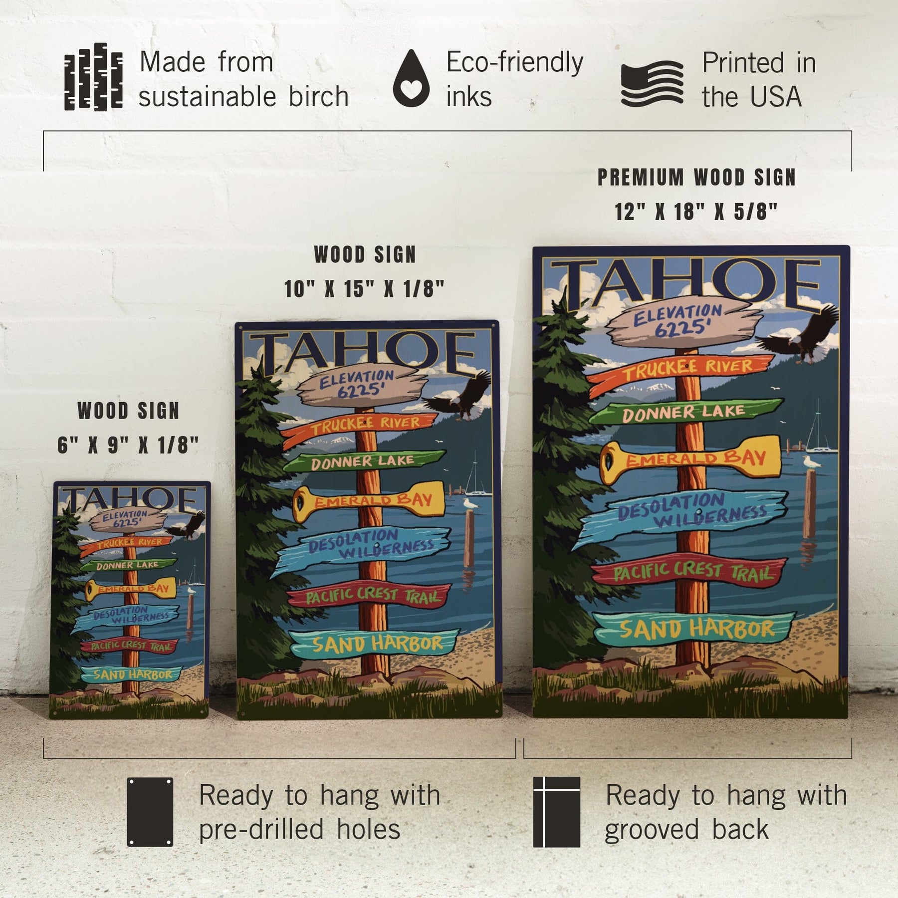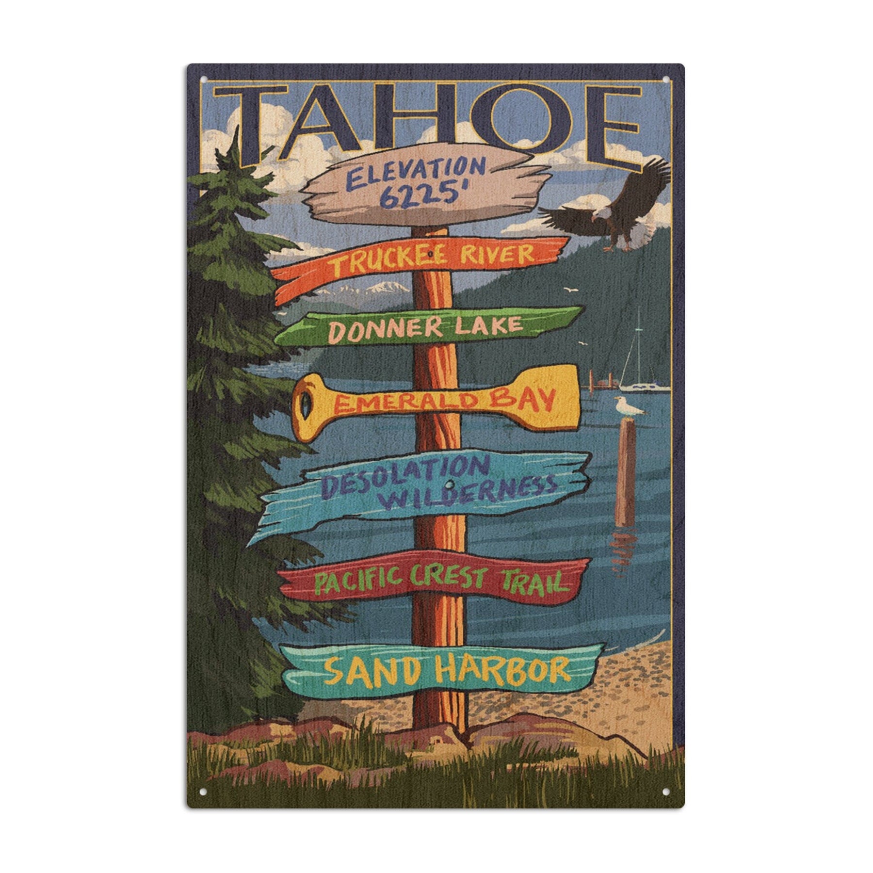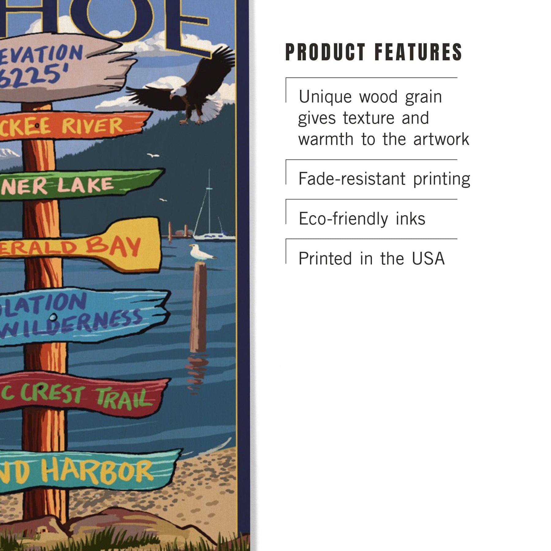 Tahoe, Destination Signpost, Lantern Press Artwork, Wood Signs and Postcards
