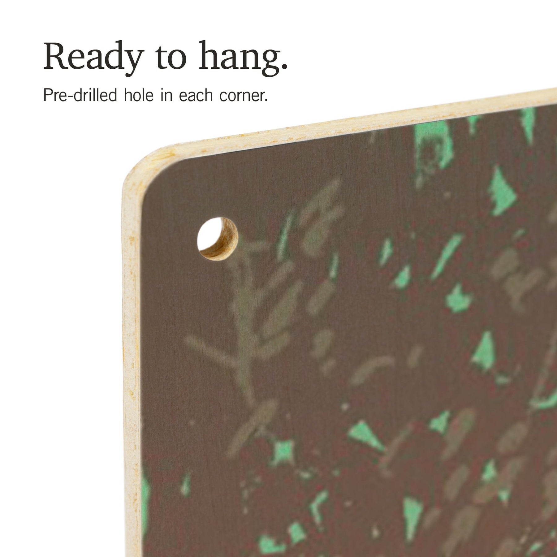 • Hole in each corner, ready to hang