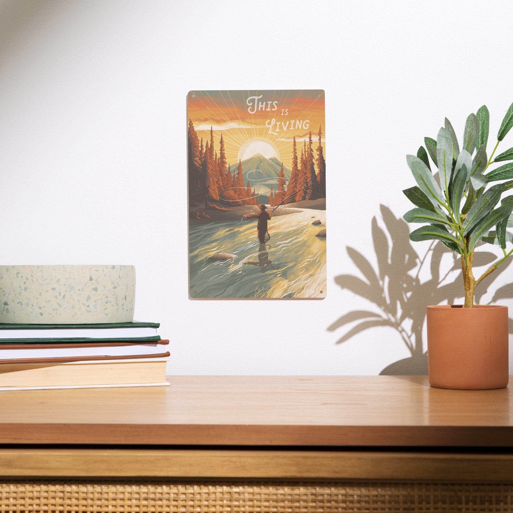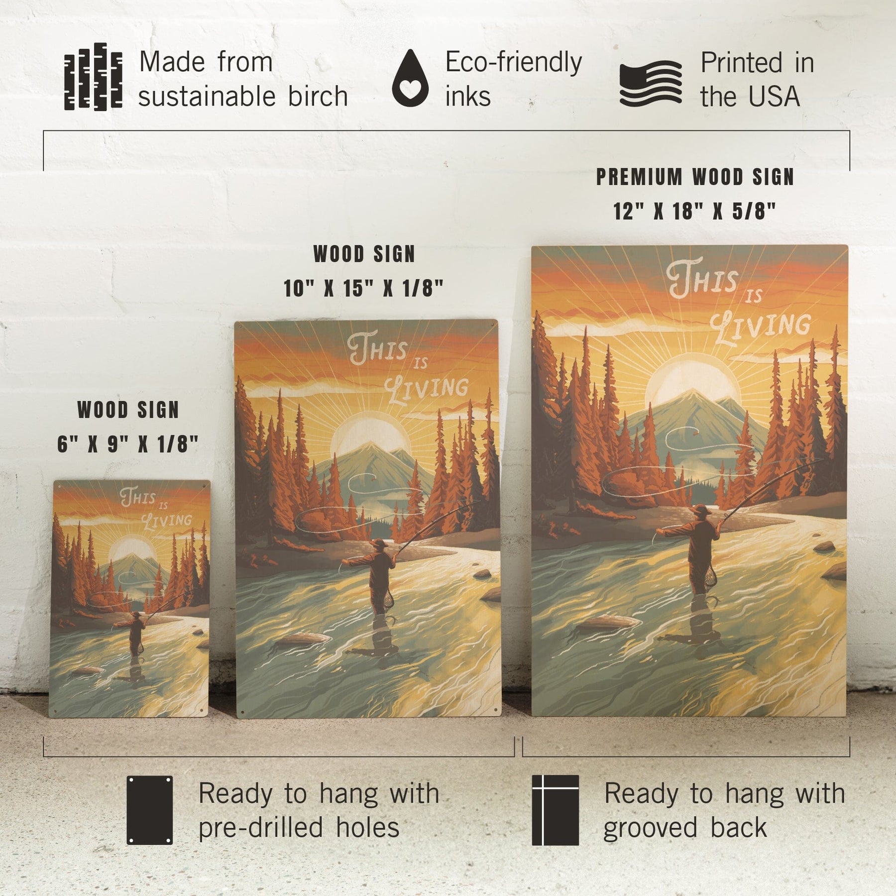 This is Living, Fishing with Mountain, Wood Signs and Postcards Wood Lantern Press