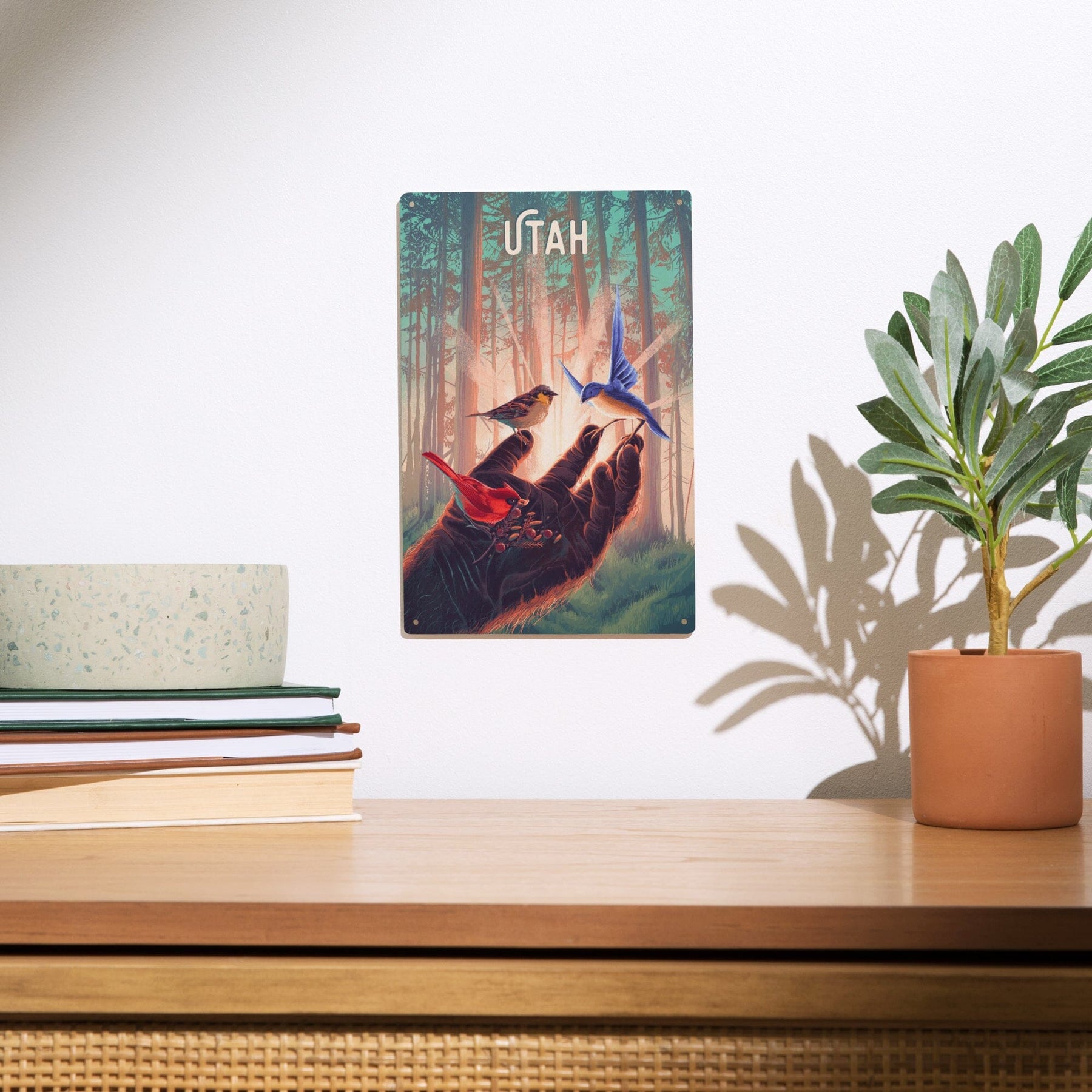 Utah, Kindness is Legendary, Bigfoot With Birds, Wood Signs and Postcards Wood Lantern Press