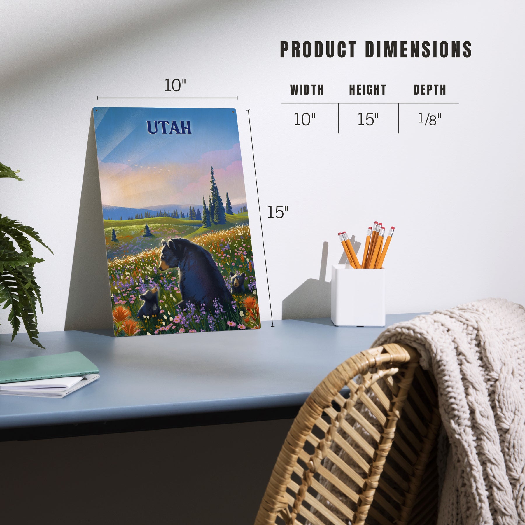 Utah, Lithograph, Bear Family in Field, Wood Signs and Postcards