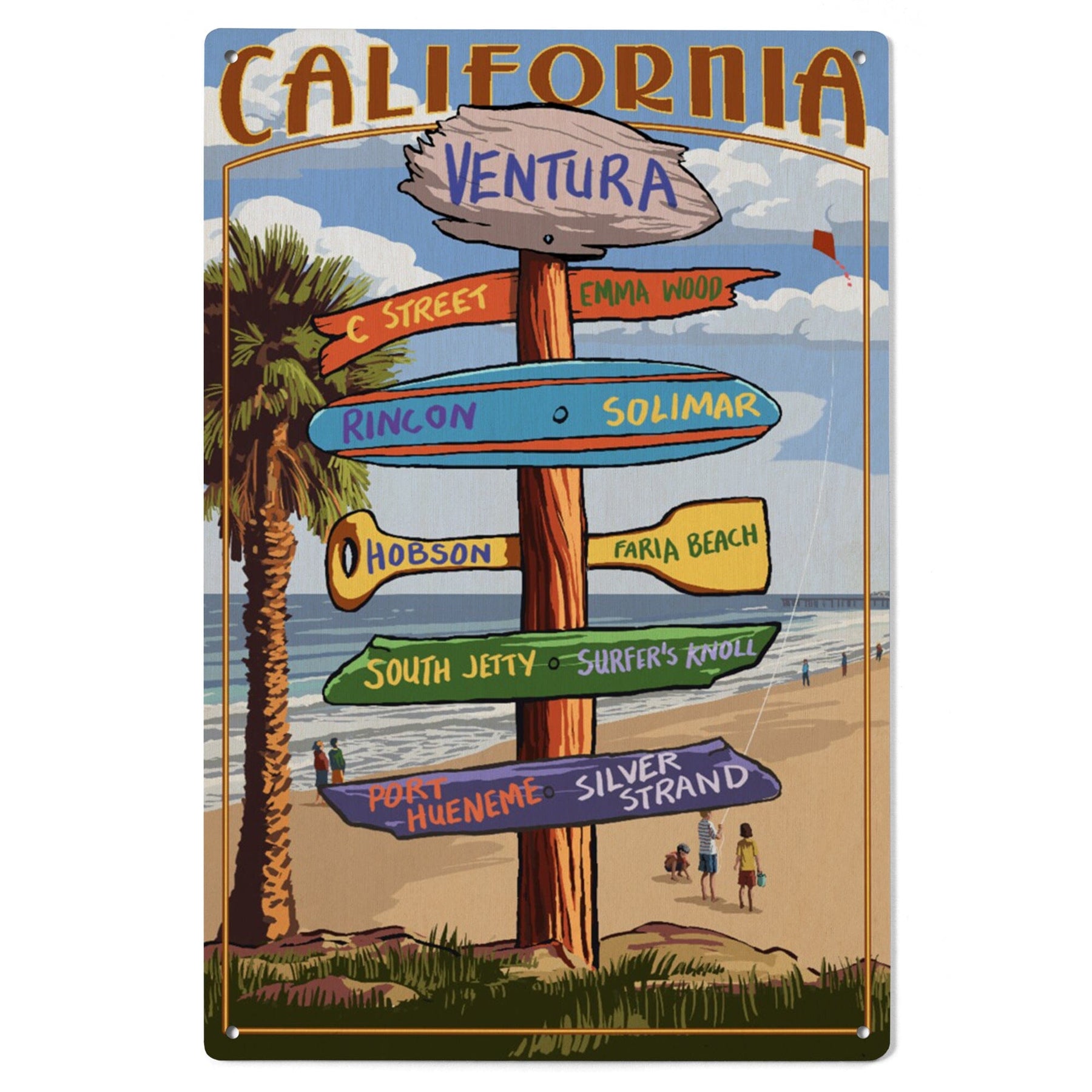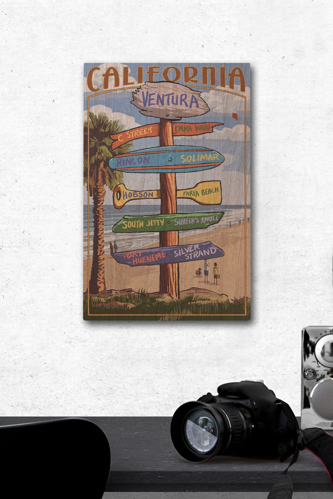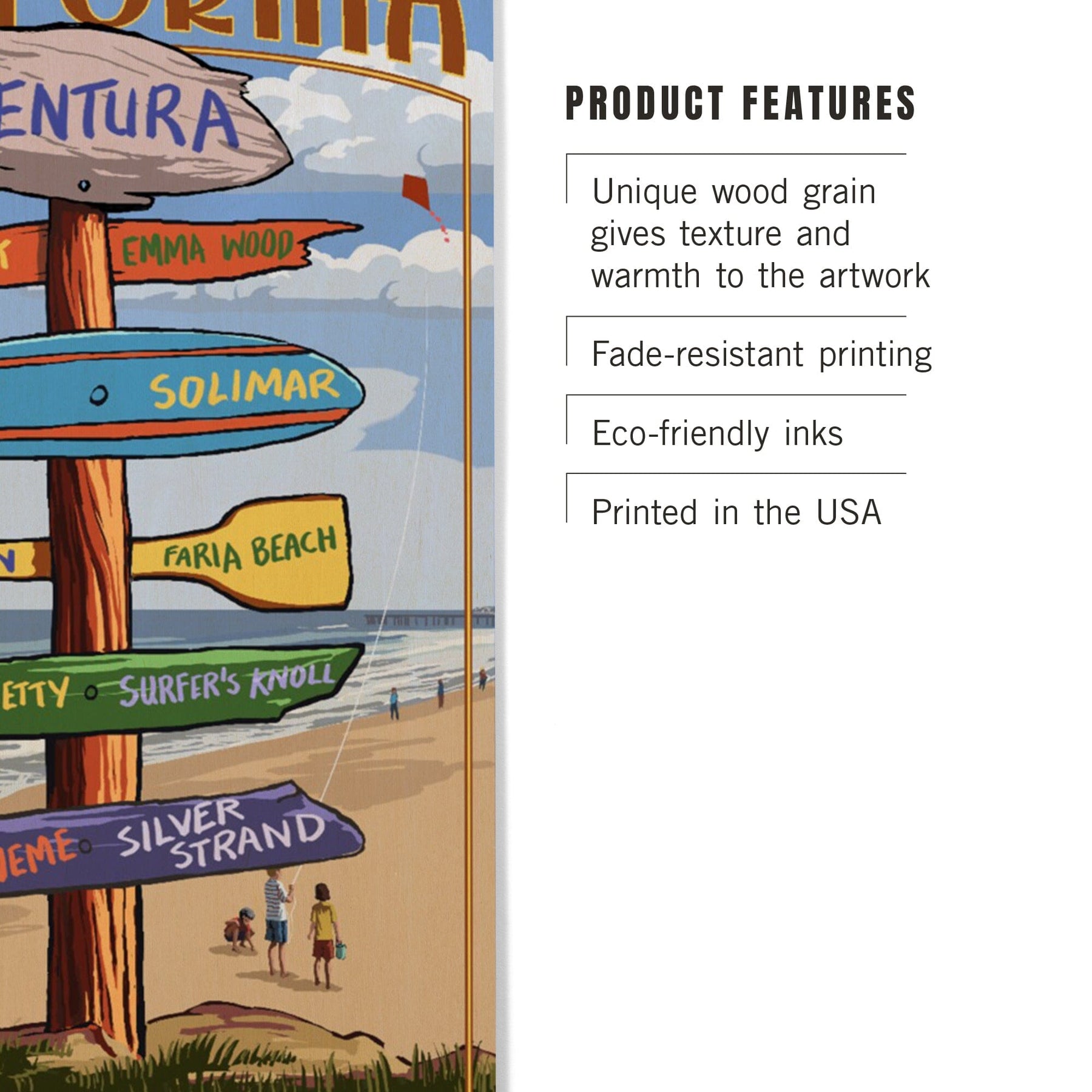 Ventura, California, Destination Sign, Kids with Kite, Lantern Press Artwork, Wood Signs and Postcards