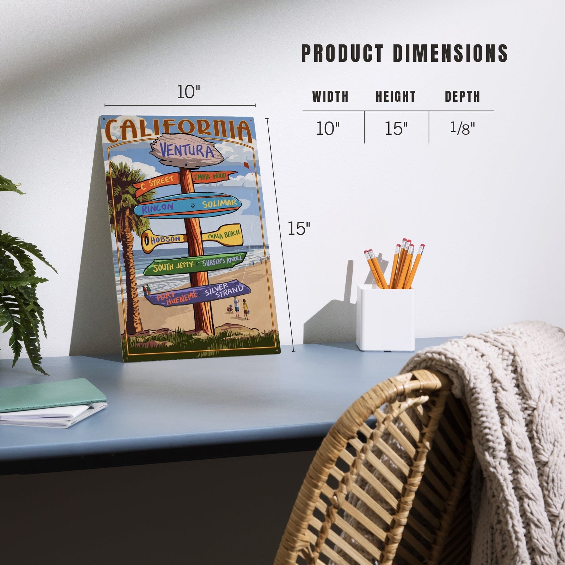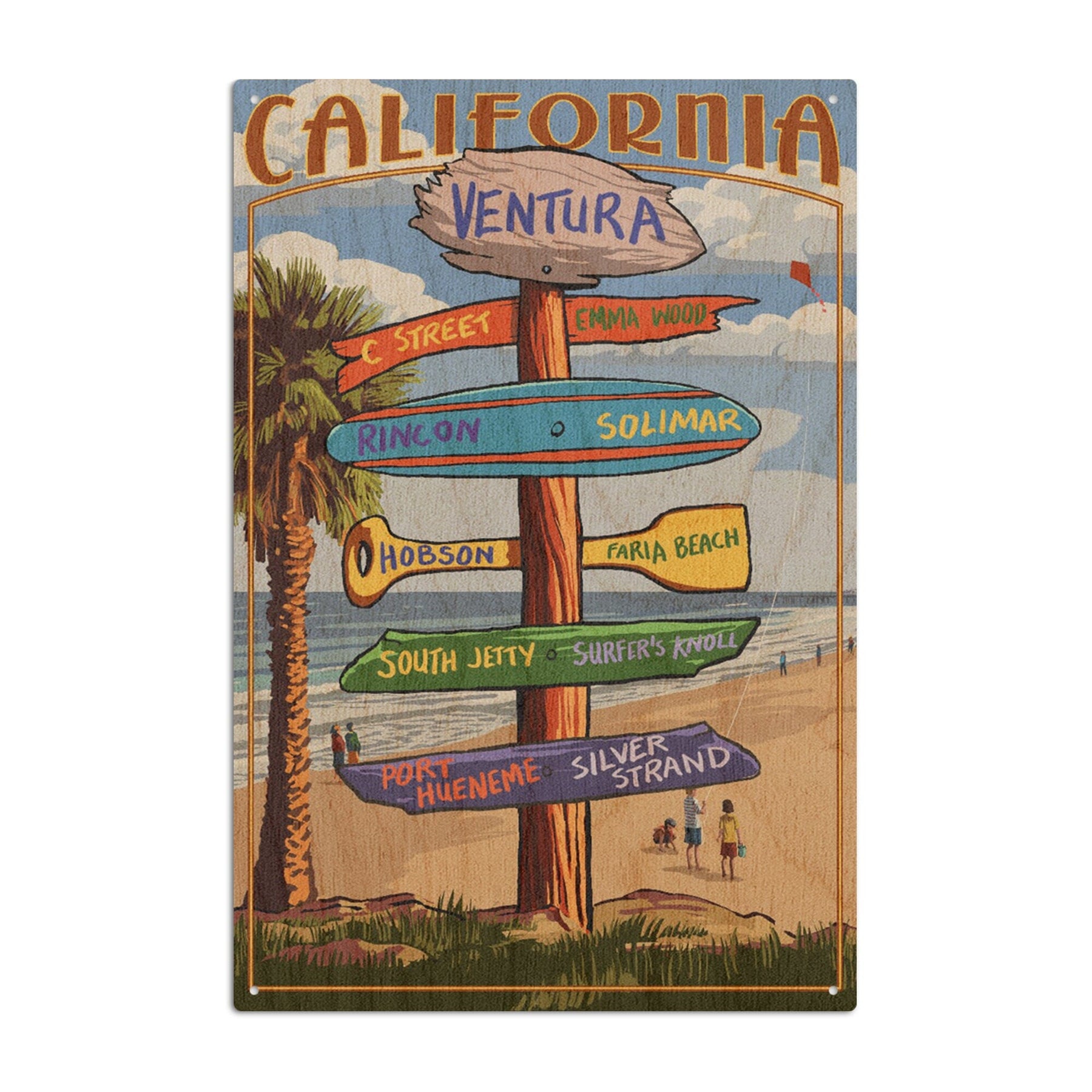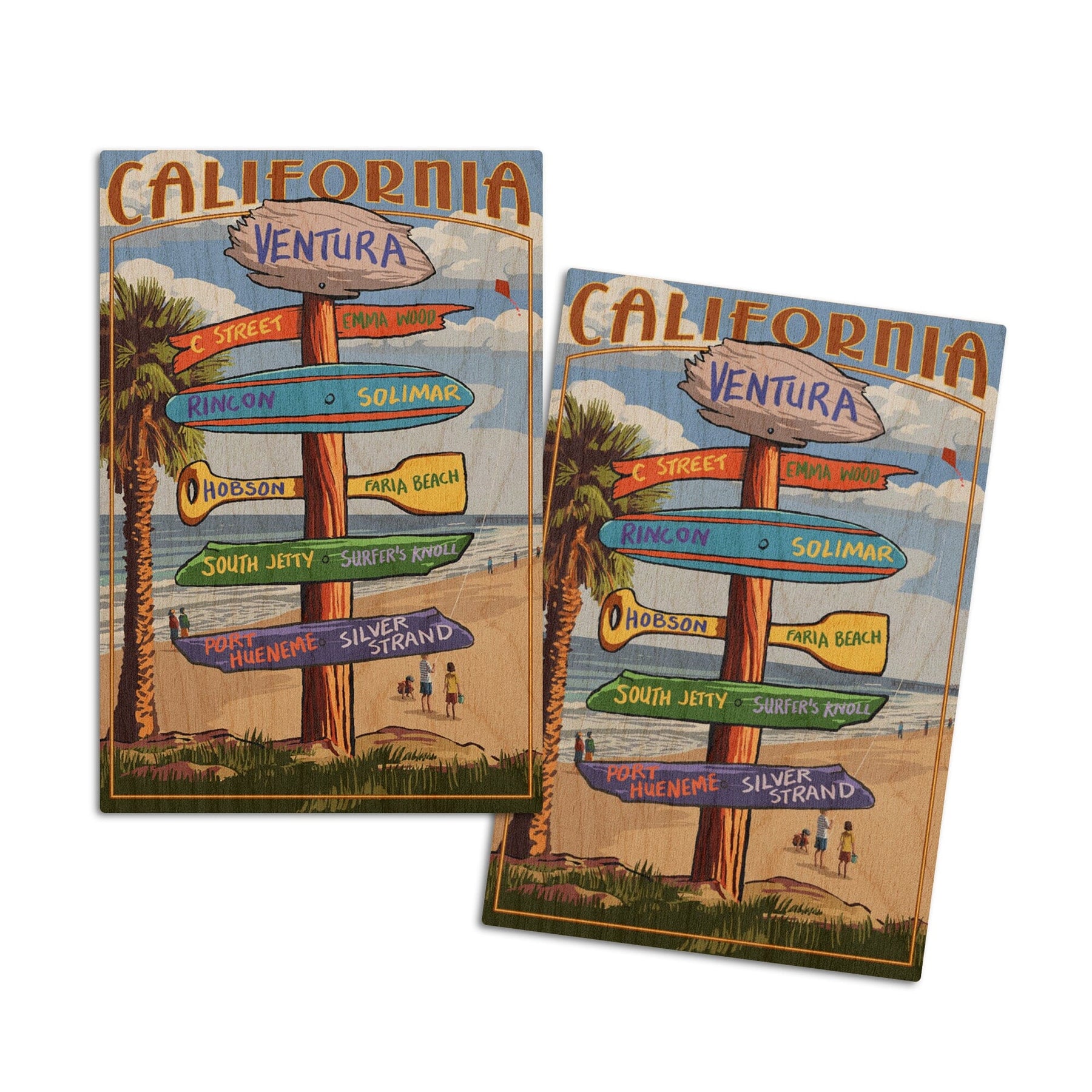 Ventura, California, Destination Sign, Kids with Kite, Lantern Press Artwork, Wood Signs and Postcards