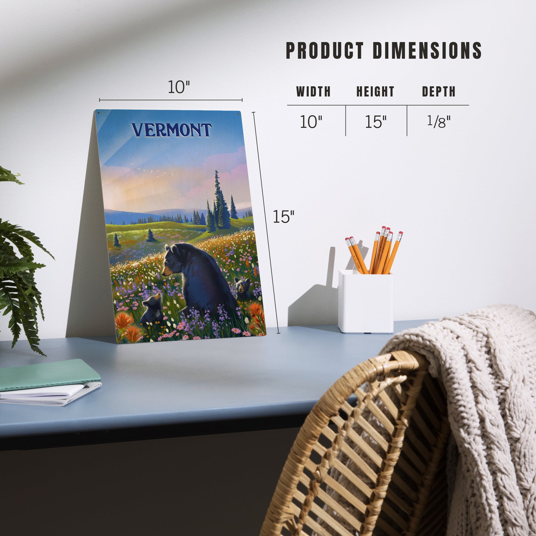 Vermont, Lithograph, Bear Family in Field, Wood Signs and Postcards