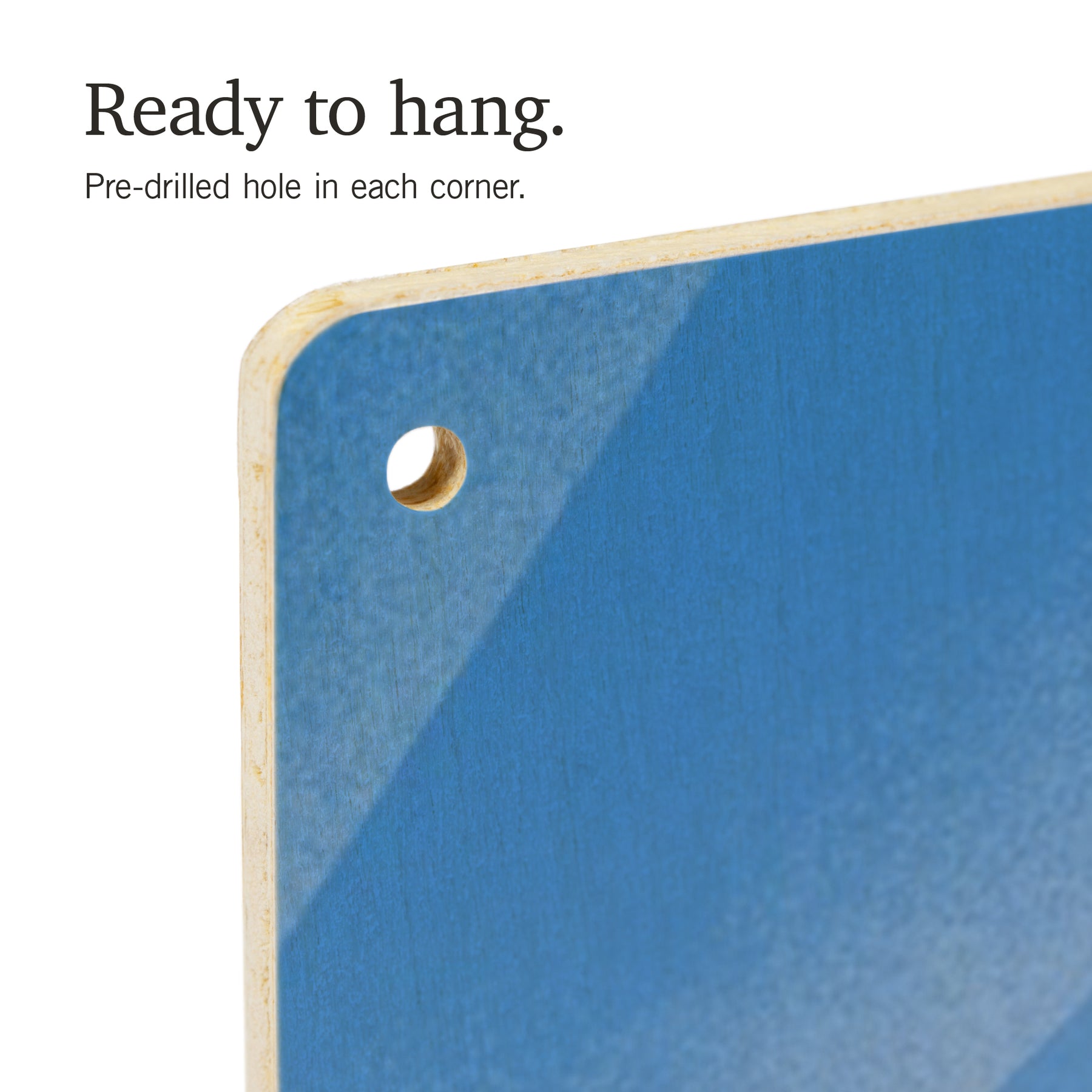 • Hole in each corner, ready to hang