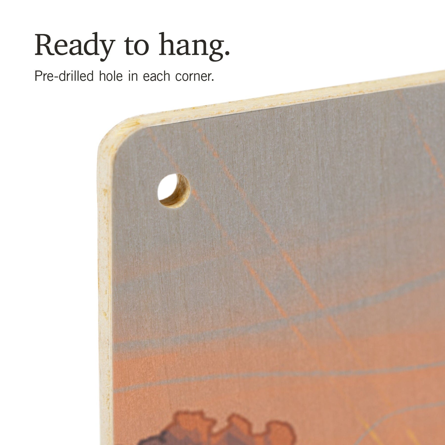 • Hole in each corner, ready to hang