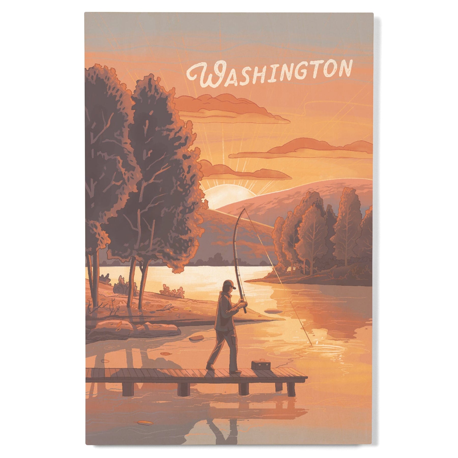Washington, This is Living, Fishing with Hills, Wood Signs and Postcards Wood Lantern Press